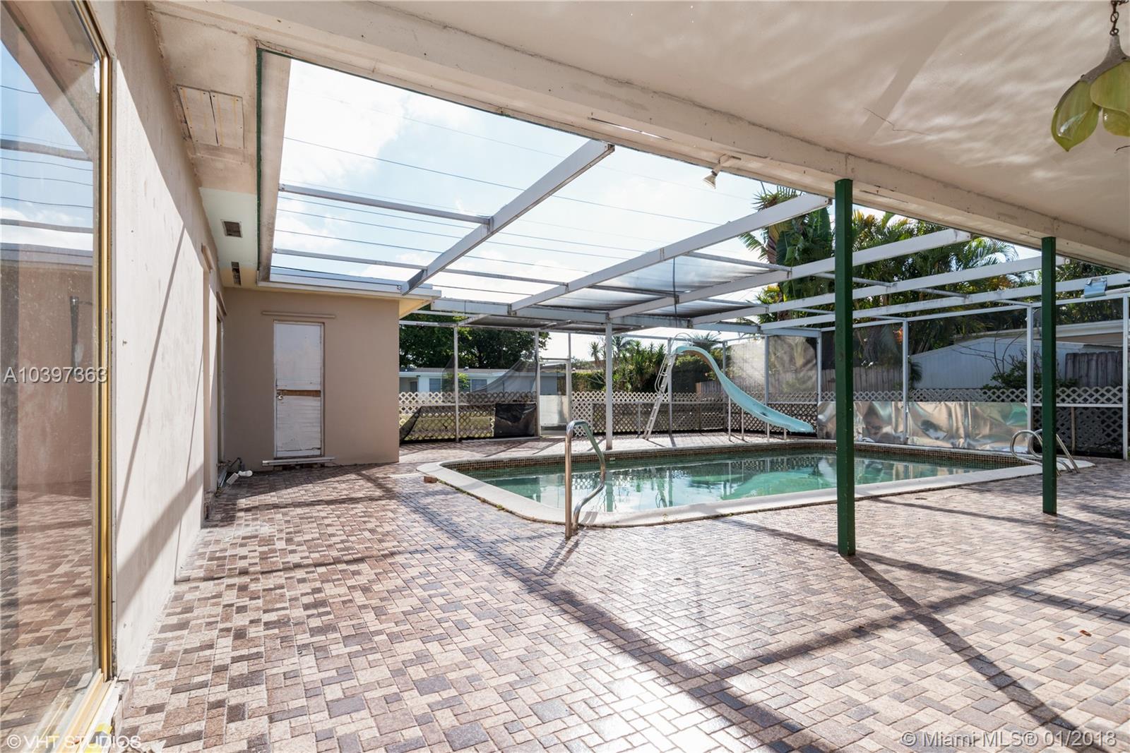 Large 4.0 bedrooms/3.0 bathrooms single family pool home,tax record as 3/2. Tile flooring throughout. Brand new roof. Large open kitchen. Formal living, dining areas, family room. Located within the desired Hollywood Hills area. In ground pool with large screened patio area. Large fenced lot. Easy access to shops, beaches, major roads, highways and airports. Easy access schools, colleges/universities, medical facilities including the world renowned Joe DiMaggio Children's hospital. Great location.