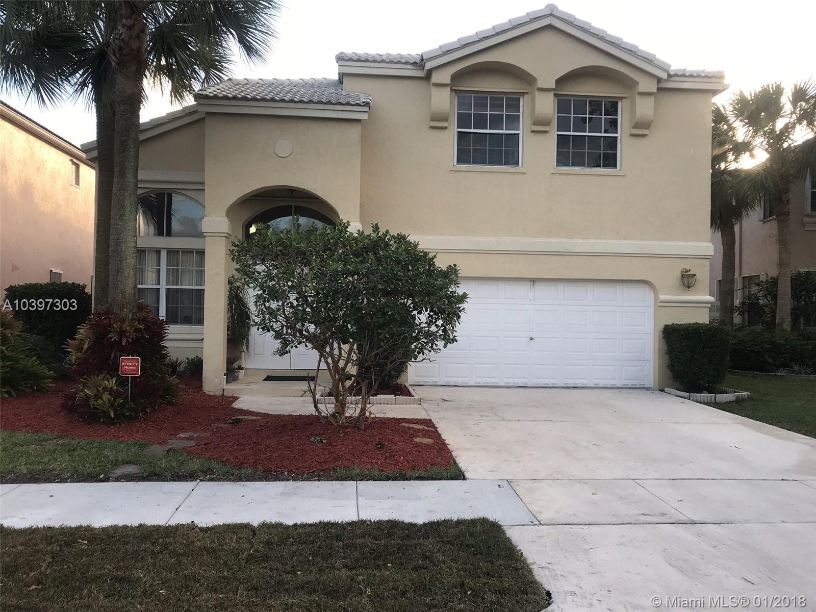 BEAUTIFUL 2 STORY HOME IN TOWNGATE. Spacious 4 bedroom, 3 full bath, 2 story home w/2 car garage in gated community. Tri-level open floor plan w/lots o natural light. Master suite w/ sitting area, master bath with dual vanities, separate tub & shower. Over-sized walk-in closet. Entertain friends & family from your open kitchen. Guest room and full bath on ground floor. Large backyard patio with room for a pool.H. Shutters. Centrally located in west Pembroke Pines, minutes from I75,Turnpike, shops,hospitals,parks and entertainment. Great school district! Highly desirable gated community pool, gym,tennis. Royal bay @ Towngate low maint. Bright, clean and ready to move in home. **Motivated Seller**
