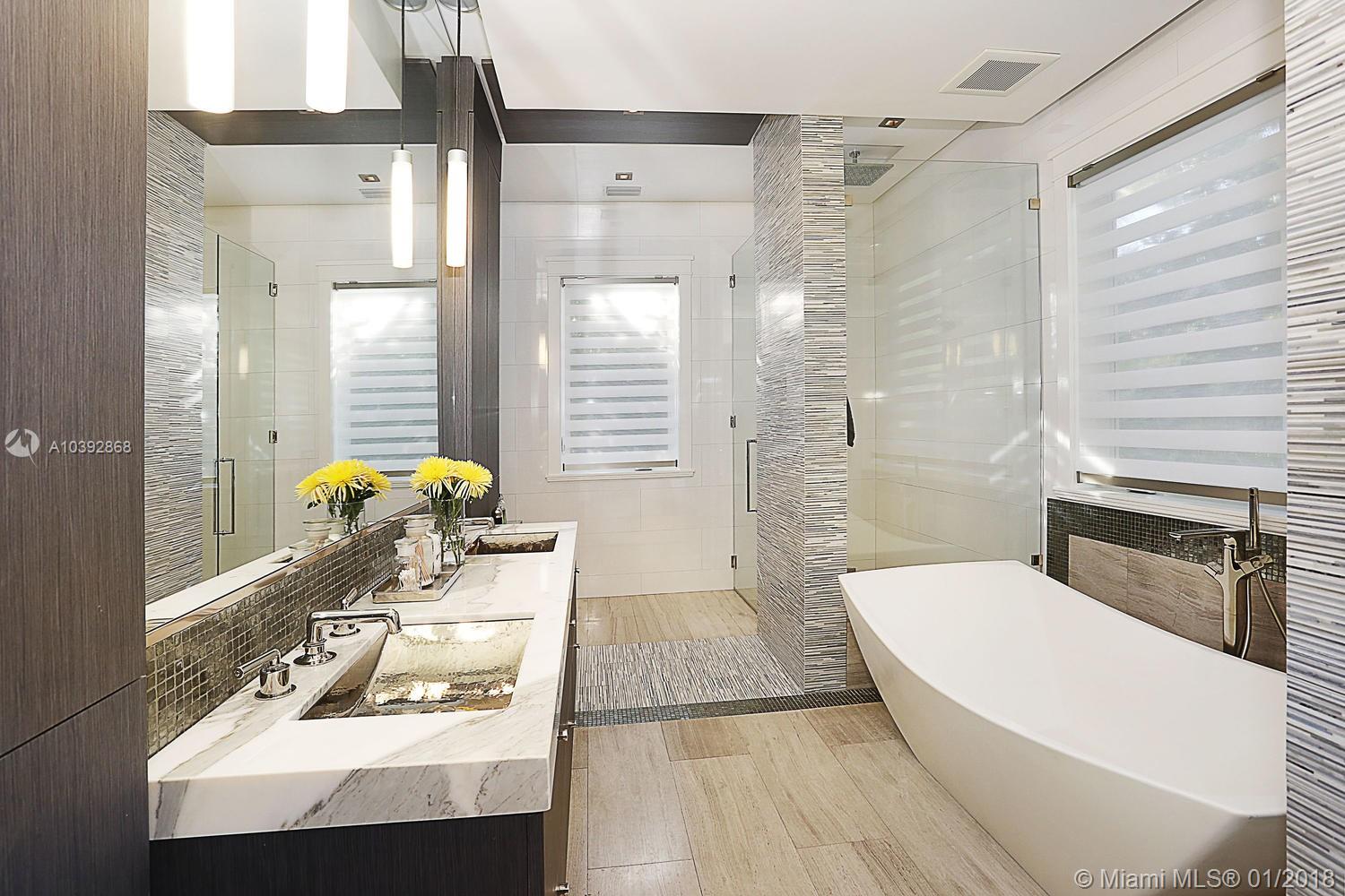 Spectacular,timeless,sophisticated modern elegance! This extraordinary home sits in the center of Pinecrest tucked away on a quiet and beautiful street!Better than new! "2012" custom designed and built with meticulous high-end magazine quality finishes and well thought-out floor plan. Finest detailed attention throughout. Imposing entry.10' high ceilings, marble and wood floors.Impact windows.State of the art gourmet kitchen.Formal living and dining rooms.Sumptuous master suite.Luxurious designer baths! Walk-in closets with custom built-in dressers.Romantic setting with fireplace!Luxury & comfort delight in every turn!Hi-energy efficiency AC systems, LED lighting.45 KW generator. Large covered porch with summer kitchen.Gorgeous backyard with lush landscaping!Great curb appeal! A rare find!