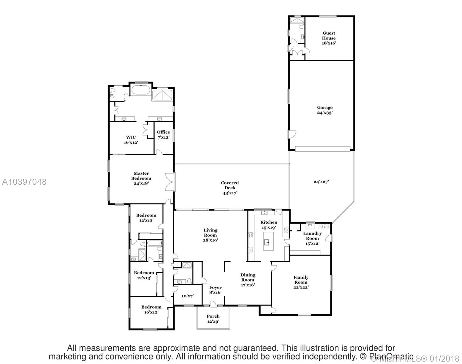 Remodeled from floor to ceiling this stunning 5BR/5.5BA gated Pinecrest estate offers an open 5,108 Adj. SF layout. Custom-made Italian kitchen with high-end appliances, including Miele & Liebherr. New master suite with sep. office, huge walk-in, and master bath retreat. Italian porcelain tile indoors that continue around the new heated saltwater pool/spa. Professionally landscaped throughout the impressive 1-acre grounds. High-tech security. Lastly, for the car lover...a 3-car retreat with 2-car carport. Top Pinecrest schools! Incl. sep in-law quarters.