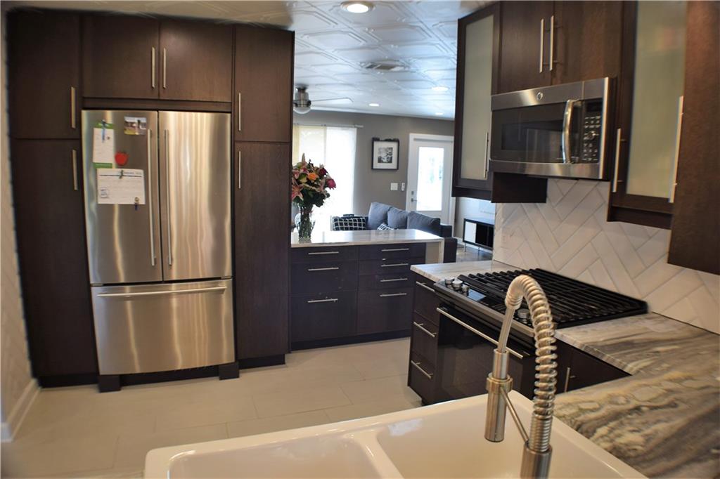 Stunningly remodeled single-story home! Enter into an open living area and modernized kitchen with quartzite counter-tops which waterfall beautifully to the Brazilian wood and sleek tile flooring. Wall of windows gives uninterrupted view of backyard and lake. Garden currently produces mangos, rosemary, and varieties of banana. Soft-close drawers. Split bedrooms. Master en suite and walk-in closet. Too many perks to list! Similar models in neighborhood ADD 1-2 bedrooms. Community tennis ct and two pools.