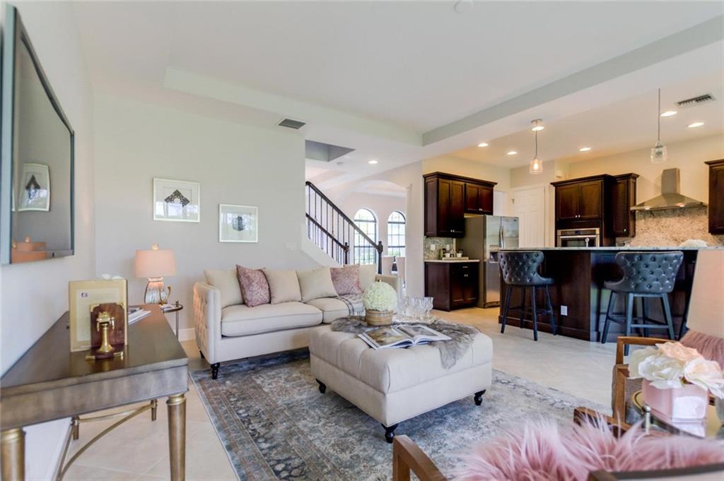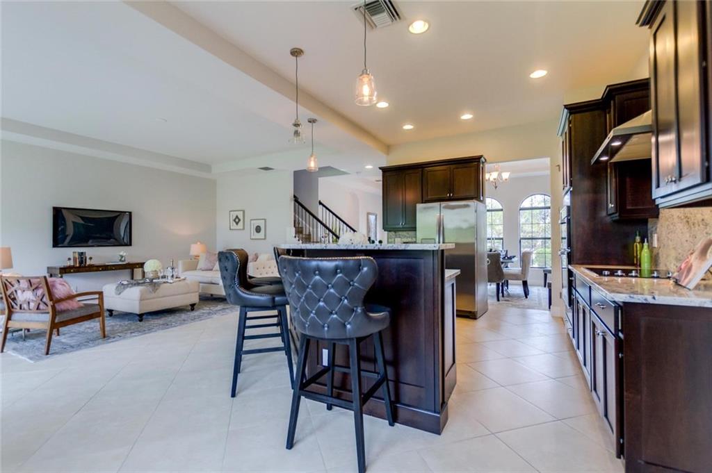 Stunning luxurious home with LOFT on oversized lot in gorgeous golf course community! Enhanced with fresh paint, laminate floors, designer light fixtures, & more! Open living room/kitchen boasts HIGH CEILINGS, custom cabinets, granite counters, island w/breakfast bar, & SS appliances! Massive master suite soothes you w/jetted tub, vanity area, walk-in closet, and sitting nook. Upstairs loft makes a great flex space! Convenient downstairs bed & bath. Relax in the covered patio! Truly a must-see!