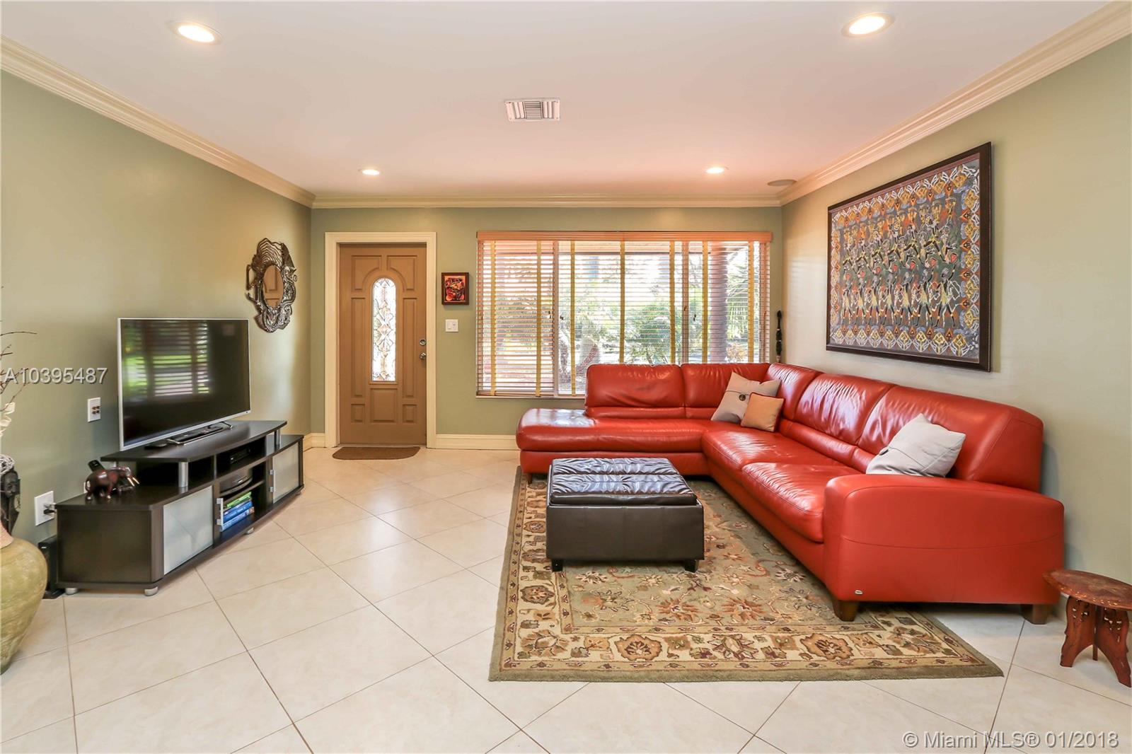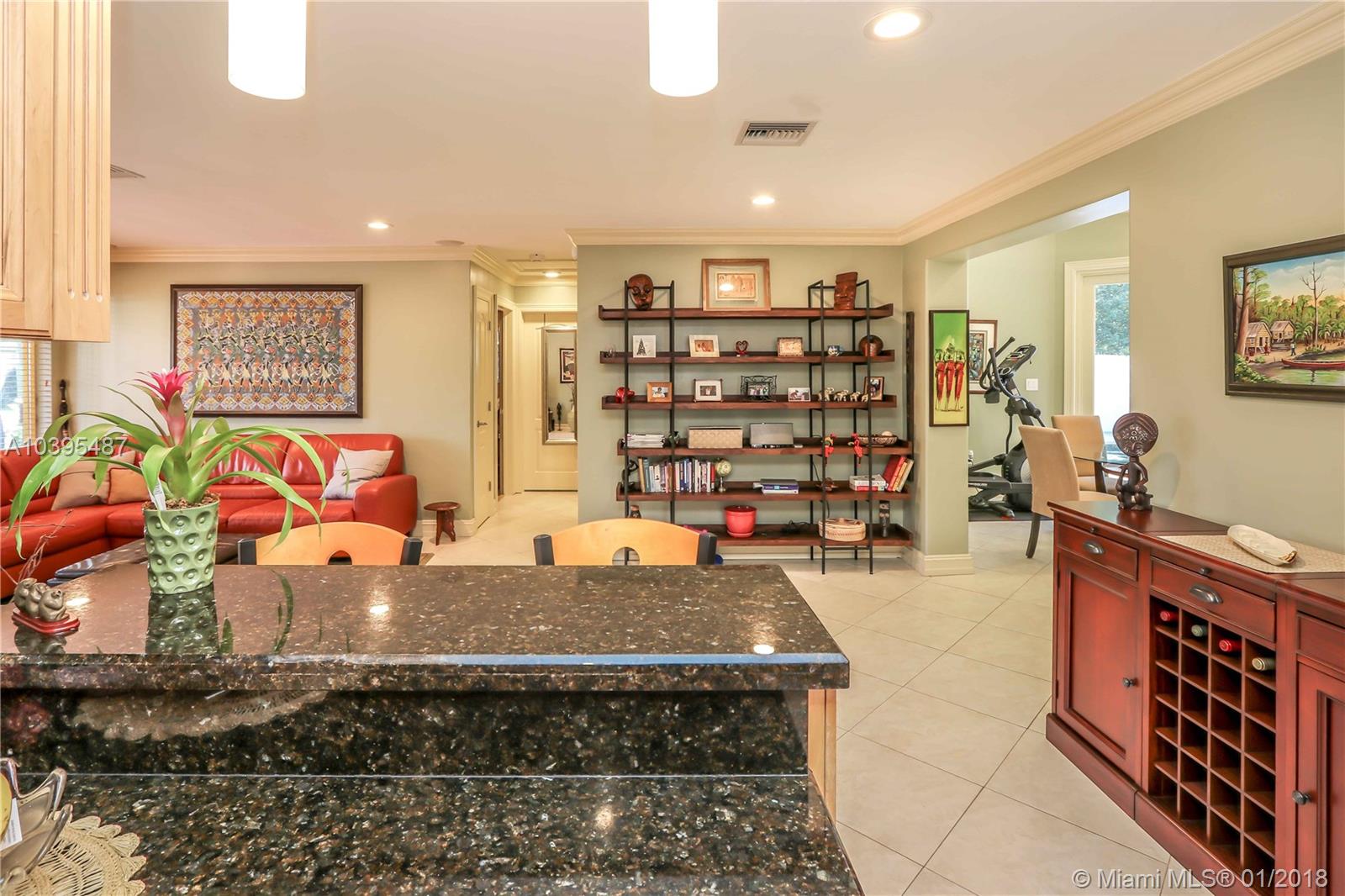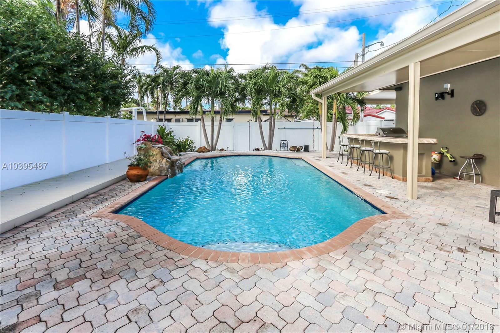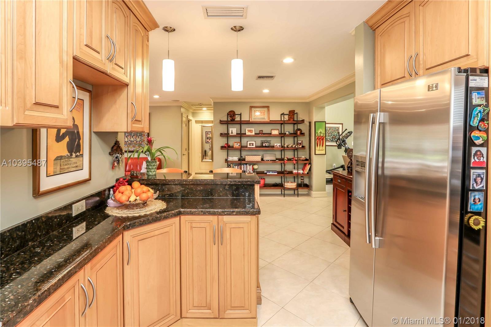 Beautiful 3 bedroom 2 bath pool home features a split floor plan, crown molding throughout, high ceilings and Porcelain/Terrazzo Floors. Fantastic Kitchen with custom wood cabinets, top of the line LG stainless steel appliances, granite counter tops complimented by marble tile back splash. Over sized master suite is complimented with Brazilian cherry wood floors, custom closets and master bath has imported exotic marble from top to bottom, over sized walk in shower, & dual glass sinks. Spacious Laundry Room can be Additional space for an office or den. Great for entertaining with resort style salt water heated pool, large outdoor bar with refrigerator and gas barbecue. Newer A/C Replaced in 2017 & Newer Roof (2013).