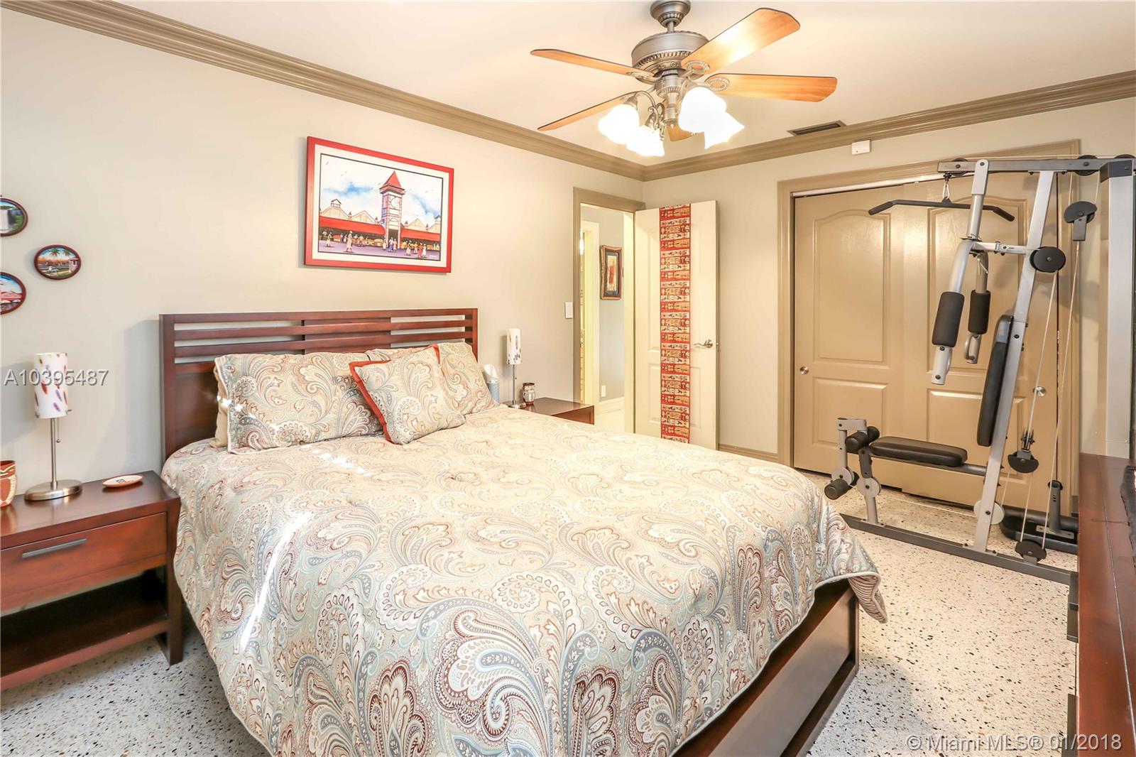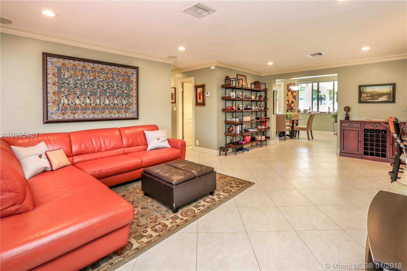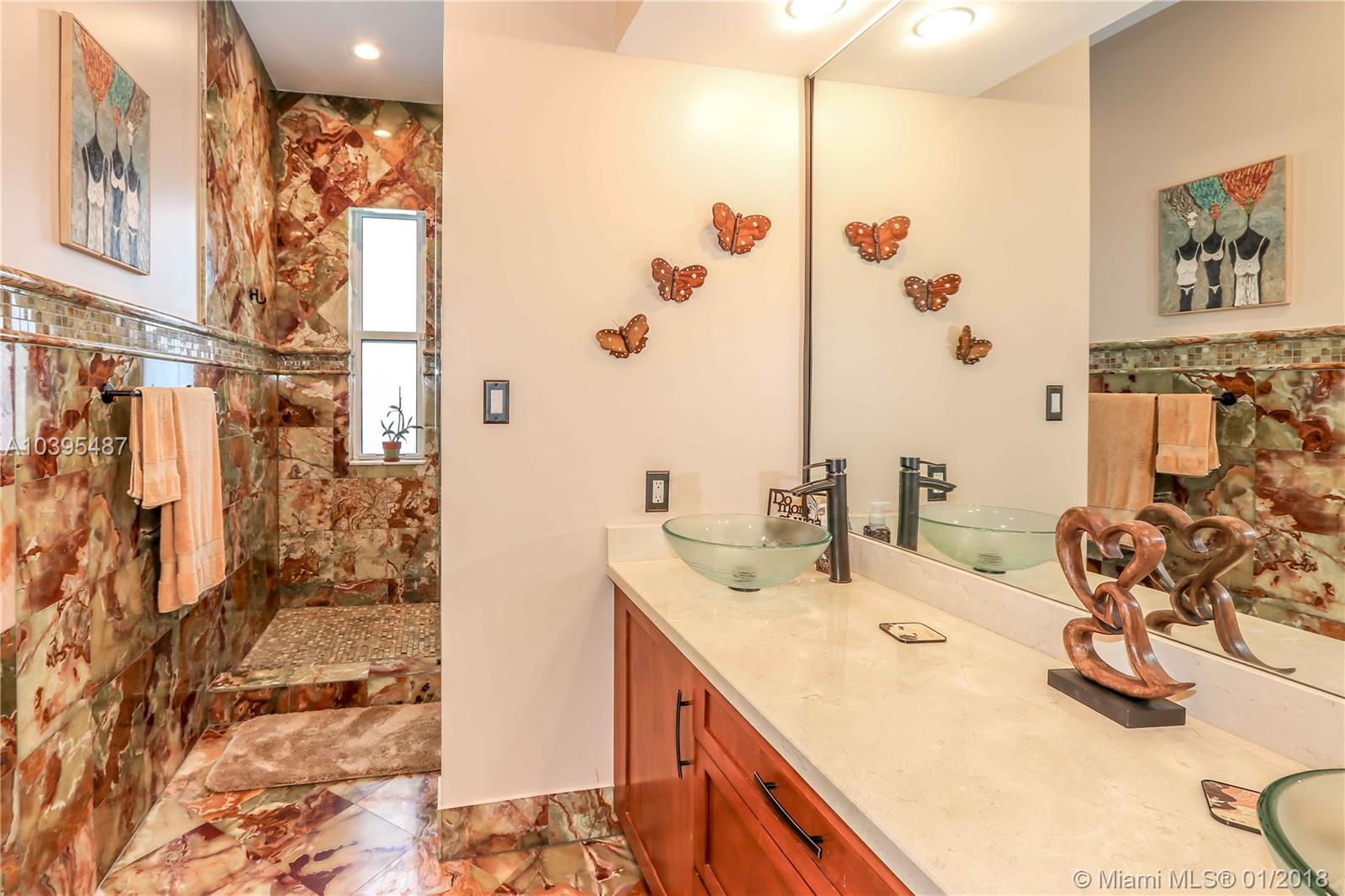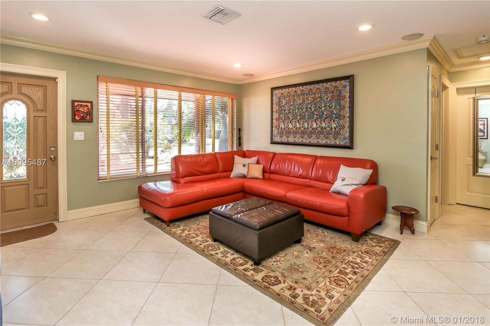 Beautiful 3 bedroom 2 bath pool home features a split floor plan, crown molding throughout, high ceilings and Porcelain/Terrazzo Floors. Fantastic Kitchen with custom wood cabinets, top of the line LG stainless steel appliances, granite counter tops complimented by marble tile back splash. Over sized master suite is complimented with Brazilian cherry wood floors, custom closets and master bath has imported exotic marble from top to bottom, over sized walk in shower, & dual glass sinks. Spacious Laundry Room can be Additional space for an office or den. Great for entertaining with resort style salt water heated pool, large outdoor bar with refrigerator and gas barbecue. Newer A/C Replaced in 2017 & Newer Roof (2013).