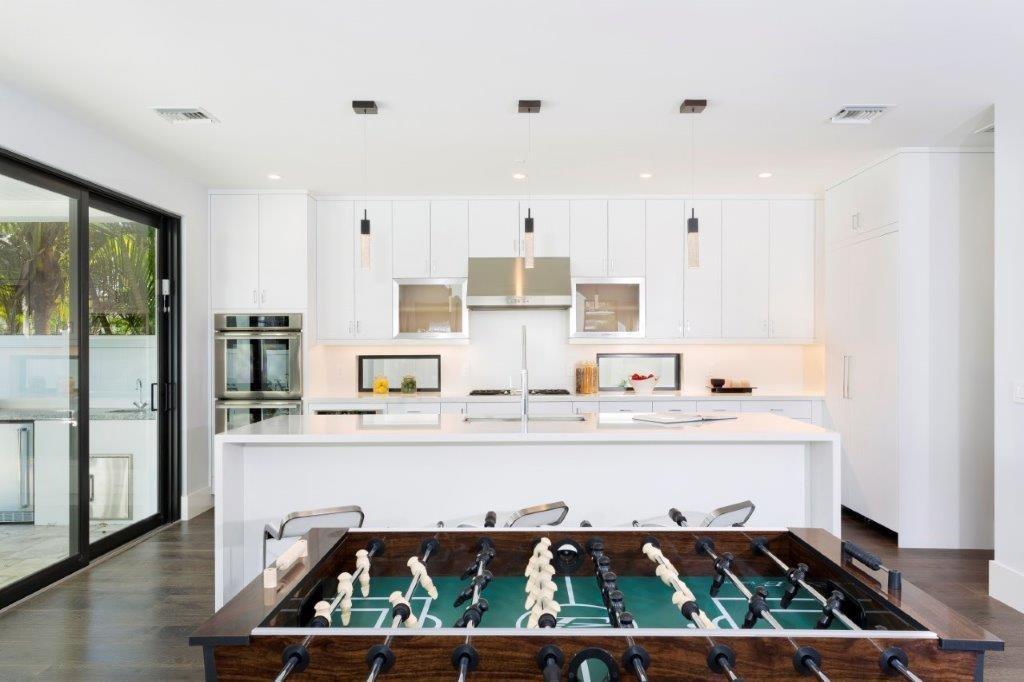 Five bedrooms, five and a-half baths, and a two-bay garage are included in the comfortable floor-plan totaling 6,755+/- square feet, also available furnished. Airy spans of impact-rated glass let the natural light shine in, while volume ceilings add to the sense of spaciousness, grounded by wide-plank oak floors. Done in Porcelanosa tile, the baths include fittings and fixtures by Grohe, Blanco, Kohler, and Villeroy & Boch. Other amenities include LED lighting, two-zone air conditioning, and a central vacuum system. There is elevator access to all three levels including the roof-top entertainment/lounge deck, equipped with electric/water service, where the panoramic outlook takes in a view of the ocean.