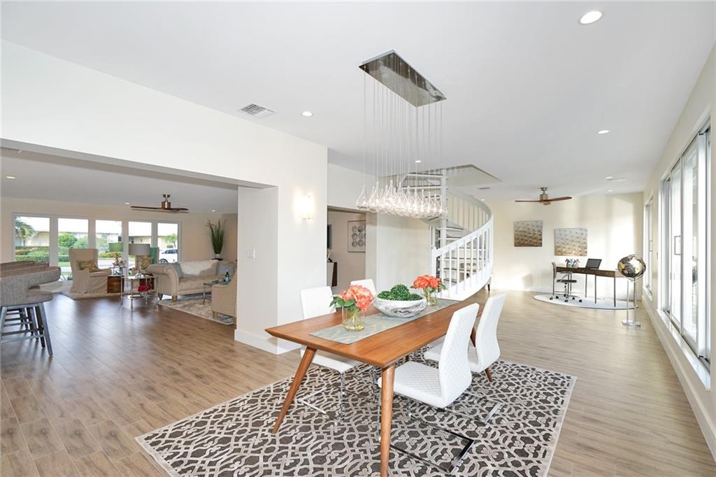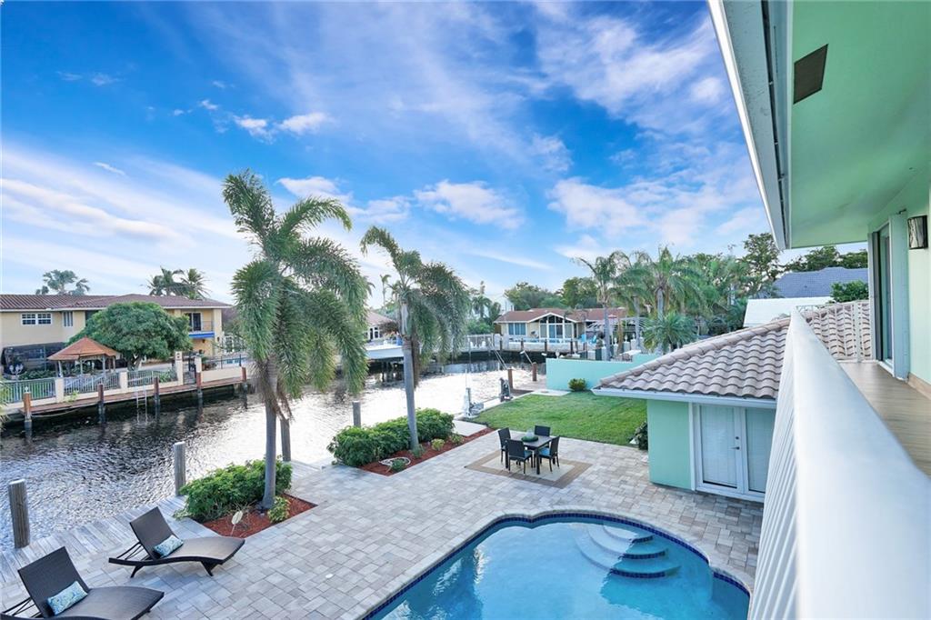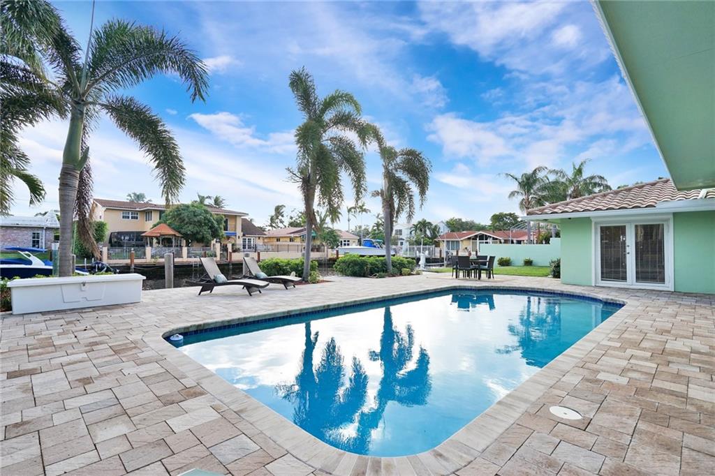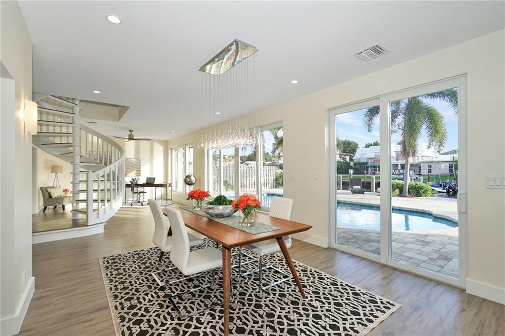Extensive new renovations all done w/permits. Large 4BR/4BA pool home (4000+ sq ft), & 85 ft waterfront w/no fixed bridges. Huge master 1st floor, open floorplan and living spaces. Jr Master 1st floor also. Awesome water & pool views the moment you enter. Recent updates, 3 zones include, HVAC heat pumps, impact glass, porcelain floors, LED lighting & sewer lines replaced. New gourmet kitchen w/ white shaker cabinets, oversize depth quartz counters, & Thermador appliances w/ 6 burner cooktop.