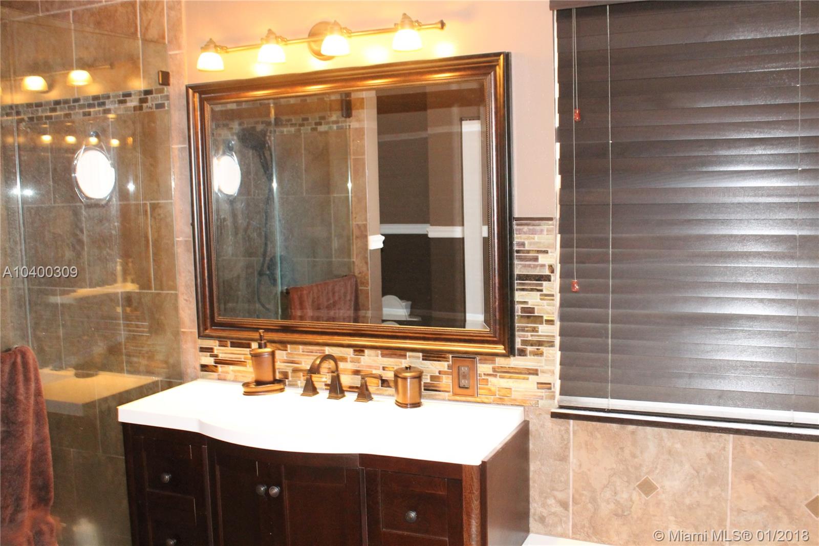 Rarely available two story 4/3 with pool in sought after Silver Lakes in Pemebroke Pine. One bedroom & full bathroom located downstairs make’s it perfect for the in-laws or guests. Three bedrooms & two bathrooms are located upstairs for the ultimate privacy. Tile floors throughout the home downstairs. Stainless steel appliances with granite countertops make this kitchen a dream. Master bedroom has a large walk in closet with built-ins. Dual vanity & stall shower with and oversize tub make this master bathroom a dream. Fabulous pool patio with pavers is where you will spend all over your time. The HOA fee includes basic cable and Internet. So run don’t walk to see it the owner is motivated to sell****.