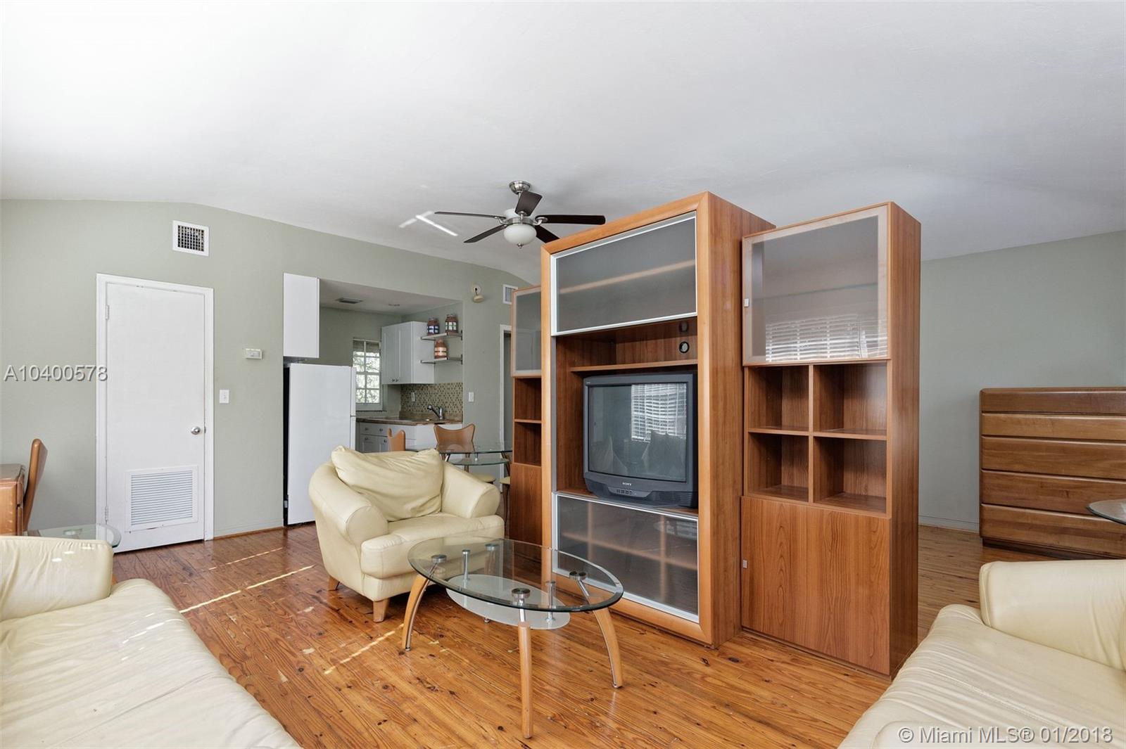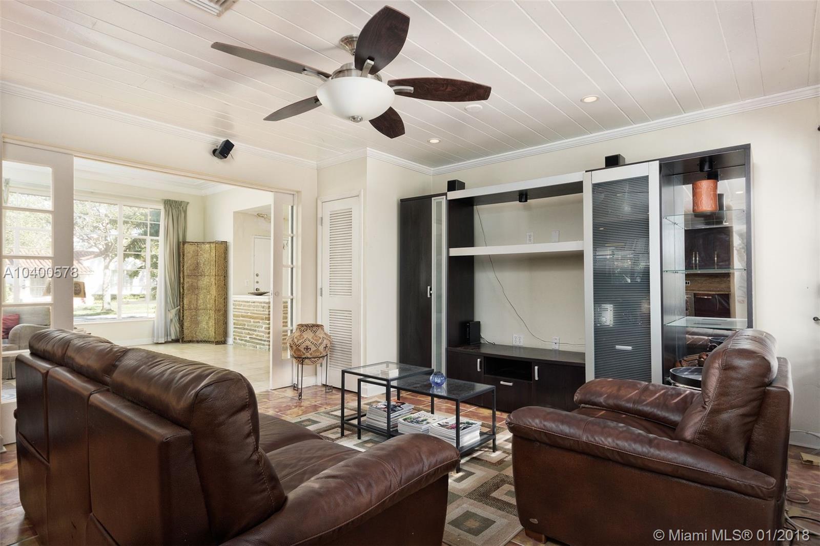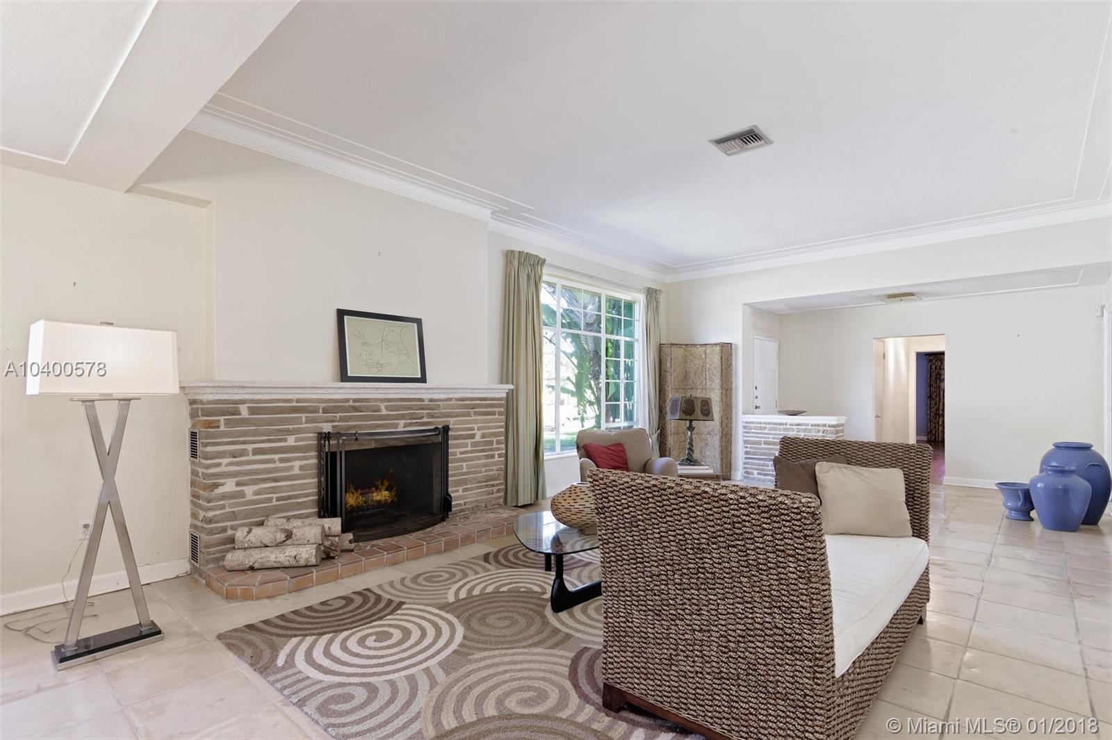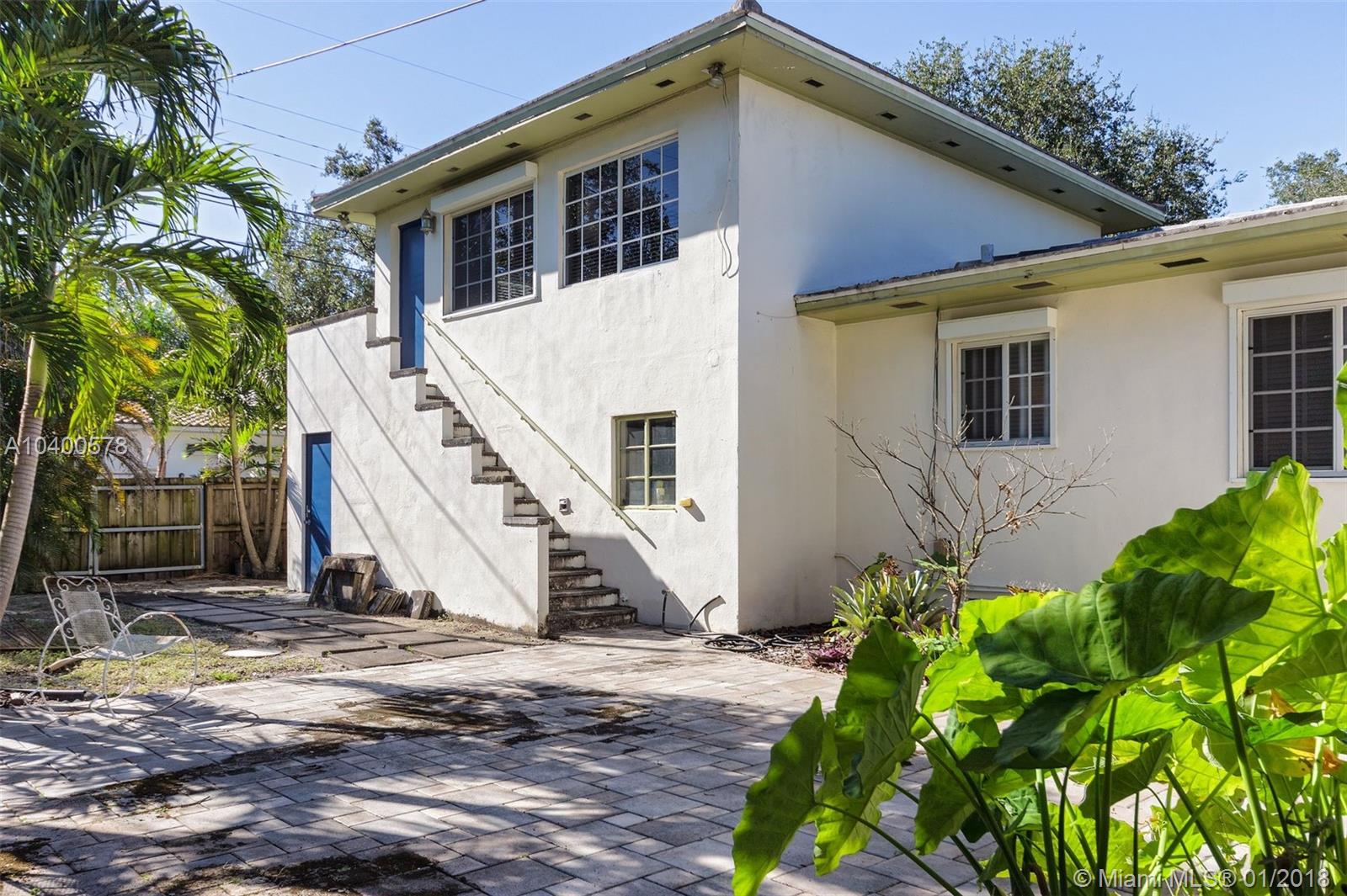 3 BEDROOMS AND 3 FULL BATHS IN MIAMI SHORES. MAIN HOUSE IS A 2/2 WITH AN ATTACHED 2 CAR GARAGE. SEPARATE ATTACHED 1/1 ABOVE THE GARAGE WITH SEPARATE ENTERANCE. NICE CORNER LOT WITH FENCED YARD AND ROOM FOR A POOL. ENTER THE FOYER AND THEN TO THE GRAND LIVING ROOM WITH HIGH CEILINGS AND BEAUTIFUL 1947 FIREPLACE. BIG DINING ROOM, COMBINATION KITCHEN AND FAMILY ROOM, OFFICE/DEN. TILE AND WOOD FLOORS. GOOD CLOSET SPACE. ADDITIONAL UNIT, VERY SPACIOUS, LOCATED ABOVE THE GARAGE. WALK TO DOWNTOWN MIAMI SHORES.