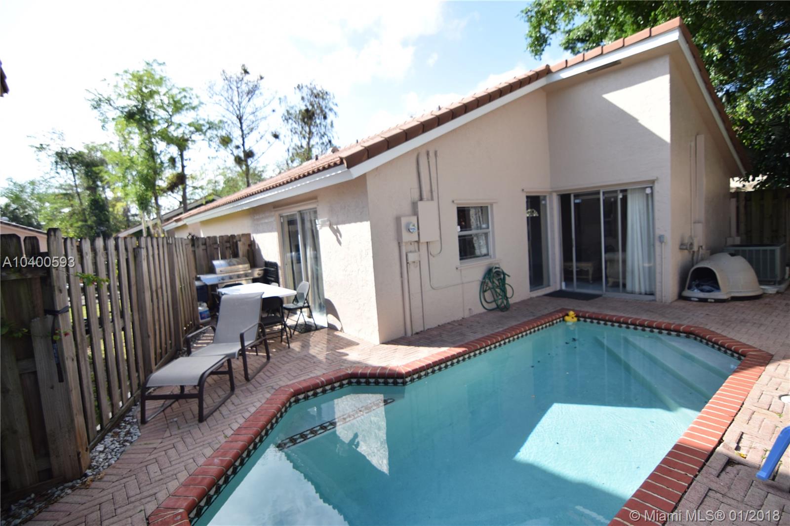 This cozy home has everything you need, beautiful tile floor, living dining area, updated kitchen, 3 bedrooms 2 bath. Master bedroom with walk in closet and a renovated master bathroom with shower. Big patio area with a pool and a storage room on the side of the house. Patio is completly fenced in. The house currently has a Tenant, paying $2,100, you have the option of transfer the lease or the tenant can leave in 3 months after effective date. No Homeowners association!!! Don't miss this opportunity, call this one your Home!
