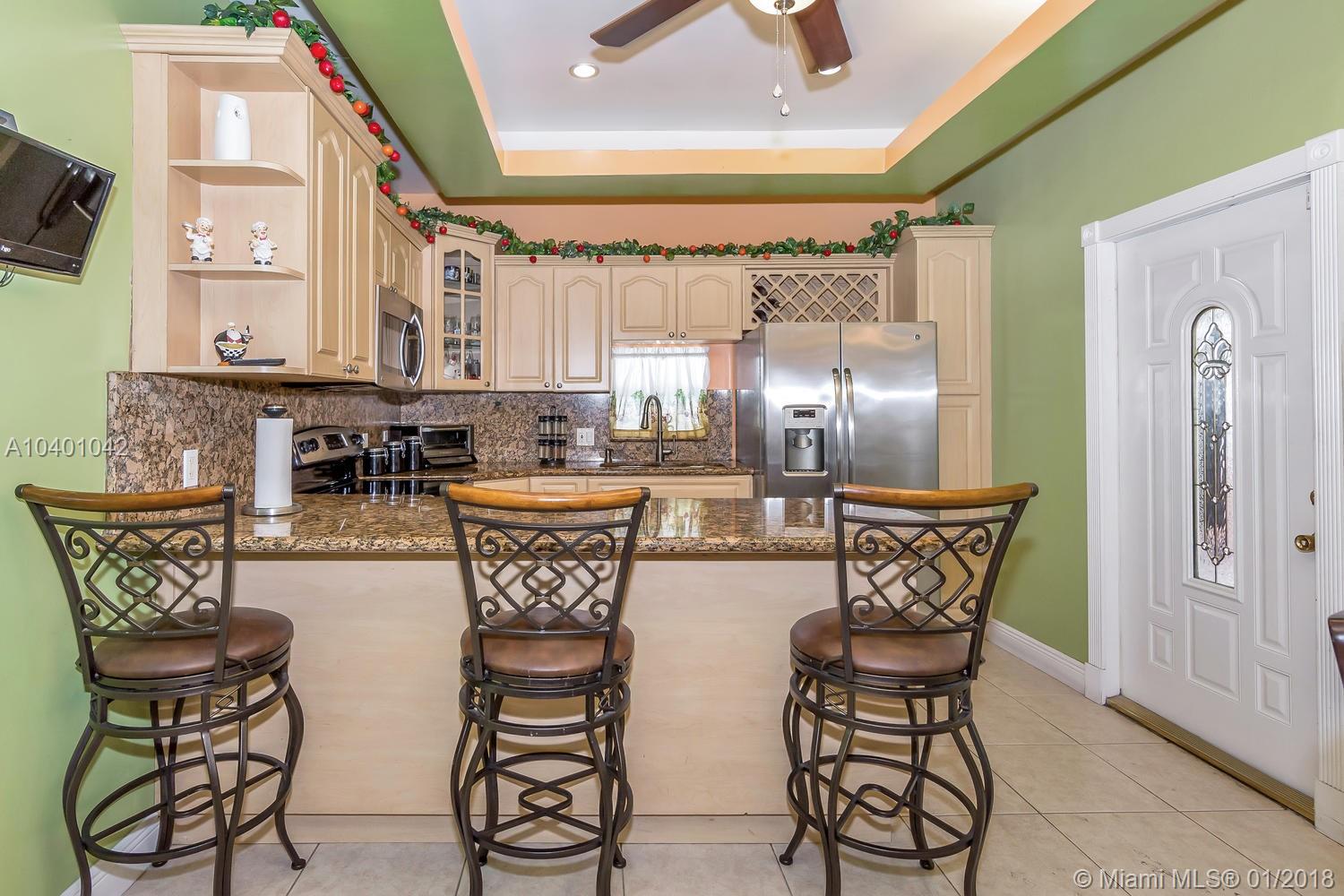 Impress your family and friends with this home ready for entertaining or simply sit back and relax. It features an outdoor bar with kitchen, spacious covered terrace, outdoor lighting, oversized lap pool and fully fenced backyard for privacy. Upgrades include new roof, air conditioning unit (still under warranty), and accordion shutters. Plenty of parking space! This home showcases Master bedroom with master bath and walking closet. Only 10 minutes away from Palmetto Expressway, Westland Mall, and 49th Street Business District.