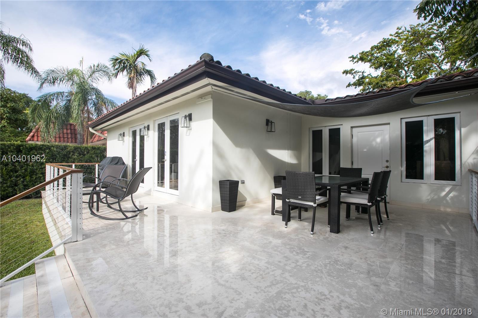Wonderful 2/2 home + 3rd bdrm perfect as a den/office/nursery with french doors & access to the renovated back porch. Brand new Kitchen with new white shaker cabinetry, granite countertops and ss appliances. Updated, modern Master Suite with custom walk-in closet, vaulted beam ceiling, and marble floors. Zen-like Master Bath with custom cabinets and river stone shower. Recently refinished stained hardwood floors, designer roman shades & beautifully landscaped front yard - perfectly situated on a picture-book tree-lined street. Great neighborhood & schools. Walking distance to Miracle Mile and the Coral Gables Country Club. Close to Village of Merrick Park, great restaurants & shops.