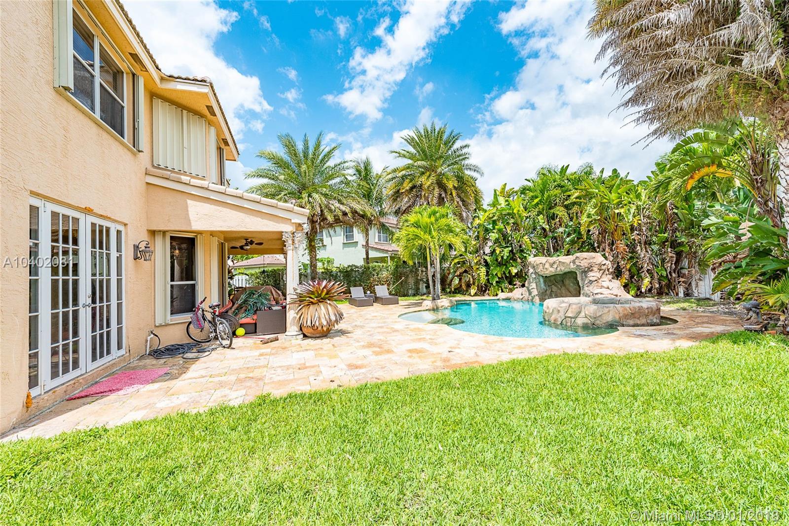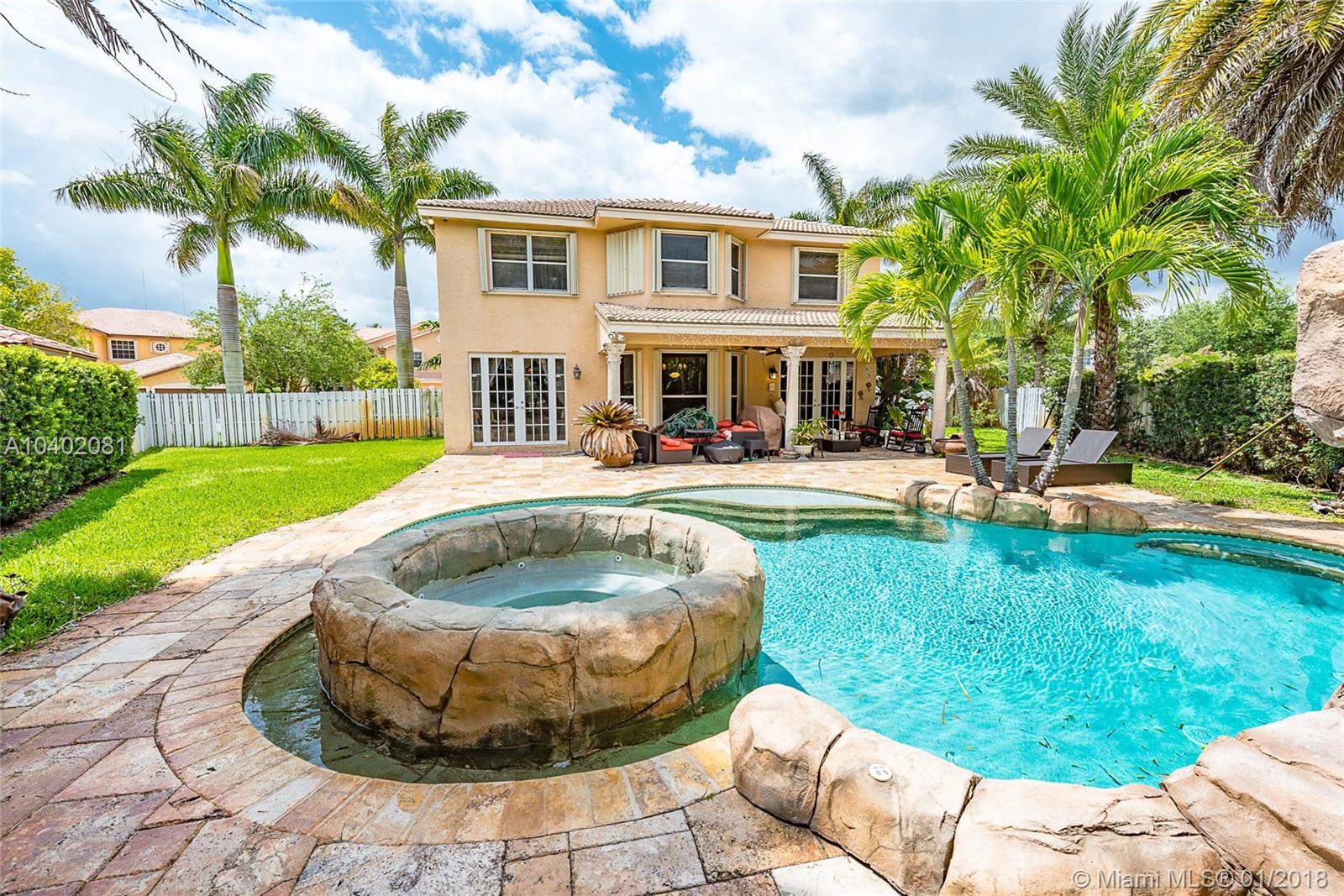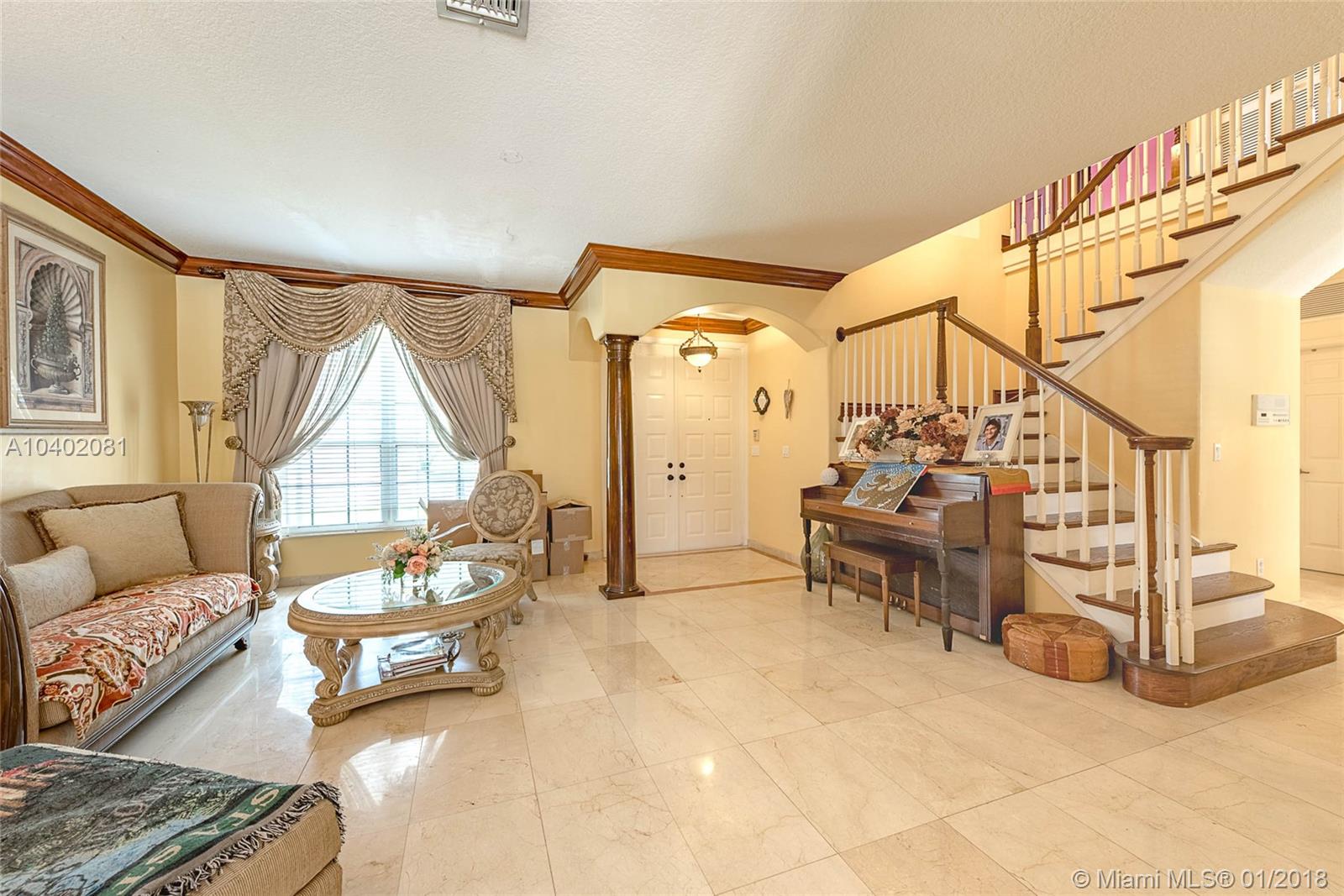 Two-story 4 bedroom/2.5 bathroom Silver Lakes Estate situated on an oversized 12,828 sq. ft. lot. Stunning first floor features include 16" x 32" crema marfil marble throughout, recess lighting, volume ceilings, wood crown moldings and a stunning dark sherry wood open kitchen with top of the line appliances, granite counter-tops and eat-in area overlooking the gorgeous pool area. As you enter the second floor with dark sherry wood flooring throughout, you will be amazed by a one of a kind double door master bedroom with a separate sitting area, dual walk-in closets and a must see master bathroom. Once you walk into the outdoor area, you will certainly feel like you're in a resort style tropical oasis surrounded by trees and a residential pool like you've never seen before. A MUST SEE!!