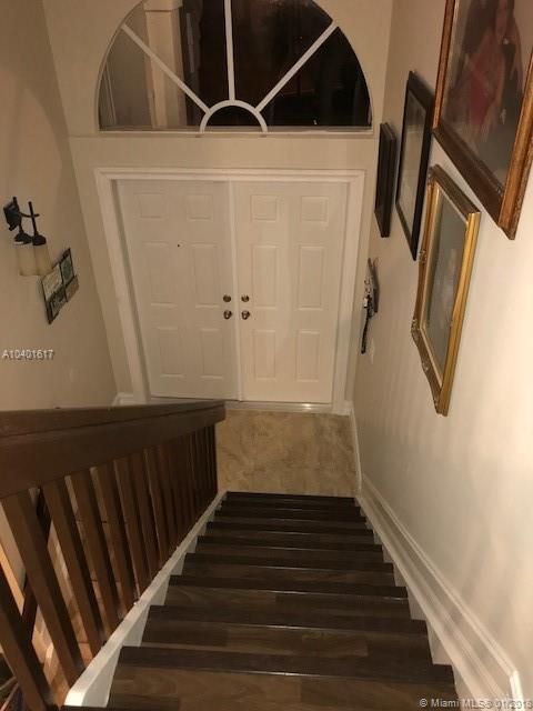 Beautiful updated corner home located in sought out area of Central Park in Plantation. This home features 4 bedrooms, 2 1/2 baths, with ground-floor Master suite. Kitchen has plenty of cabinets and two pantries, Granite counter tops, full granite backsplash, and S.S. appliances. All Bathrooms recently remodeled. Porcelain Tile in living areas and Master. Stairs, hallways, bedrooms in Laminate wood. New French doors lead you to your private patio and low maintenance yard. Garage converted as extra room or gym, can easily be converted back. Air Conditioner was replaced 5 years ago. Hurricane Shutters on all windows and French Doors. Freshly painted inside/outside, ready for you to move in. Low HOA fees includes maintenance of front lawn, common areas, community pool and playground.