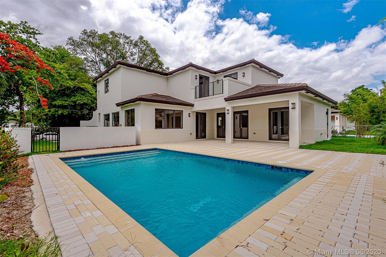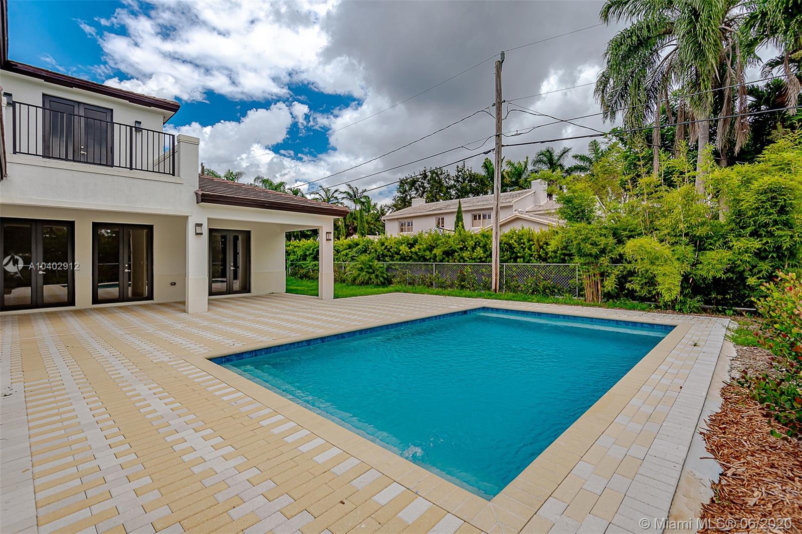 Owner says sell!!! New construction centrally located in prestigious Coral Gables. Beautiful two story, 4 bedroom, 3 1/2 bath.One bedroom, one bath on the first floor, with a terrace overlooking pool. Dramatic volume ceilings, ceramic tile throughout the first floor, living room, dining room, family room, large gourmet kitchen, crafted solid wood European style cabinetry with quartz counter tops. Patio includes, pool, deck, beautifully landscaped yard. Wood on the stairs and second floor. Full sized two-car garage. Attractive circular driveway with interlocking pavers, impact resistant windows, double entry doors and French doors to covered patio. Alarm system including two keypads and siren, contacts on all windows and doors. Fence with columns and electric gate to driveway!