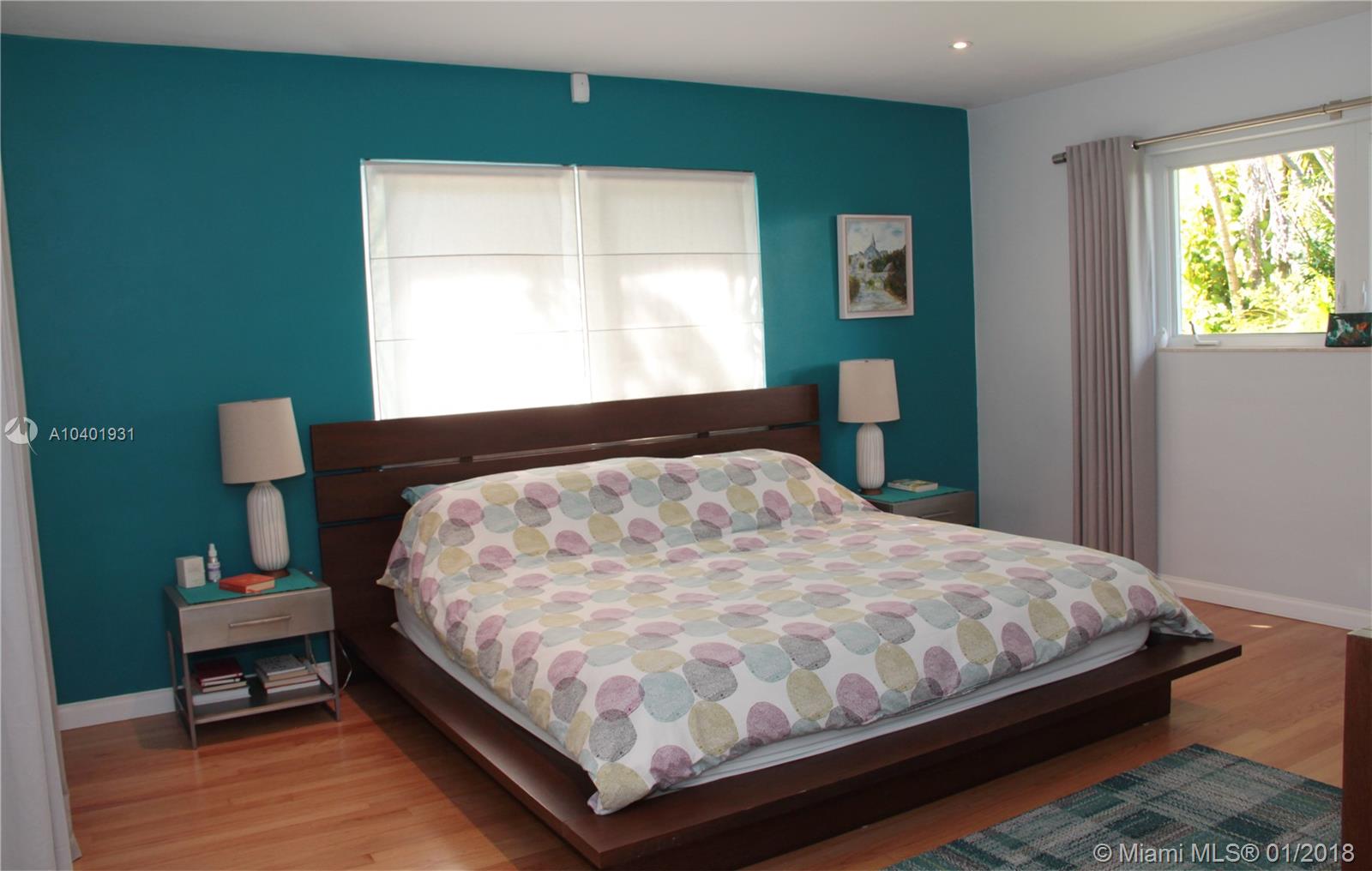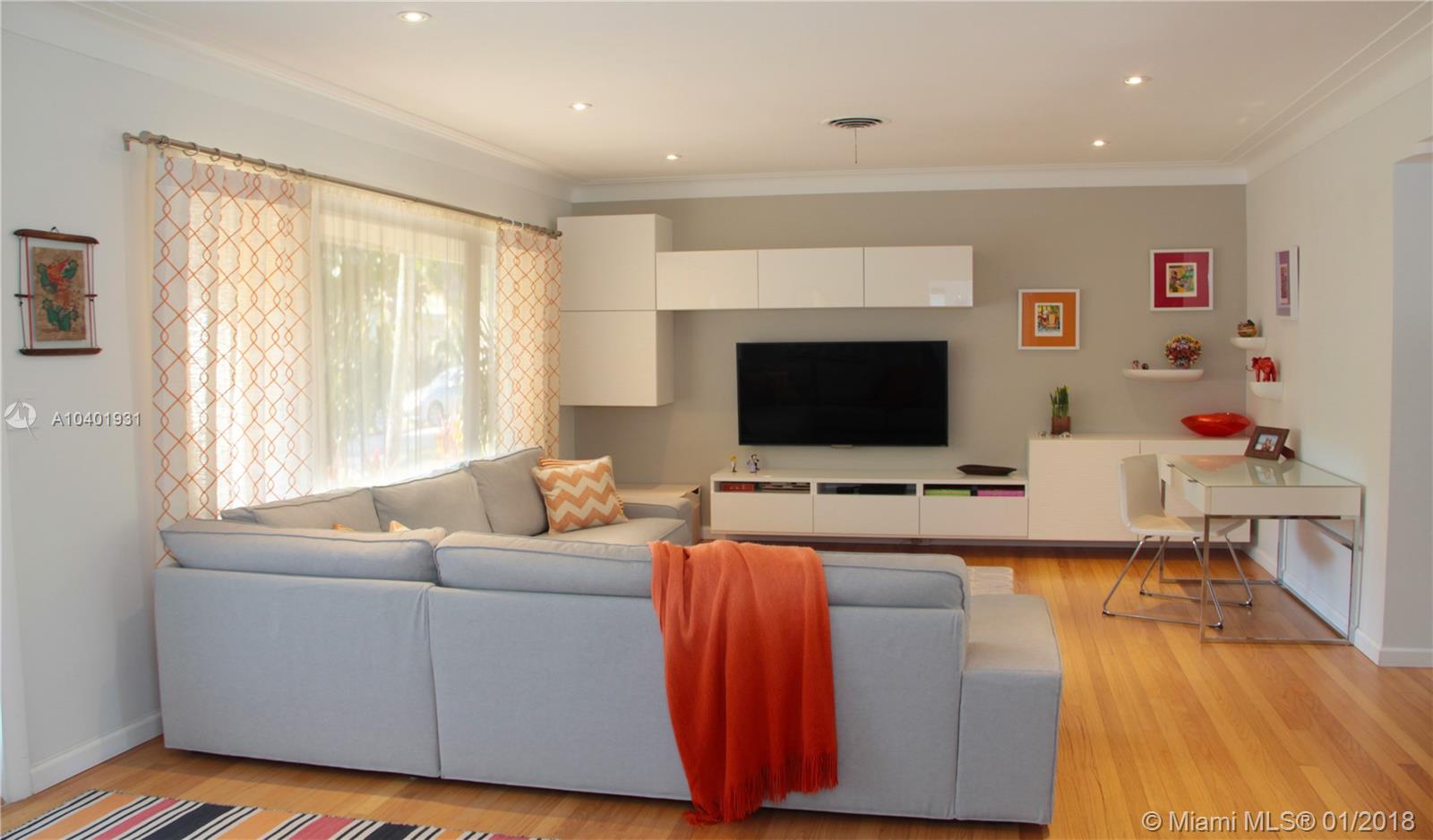 Impeccable 3/2 mid-century modern style home on a quiet street, walking distance from the neighborhood shops in downtown Miami Shores. New impact windows & doors and accordion shutters all throughout, including hurricane proof garage door. Great lay-out with refinished hardwood floors, double living space area to arrange dining room, family room and formal living room. All bedrooms are large and have very generous storage space. Large sliding door that opens to a large finished patio and a professionally landscaped back yard, making this house great for entertaining and enjoying the Miami weather. Great curb appeal with beautiful landscaping in the front and convenient access to a 2-car garage through the back alley with an electric gate. Brand new garage roof, newer tile roof and A/C.