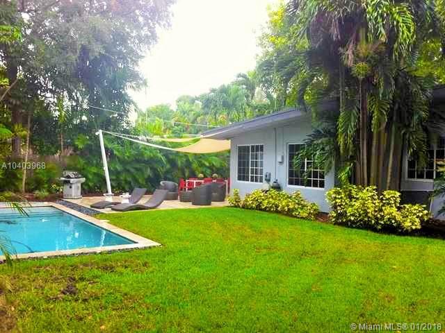 Gorgeous single family pool home fully renovated in Miami Shores. Modern flair with plenty of room for entertainment inside and out. Light, bright, and airy with 3 beautiful bedrooms and 2 baths. Awesome family room, spacious living and dining room area overlooks the pool and huge backyard. Great open new kitchen with brand new SS appliances & granite counter tops. Updated baths & Marble floors. 1 Car Garage, driveway and plenty guest parking. New Roof