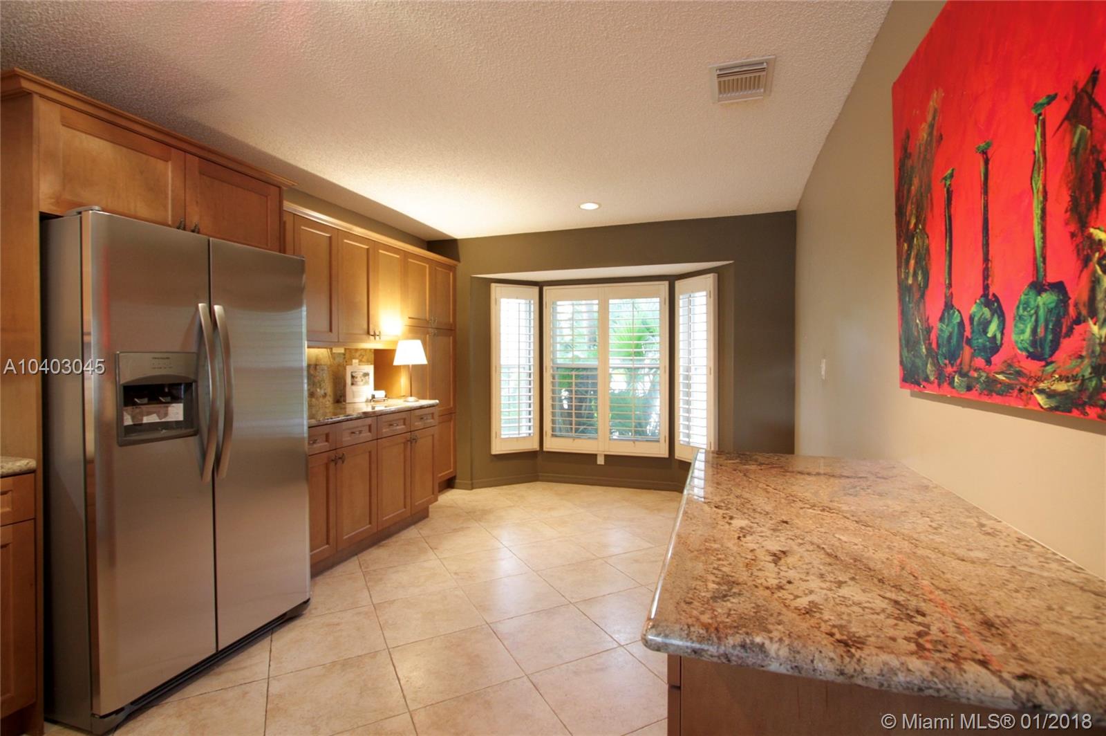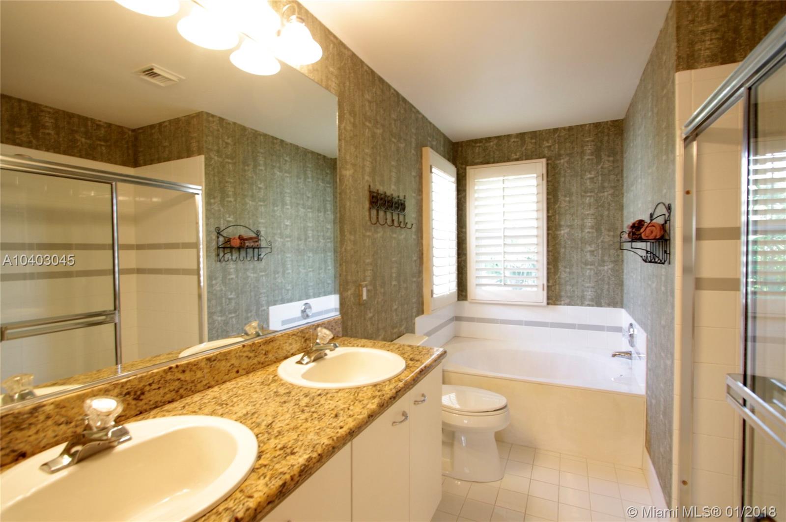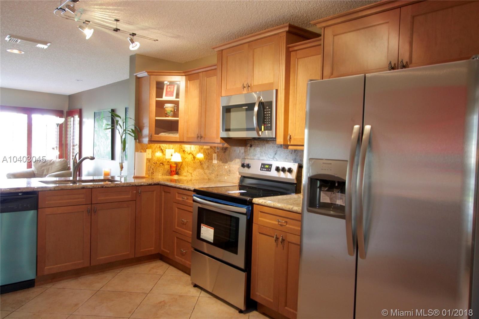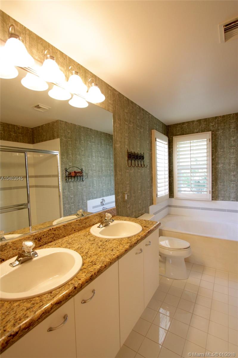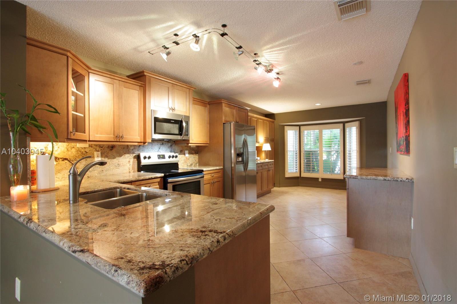 This popular three-bedroom, two-and-a-half-bath, single-family home (the DaVinci model) is on a prime, waterfront lot and has been beautifully updated. The living room features cathedral ceilings, extra windows, Brazilian Cherry hard wood floors and matching plantation shutters. The large eat-in kitchen has granite counter-tops, wood cabinets, a breakfast bar and brand-new stainless steel appliances. The bathrooms also have granite counters. There's a full set of accordian hurricane shutters. The private back yard has a large paver patio and has views of the lake and the park. (Enjoy having no back neighbors.) West Lake Village is a gated community with tennis, heated pool, hot tub, exercise room, clubhouse and a kid’s play area. It is very close to Hollywood Beach and Downtown Hollywood.