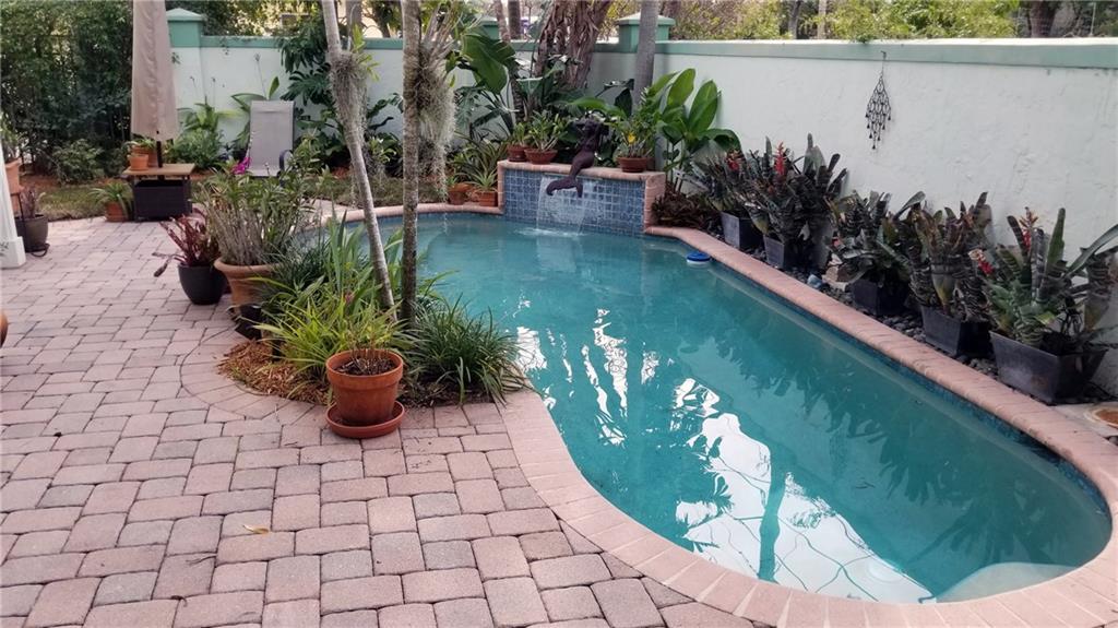 Mediterranean style ~2000sf Villa, large corner lot & waterfall pool. Las Olas Lifestyle, courthouse & hospital a short walk away. 10' ceilings, custom lighting, Venetian plaster paint finishes, no popcorn.Travertine & solid Ash flooring. Big rooms, bright open views. Grnd Floor: Living, dining, office area open to pool, 1/2 bath, Dlx Chef's kitchen, 2 car garage, full house generator. 2nd level: 3 bedrooms, marble clad European luxury baths, laundry. 3rd floor AC bonus room 10x20. 8 unit HOA. Come see!!