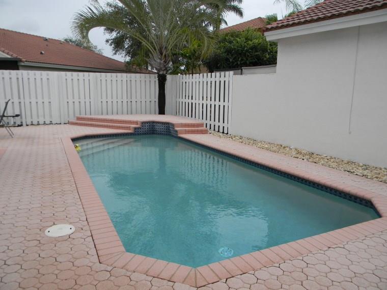 Best Deal! Bahama Model w/Pool! Move in Ready! Tiled through out, Volume ceilings, Newer A/C, Roof Replaced in 2005, Brick paver Patio, Private Fenced Yard! Eat in Kitchen, Upgraded Appliances, Laundry rm., 3rd Bed has a Murphy Bed and Built in Desk/Cabinets, Double Door! Hurricane shutters panels. Must See! Very Clean!