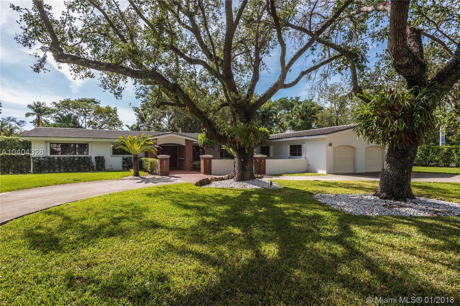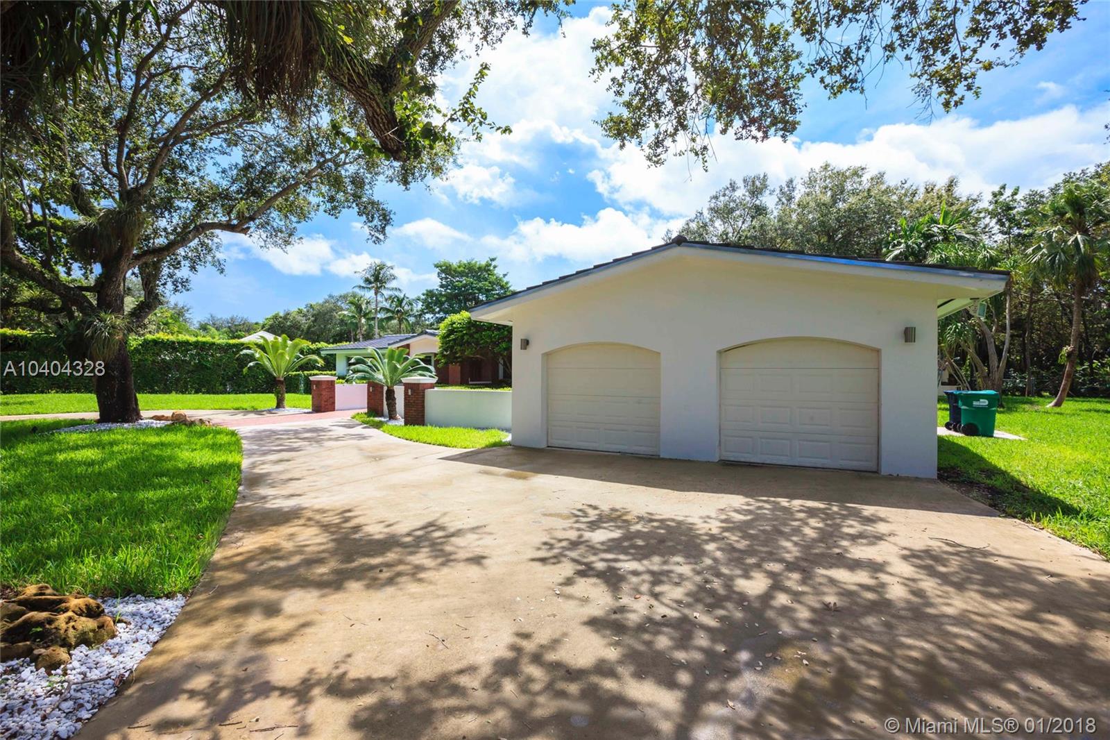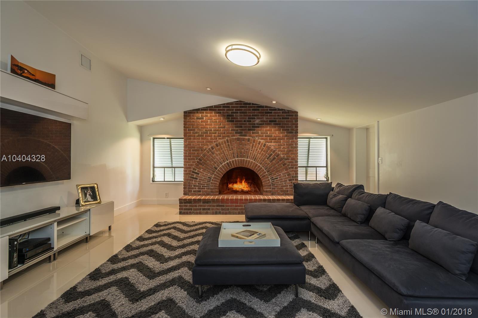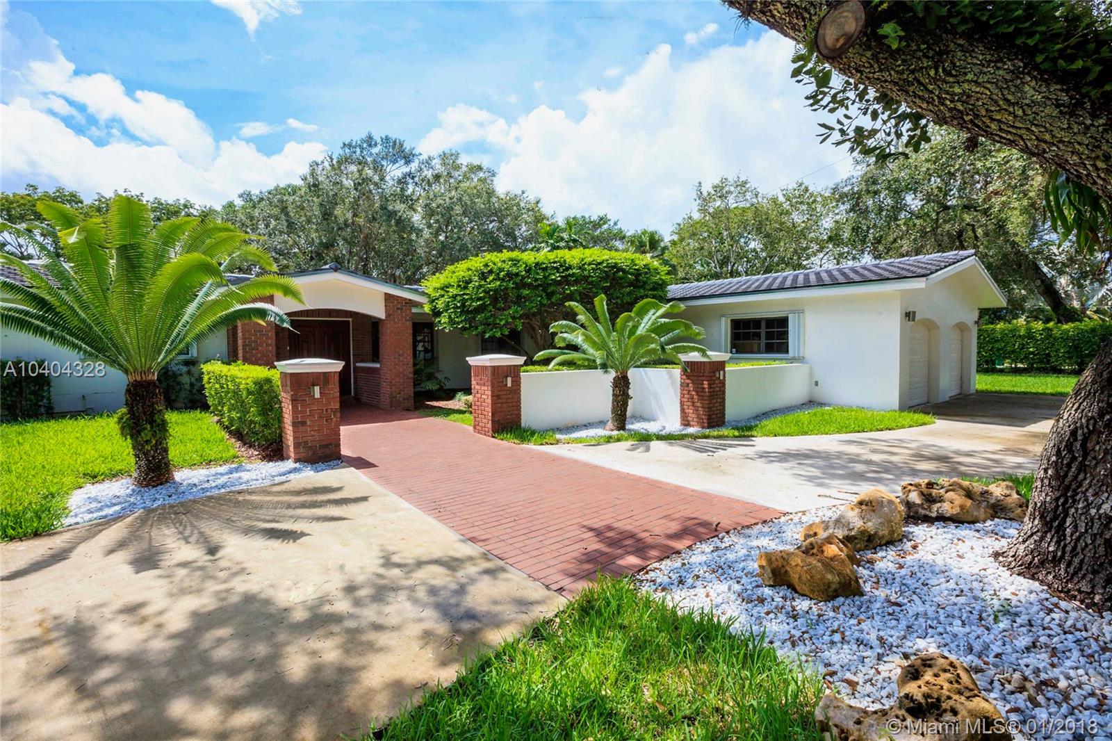 This Pinecrest ranch-style gem with a more modern interior twist has a comfortable floor plan. Foyer entry, open concept living and dining, spacious entertainment room with a wood-burning fireplace, 4 bedrooms, 3.5 baths (including a 2nd ensuite on opposite side), plus a separate multi-purpose room. Beautiful white kitchen with quality stainless steel appliances and breakfast area has direct access to a covered terrace, the sunny pool and large backyard. Porcelain floors; wood in bedrooms, laundry room, 2-car garage and ample driveway areas. Roof is 3 years new. Huge 31,363 sf corner lot with mature trees; all dimensions per County records. A desirable Pinecrest location, combined with sought-after public and private schools, make this property a fabulous option. Come see!