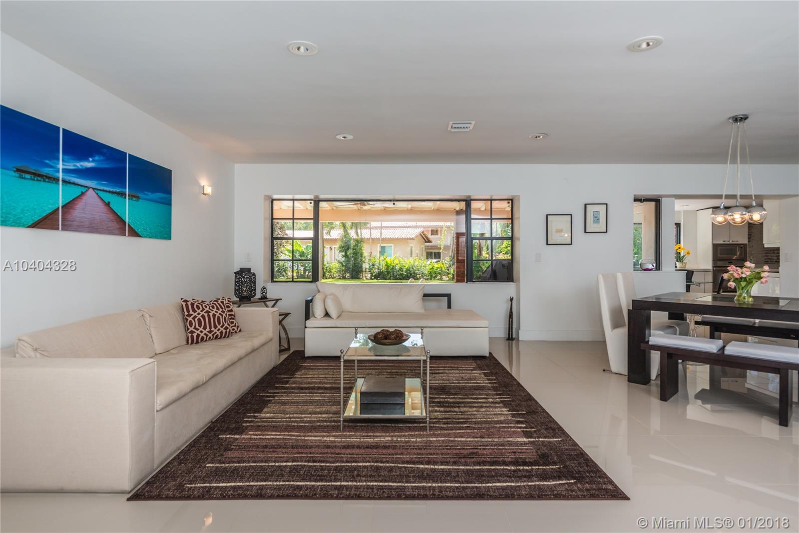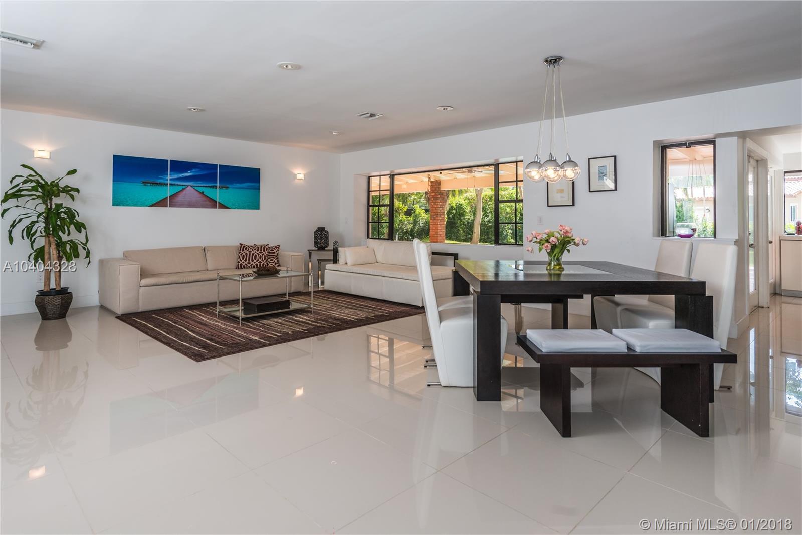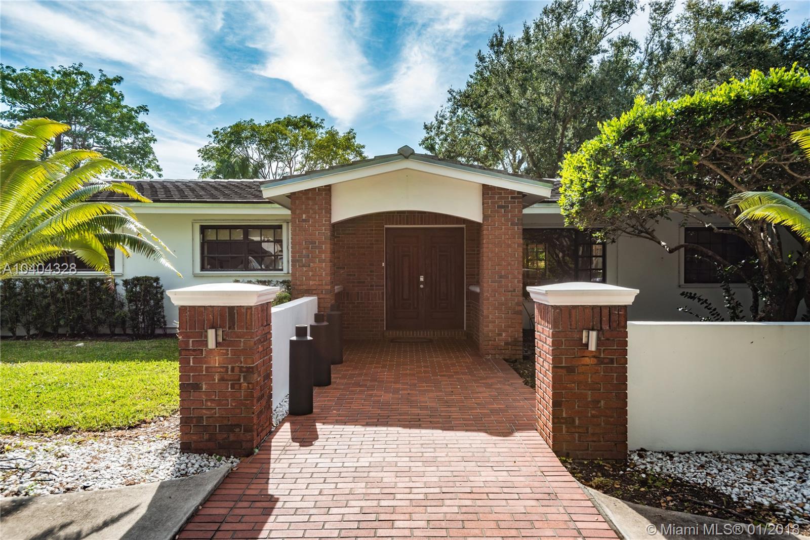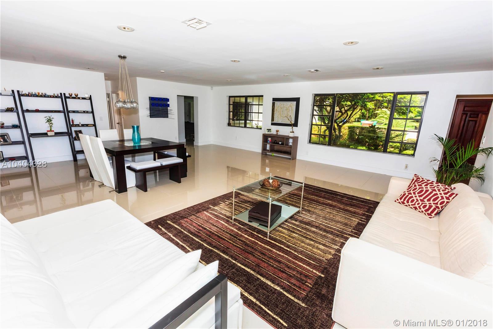 This Pinecrest ranch-style gem with a more modern interior twist has a comfortable floor plan. Foyer entry, open concept living and dining, spacious entertainment room with a wood-burning fireplace, 4 bedrooms, 3.5 baths (including a 2nd ensuite on opposite side), plus a separate multi-purpose room. Beautiful white kitchen with quality stainless steel appliances and breakfast area has direct access to a covered terrace, the sunny pool and large backyard. Porcelain floors; wood in bedrooms, laundry room, 2-car garage and ample driveway areas. Roof is 3 years new. Huge 31,363 sf corner lot with mature trees; all dimensions per County records. A desirable Pinecrest location, combined with sought-after public and private schools, make this property a fabulous option. Come see!