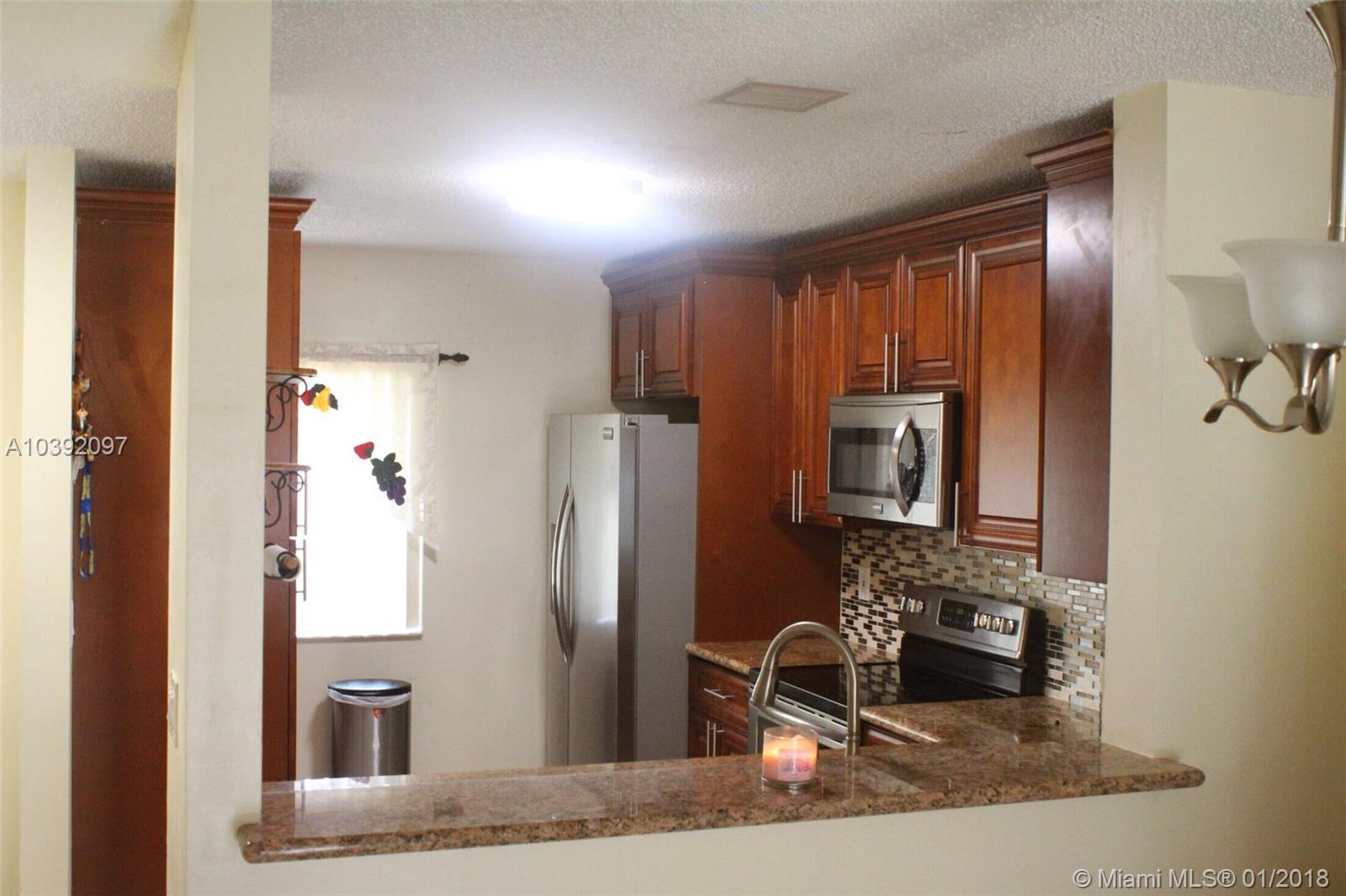 This open floor plan has all the upgrades plus many more. The dark (laminate) floors grace the second levels and stairs (no carpet) throughout home. The kitchen is totally renovated & ALL UPDATED APPLIANCES STAY. Newly installed BEAUTIFUL porcelain tile floors on the first level. Close to highways and all that Pembroke Pines has to offer. Family room and dining room; kitchen offers granite counter tops, pantry, and large renovated cabinets. Also includes a laundry closet and hurricane shutters. The master bedroom features walk-in closet and full bath. Don't miss your chance to live in this desirable, prestigious, and gated community!
