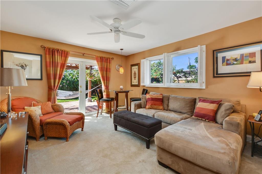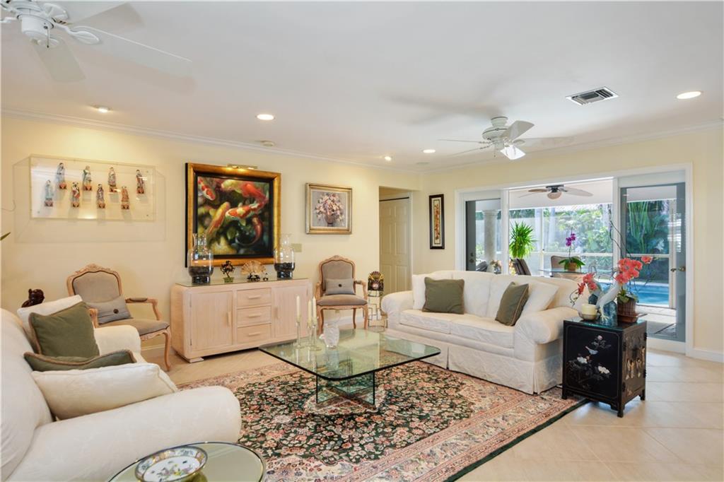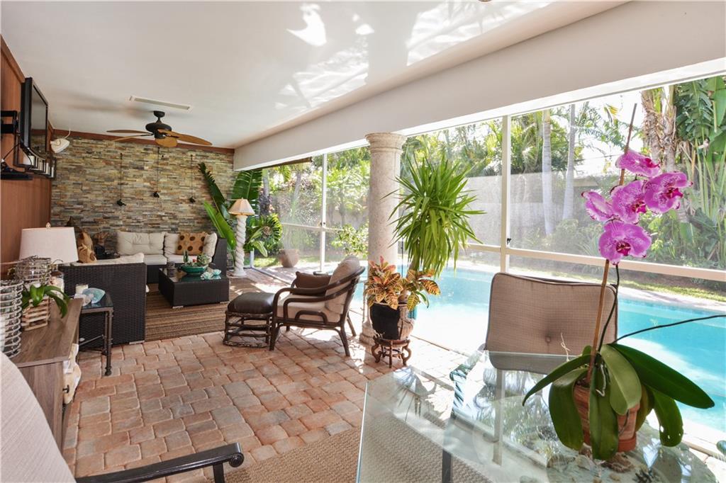Beautifully designed inside and out this 3BR/2BA/2CG/Pool home positioned on a quiet street offers a desirable split bedroom floor plan. The foyer entry flows seamlessly to living and dining rooms and opens to a sunny kitchen with center island. A large outdoor living room offers easy access to the sun drenched pool and manicured gardens. Nothing to do here but enjoy the South Florida lifestyle. Perfect for entertaining. Don’t miss this one!