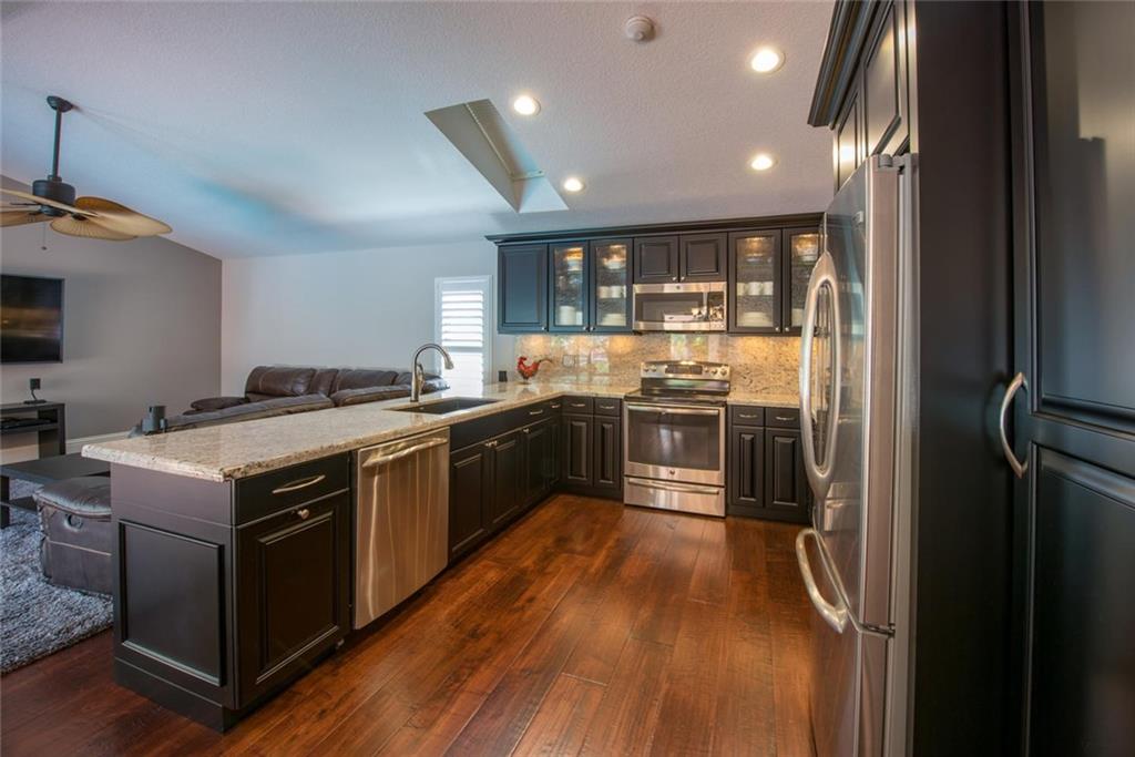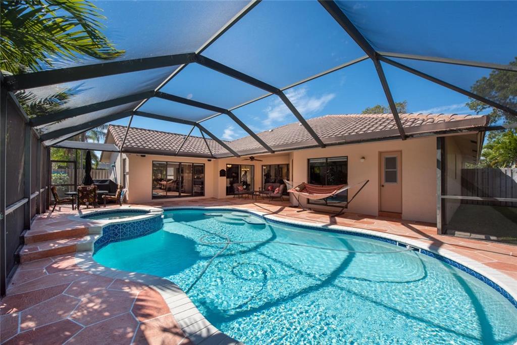 WELCOME HOME TO THIS PRIVATE REMODELED EXECUTIVE HOME LOCATED ON A PRIVATE CORNER LOT! BEAUTIFUL CUSTOM MAPLE KITCHEN CABINETS, EURO GLASS FRONTS, GRANITE COUNTERS, GRANITE COMPOSITE BLANCO SINK & TOUCHLESS DELTA FAUCET. SEPARATE BREAKFAST AREA, OPEN FAMILY ROOM OVERLOOKING THE SCREENED POOL/PATIO & PRIVATE TROPICAL GARDEN AREA. HARDWOOD FLOORS, PLANTATION SHUTTERS, RAISED PANEL INTERIOR DOORS, NEW FENCE TO EXCEED HURRICANE STANDARDS, NEW EXTENDED PAVER DRIVE & WALKWAY.