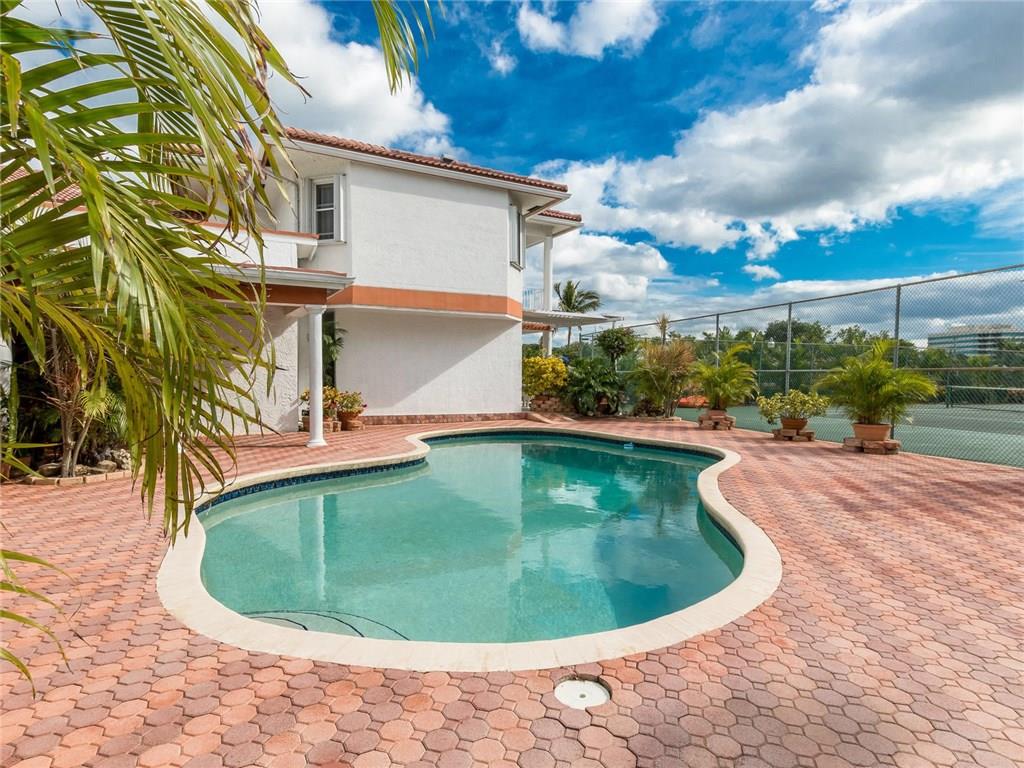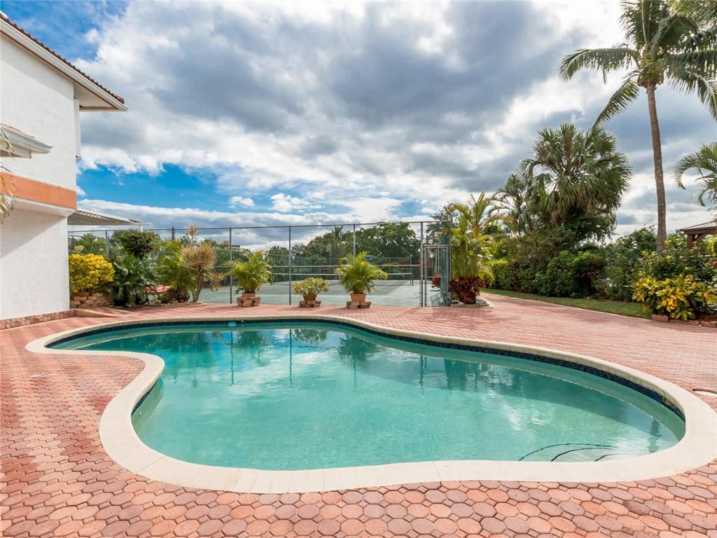 You have never seen a home quite like this one** This Exceptional Property in Jacaranda Lakes has room for 2 families. The main home has over 4300 sf w/ 5 BR's & 5 Baths. The fully functioning guest home has 4 BR's & 4 Baths. In addition to all of the living space, there is plenty of room for outdoor entertaining. Resort Style swimming pool, full tennis court, huge yard with beautiful mature trees! It all sits on a water lot with views to the golf course. This is a property that you do not want to miss!!!