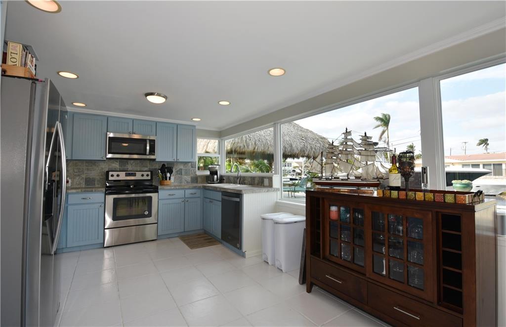 New! New! New! Incredible Buy!! Priced below Appraisal1 A wonderful 3/2 split home with a Brand new roof, new impact windows and doors, new air conditioning, new 70 ft composite dock with a boat lift, new kitchen with stainless steel appliances, new circular driveway with pavers, new large pool, new decking, new landscaping , new large Tiki hut. Open living area includes 2 inside dining areas with an incredible view of the canal and pool. Kitchen offers the same wonderful view. House includes a large double garage and inside laundry room.