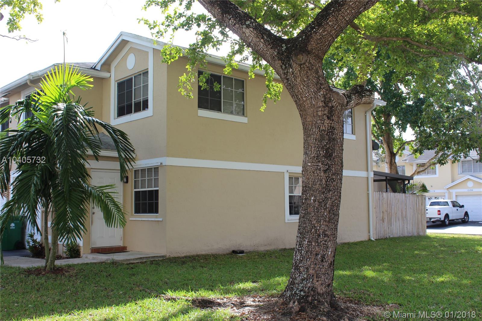 Beautiful fee simple corner townhouse with a 1 car garage in highly sought after Cooper City. Walk in to this brightly lit living room with extra windows and all tile floors downstairs. Walk straight thru to the oversized screened in covered patio area great for entertaining. Wood floors throughout the upstairs with large walk in closets. Live in Cooper City for the great schools and close proximity to shops, restaurants, transportation and medical facilities. Super low maintenance makes for easy living. Roof and A/C installed after Wilma.