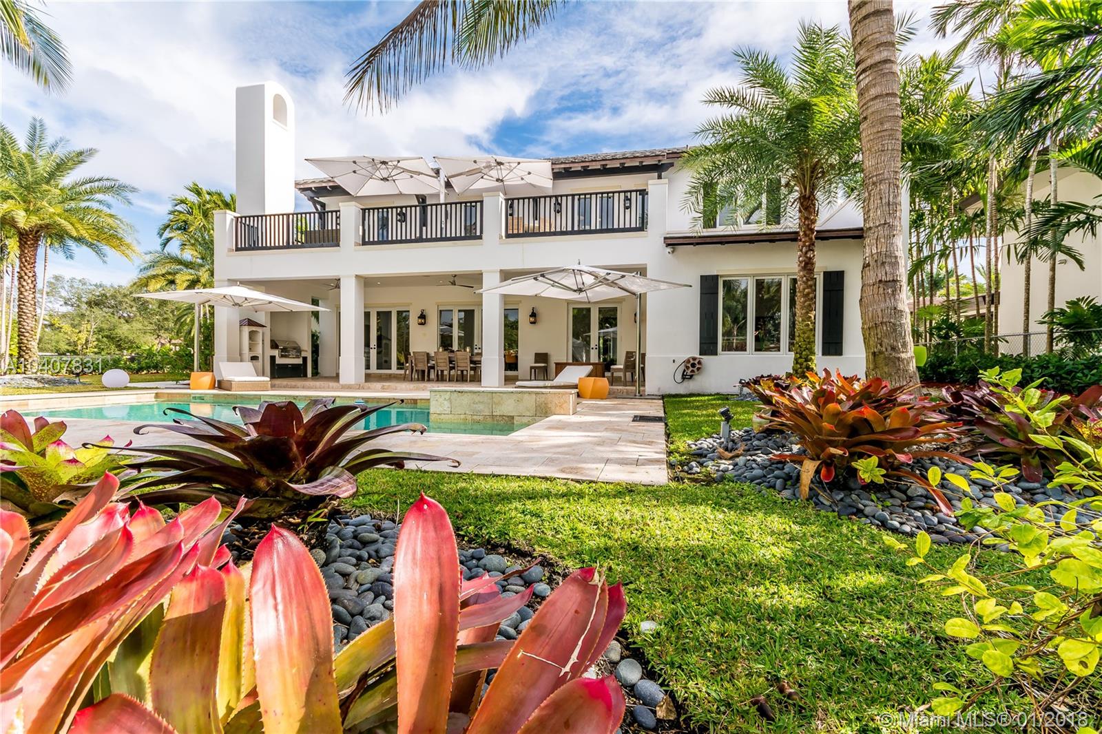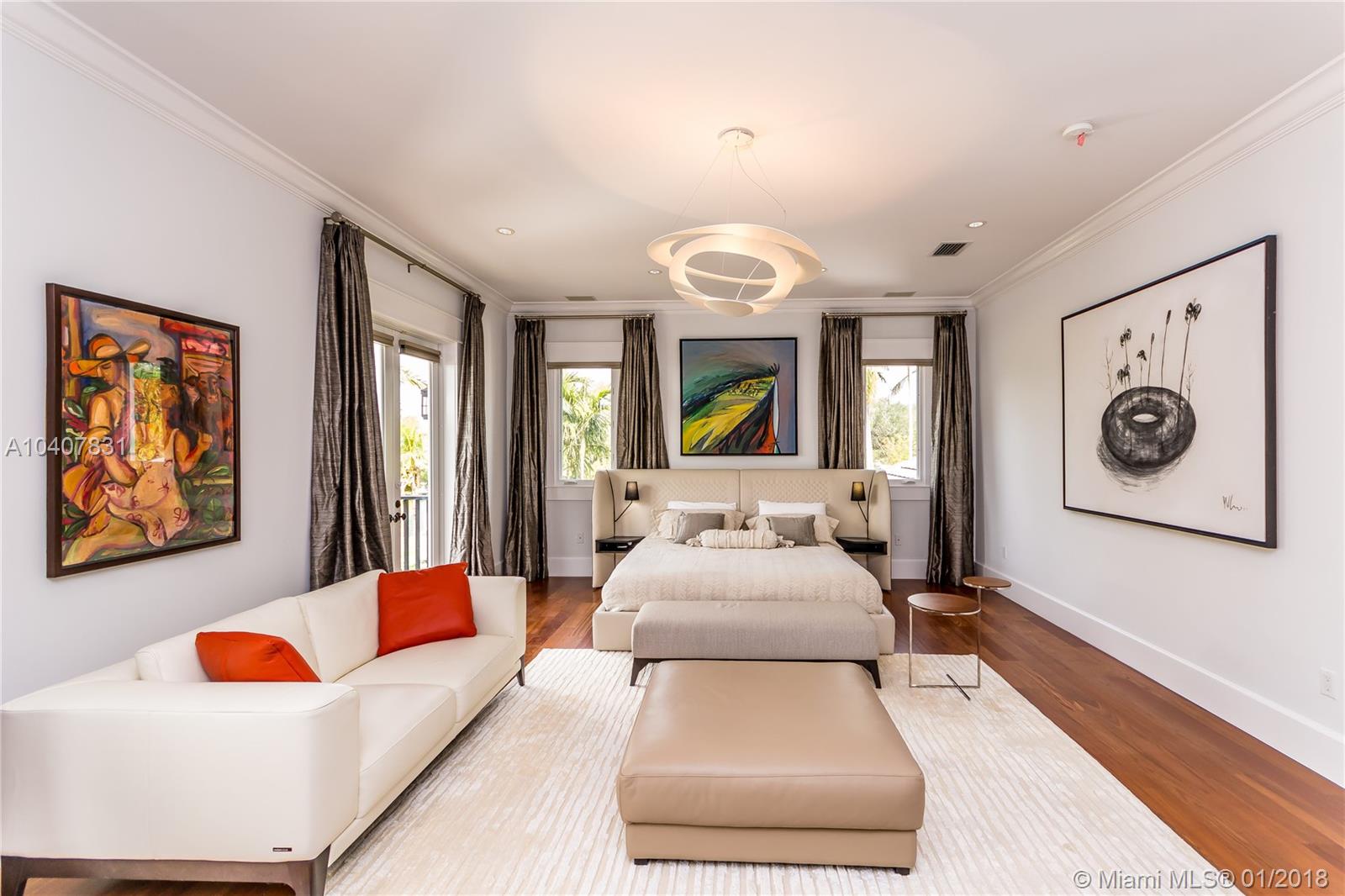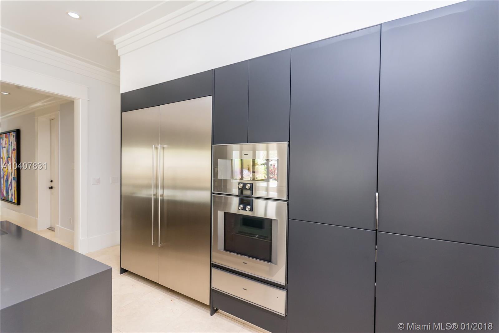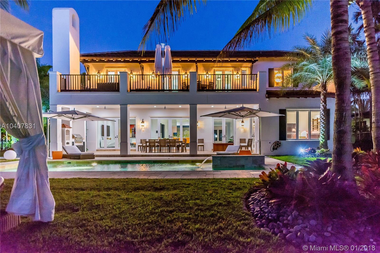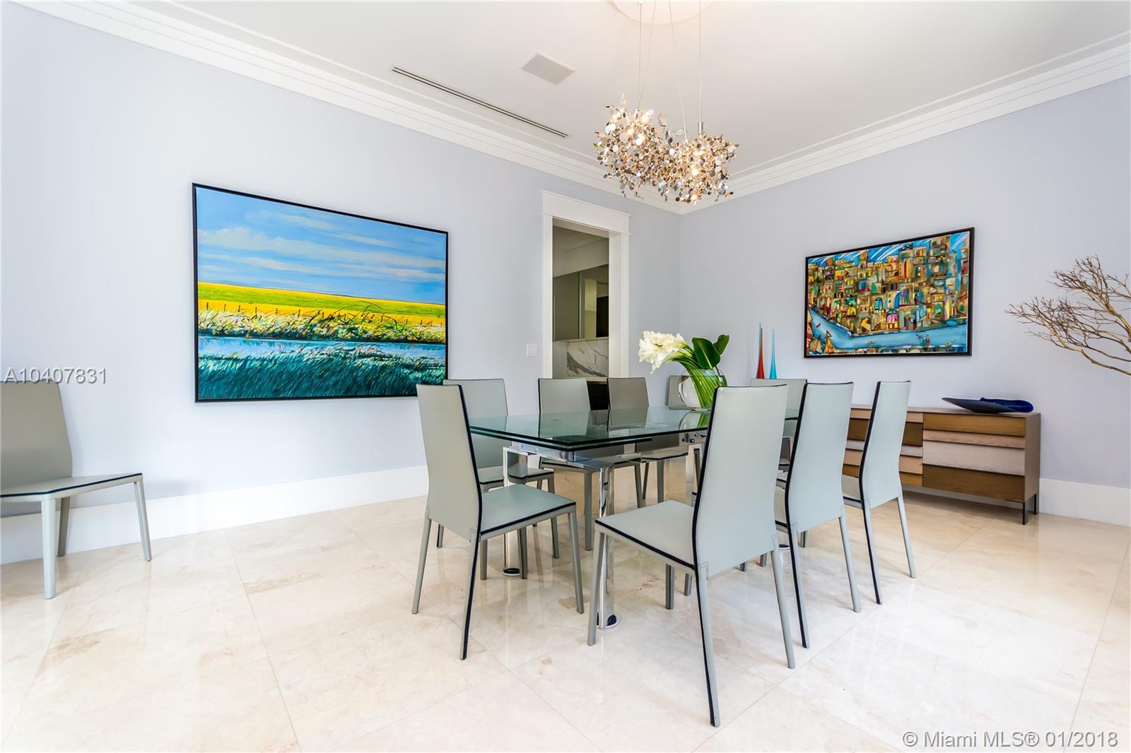 Spacious, gated, contemporary Island–style villa nestled in the heart of Coral Gables, on the Gables Waterway with ocean access. Abundant natural light, expansive verandas and terraces, gorgeous water views from the large entertaining kitchen, which itself boasts a single-slab marble wall. Completely renovated and updated with 6 bedrooms, 7.5 bathrooms (all bathrooms are en suite), 3-car garage, Chicago-brick driveway, impact windows and doors, security cameras and "smart home" features, wine cellar, and lighted tropical landscaping. Formal living and dining areas, plus family room open to the kitchen and facing the pool patio and waterway, all designed for gracious, elegant, yet relaxed tropical living