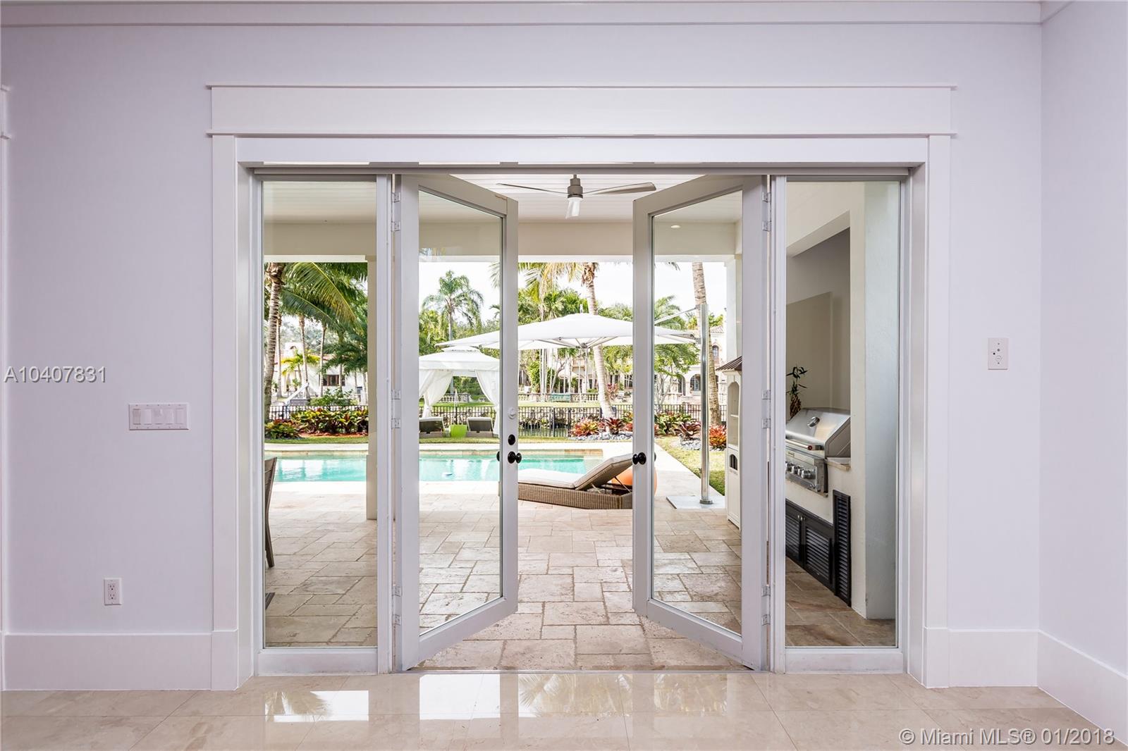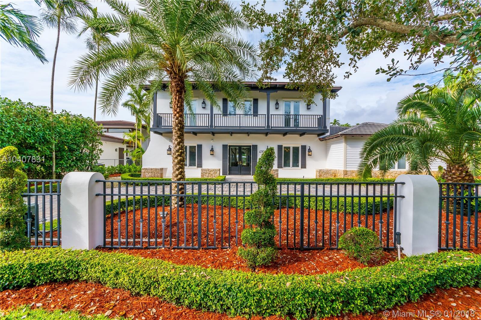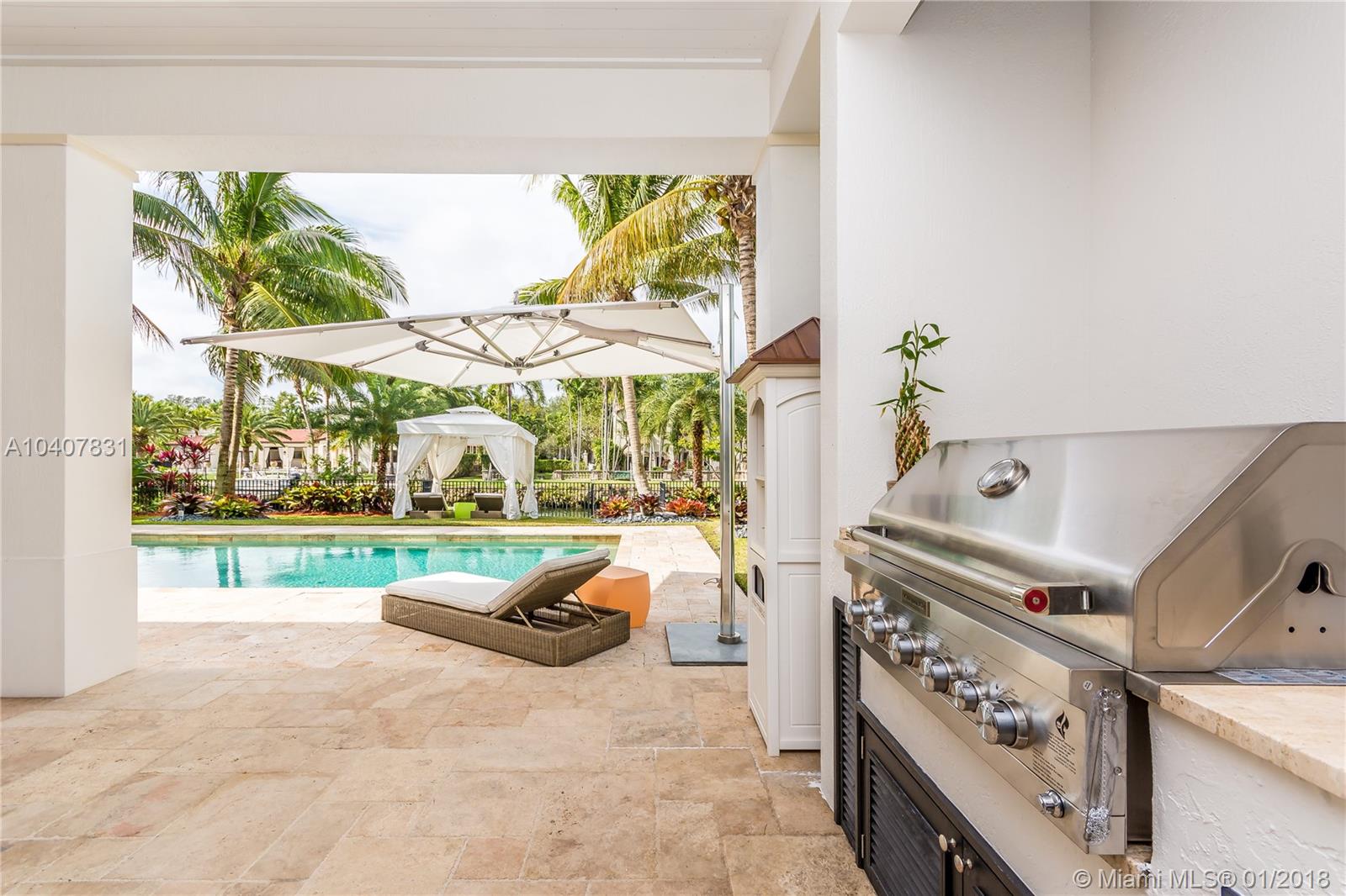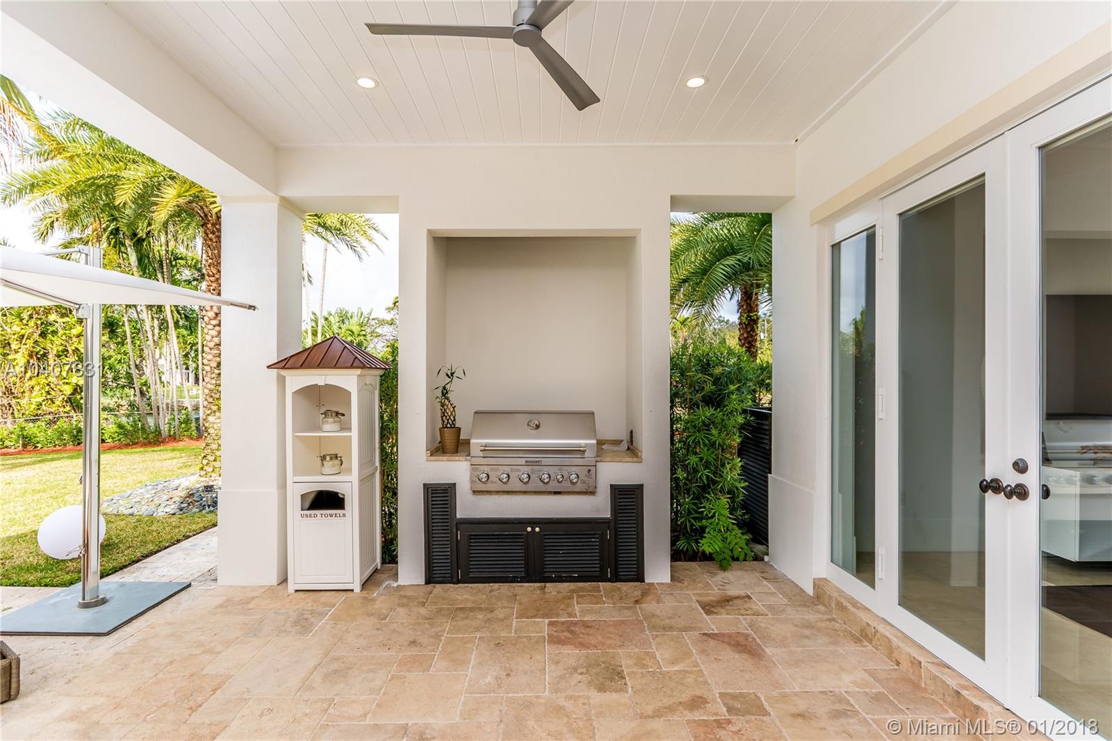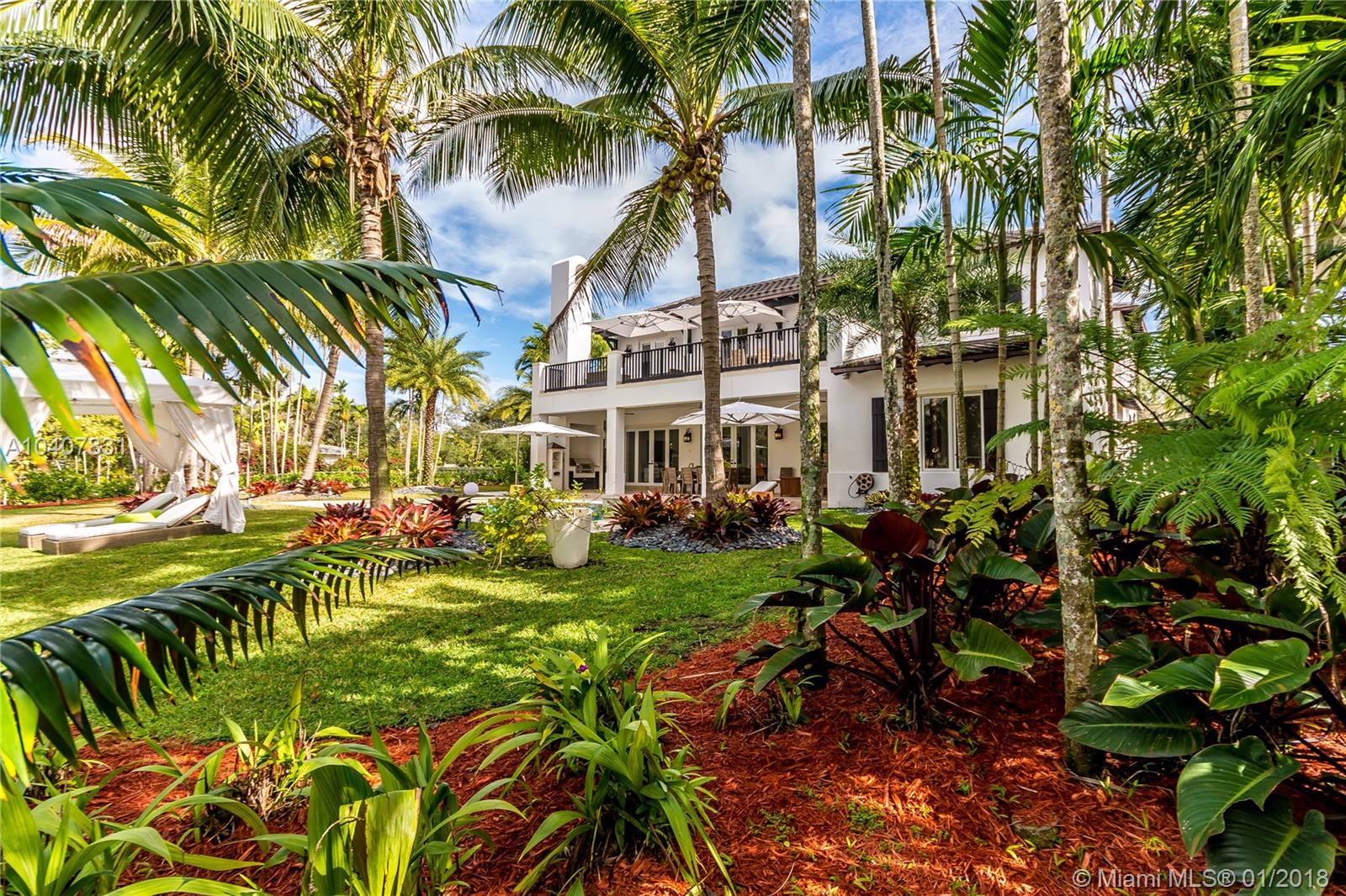 Spacious, gated, contemporary Island–style villa nestled in the heart of Coral Gables, on the Gables Waterway with ocean access. Abundant natural light, expansive verandas and terraces, gorgeous water views from the large entertaining kitchen, which itself boasts a single-slab marble wall. Completely renovated and updated with 6 bedrooms, 7.5 bathrooms (all bathrooms are en suite), 3-car garage, Chicago-brick driveway, impact windows and doors, security cameras and "smart home" features, wine cellar, and lighted tropical landscaping. Formal living and dining areas, plus family room open to the kitchen and facing the pool patio and waterway, all designed for gracious, elegant, yet relaxed tropical living