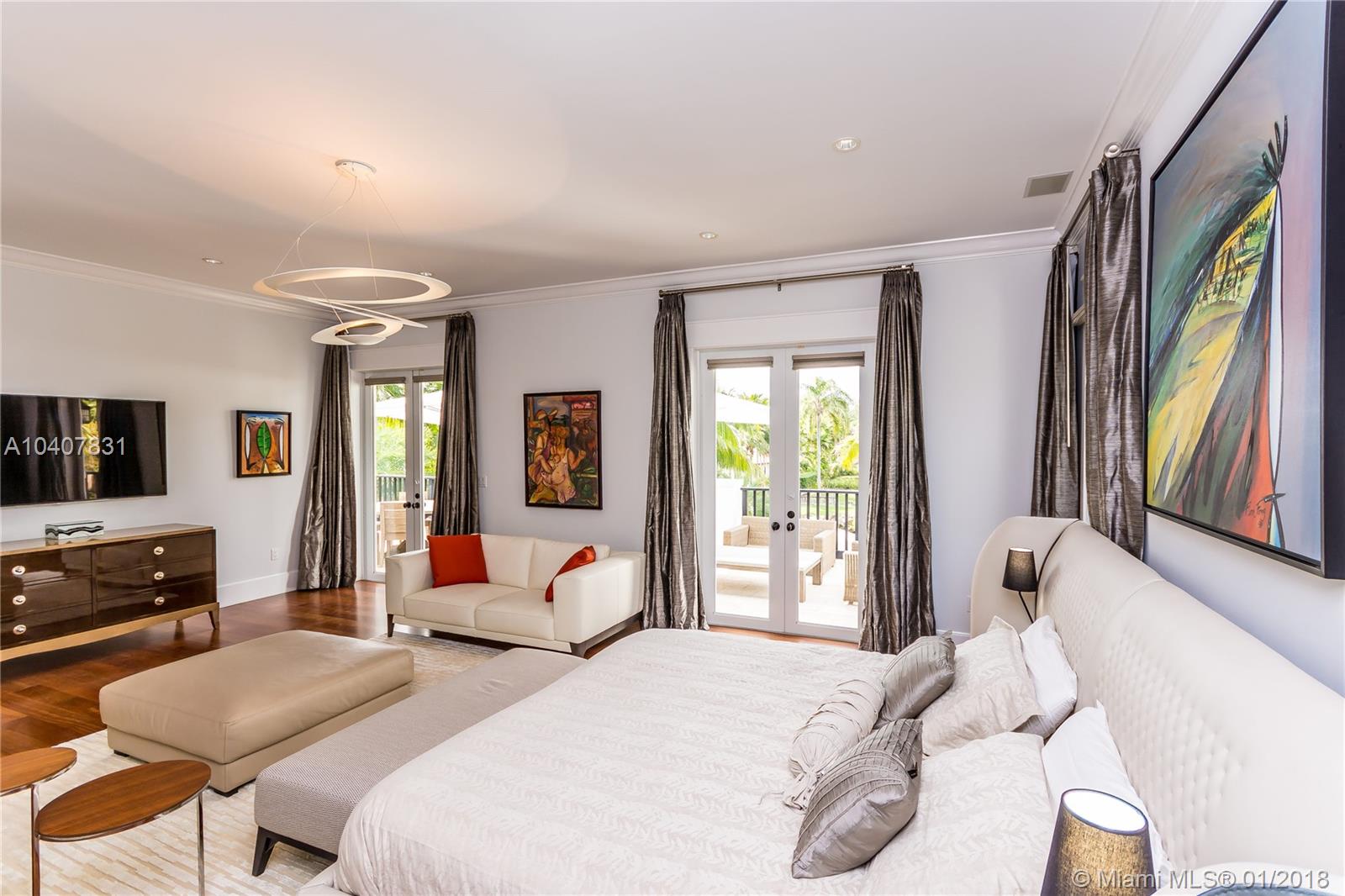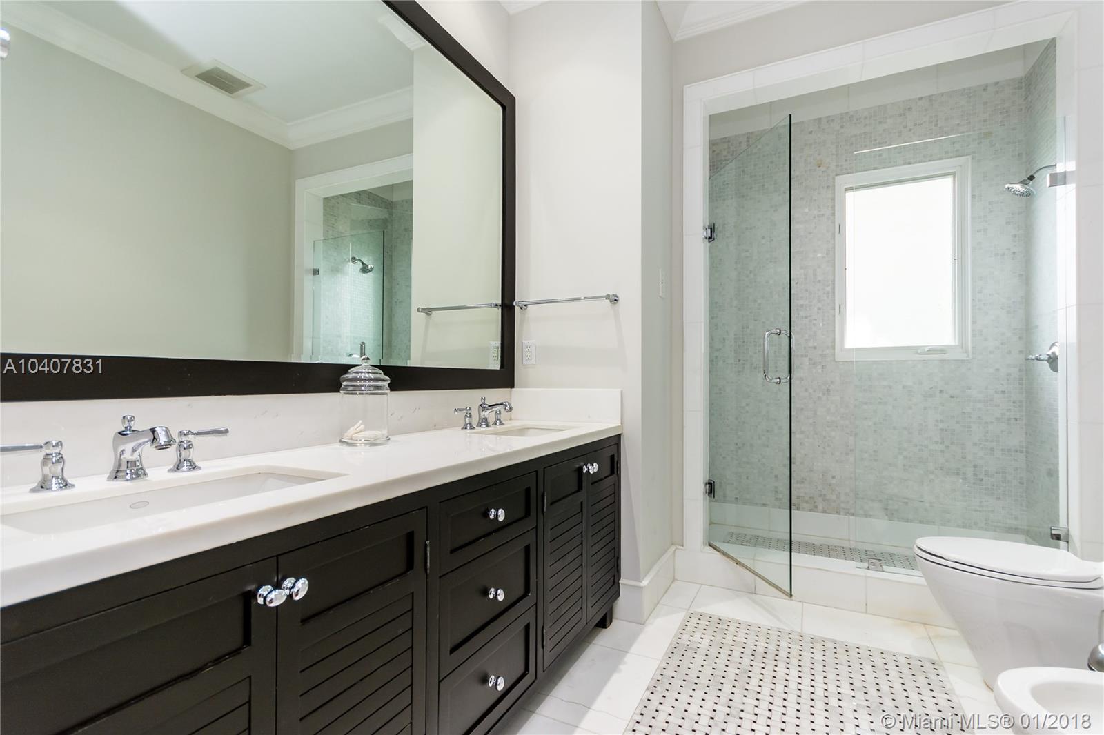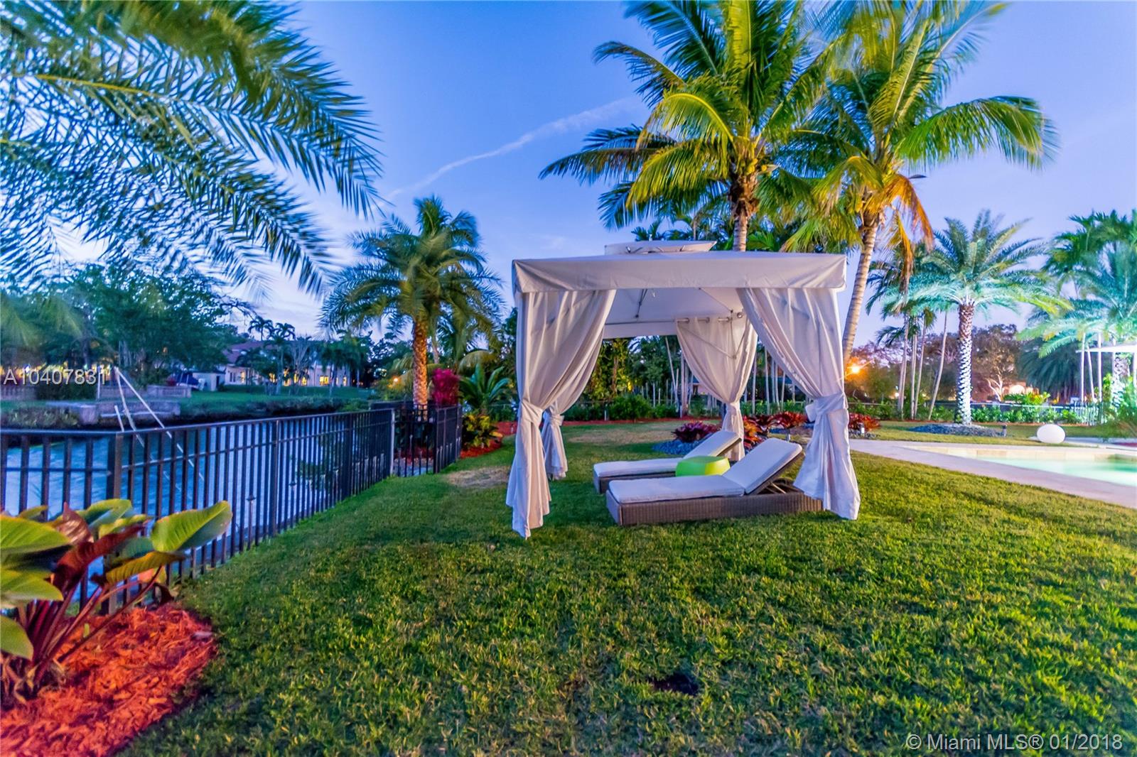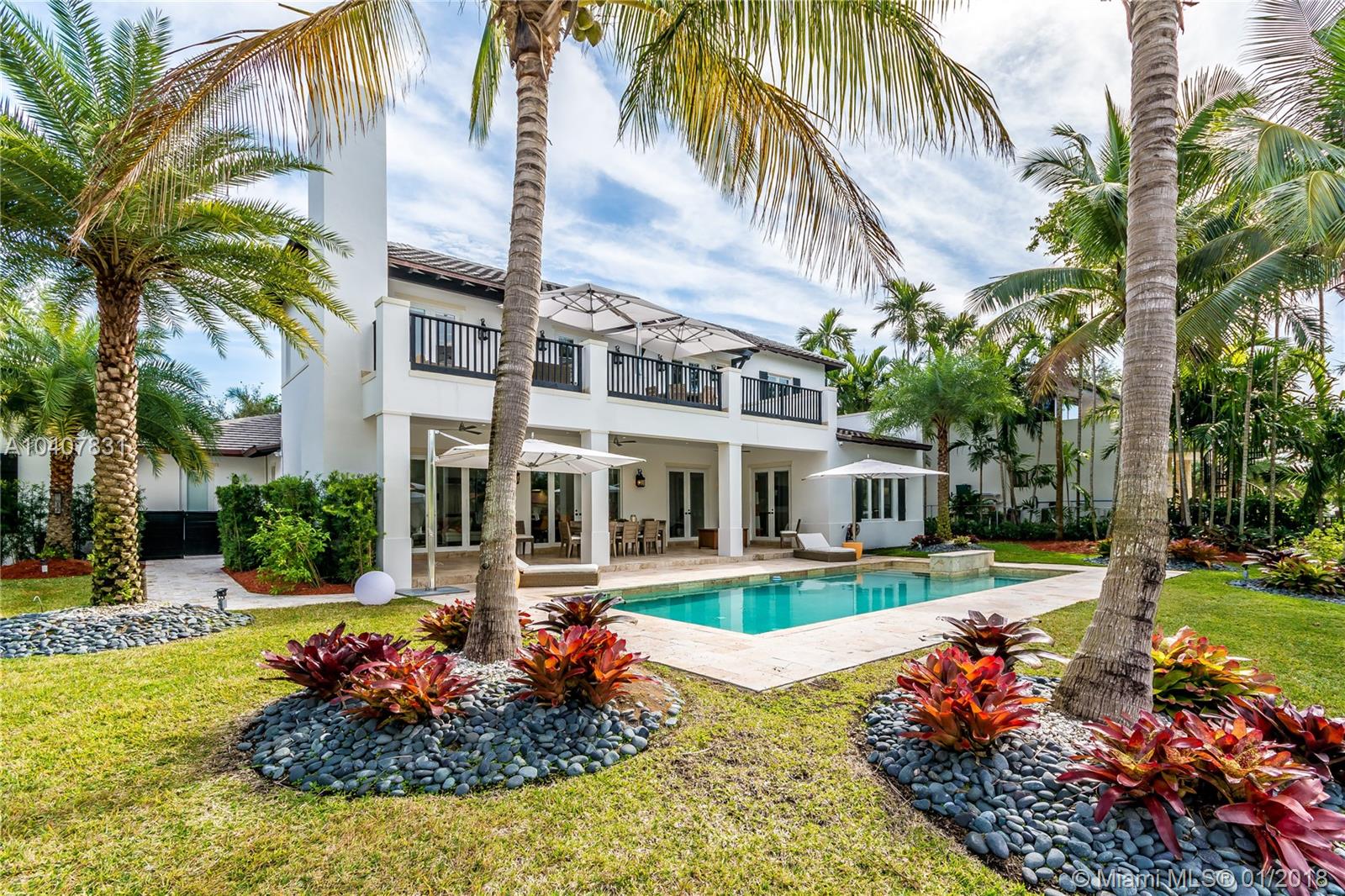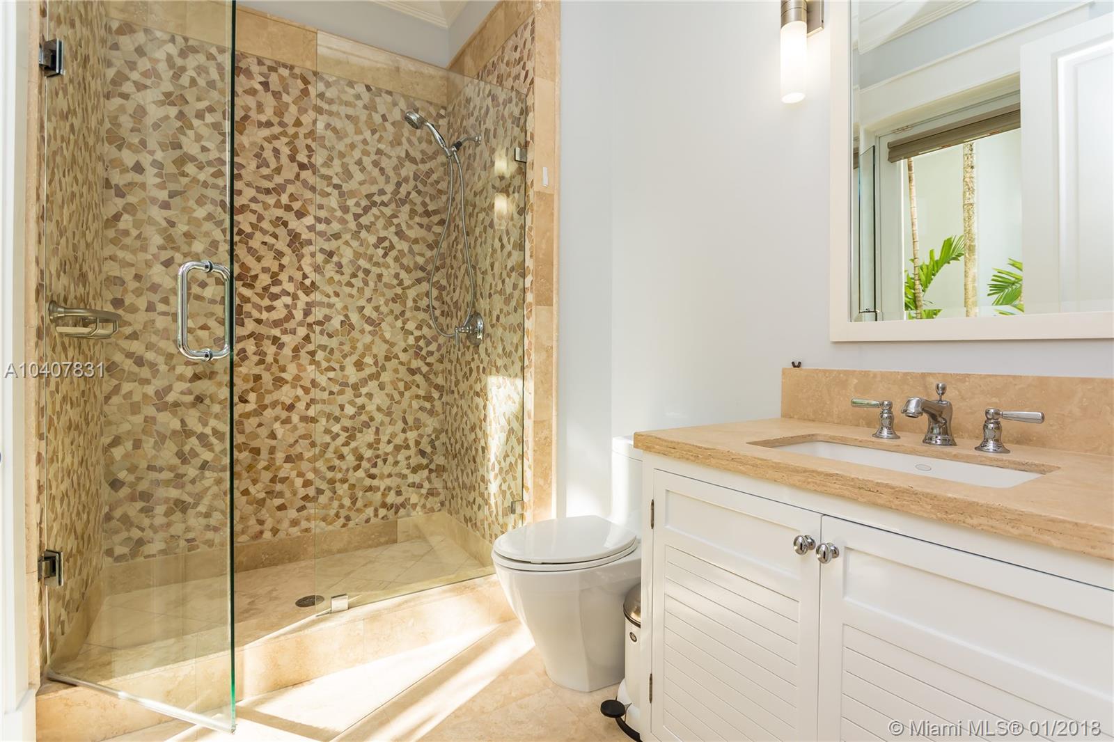 Spacious, gated, contemporary Island–style villa nestled in the heart of Coral Gables, on the Gables Waterway with ocean access. Abundant natural light, expansive verandas and terraces, gorgeous water views from the large entertaining kitchen, which itself boasts a single-slab marble wall. Completely renovated and updated with 6 bedrooms, 7.5 bathrooms (all bathrooms are en suite), 3-car garage, Chicago-brick driveway, impact windows and doors, security cameras and "smart home" features, wine cellar, and lighted tropical landscaping. Formal living and dining areas, plus family room open to the kitchen and facing the pool patio and waterway, all designed for gracious, elegant, yet relaxed tropical living