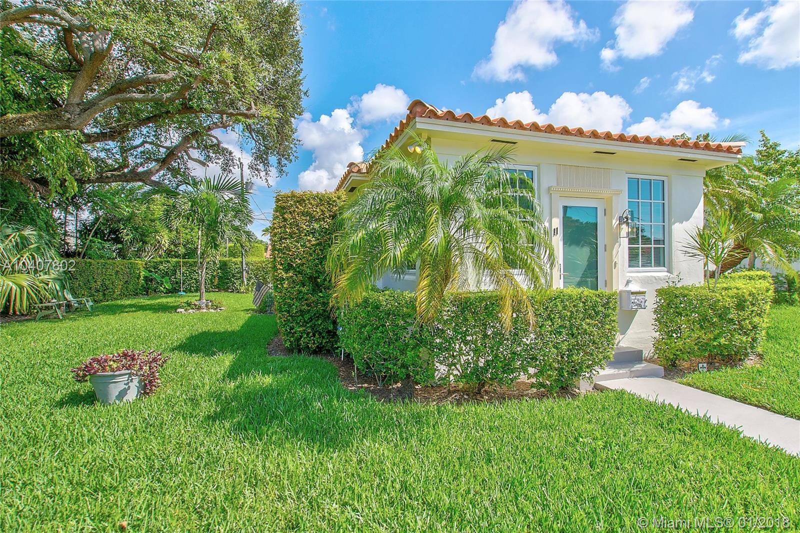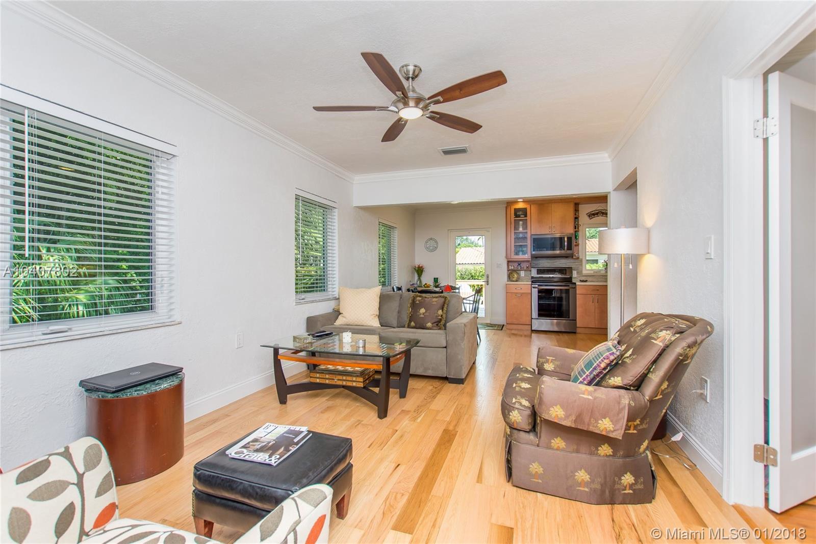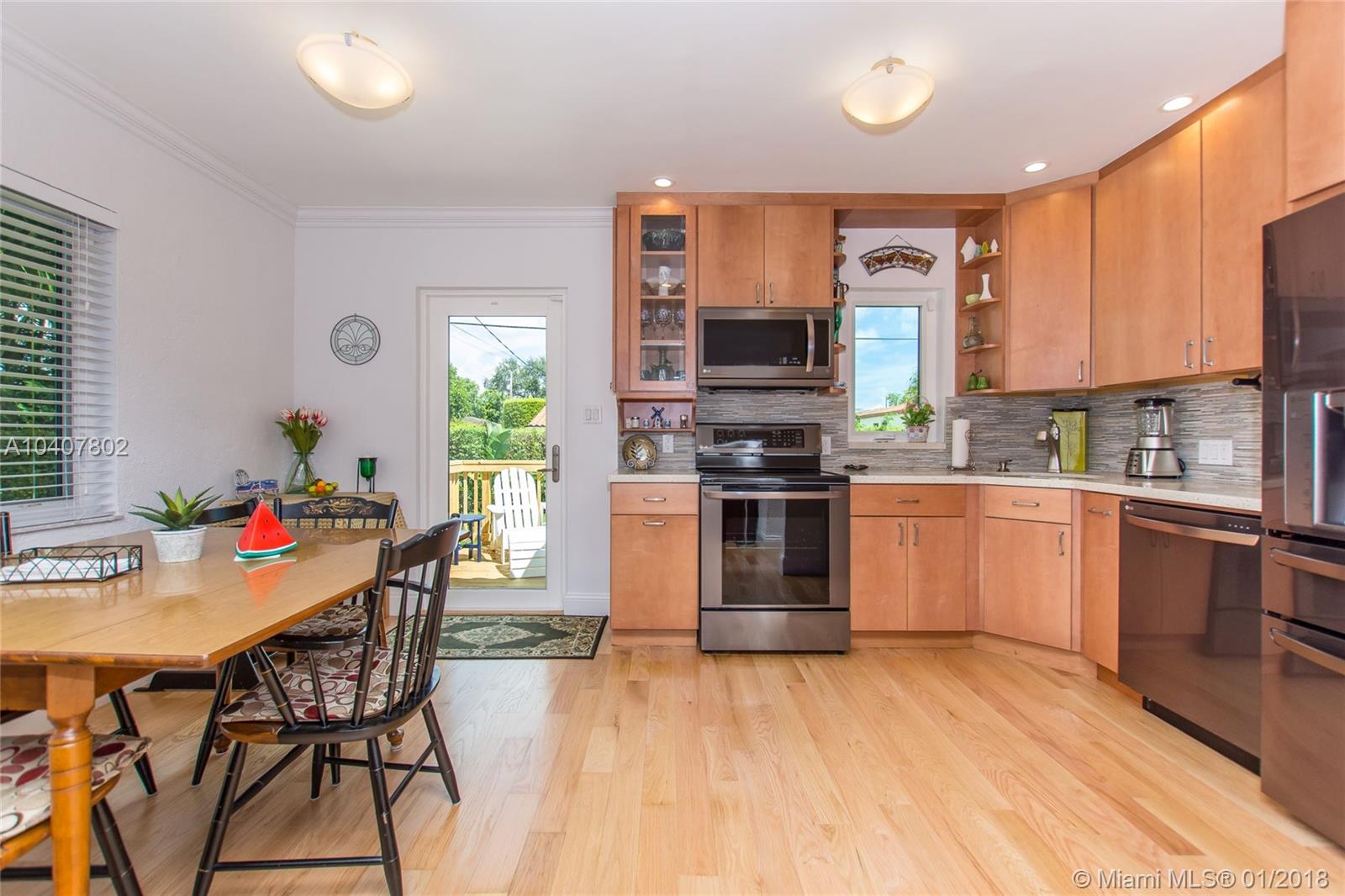 Charm, comfort, updates, and community await the savvy buyer for this three bedroom home set on landscape double lot nestled in a lovely neighborhood. Custom kitchen featuring geostone countertops and chic cabinets and lighting. Sun drenched foyer with maple floor. European style bathroom with porcelain tile shower and marble floor. New electrical 200 amp panel with underground connectivity from FPL. New HVAC unit sized for future home expansion. Oak hardwood floors through out BR, LR/DR. Additional 120 foot deck for entertaining. Impact windows and doors. Short walk to Coral Gables trolley and the Miami trolley stop is at the corner.