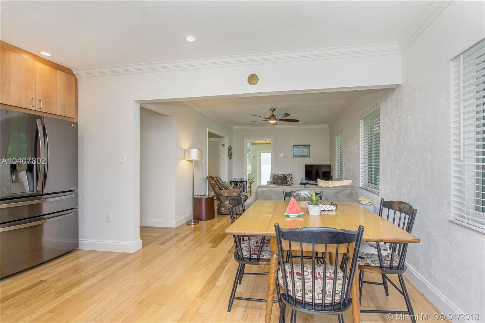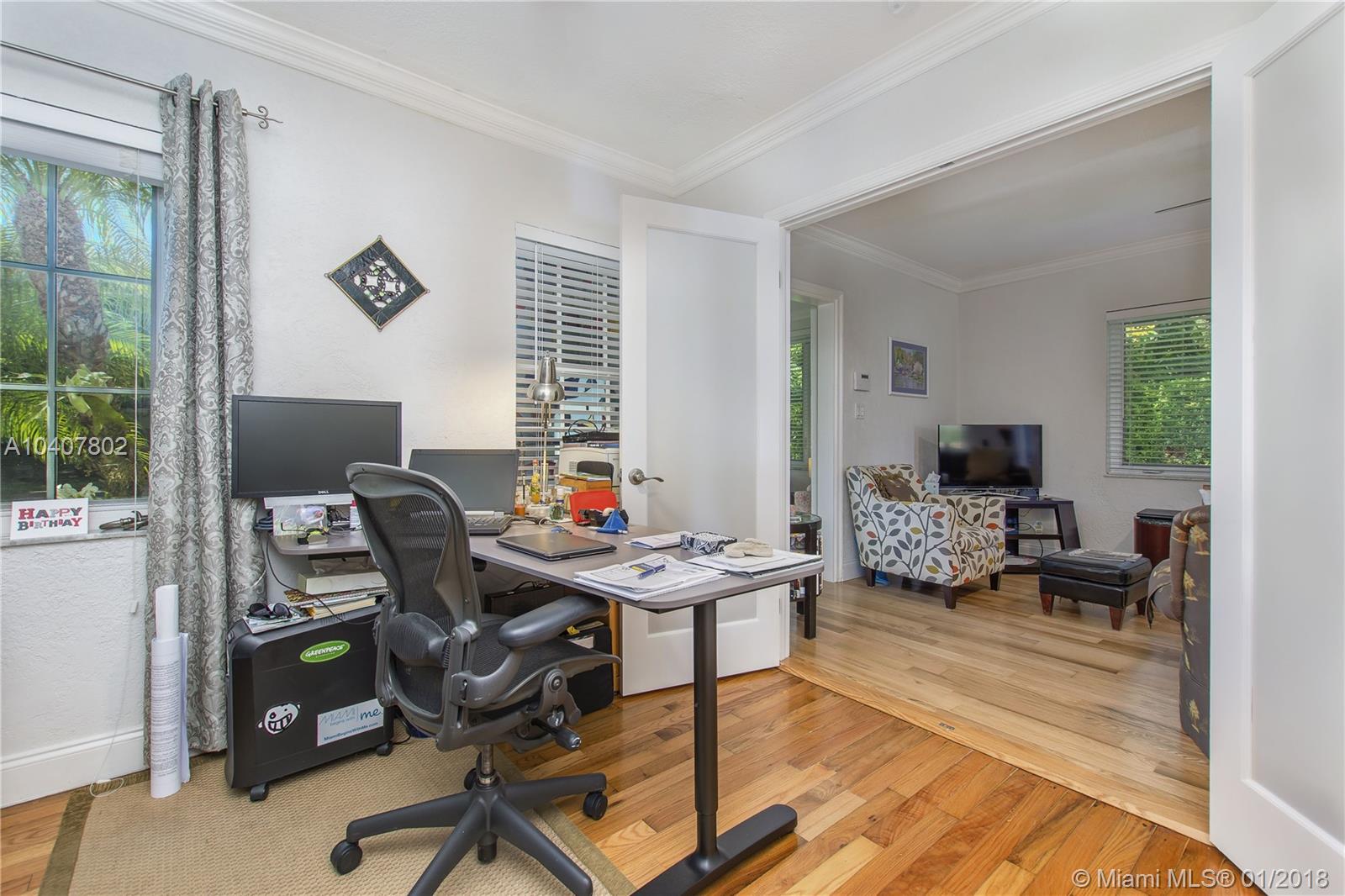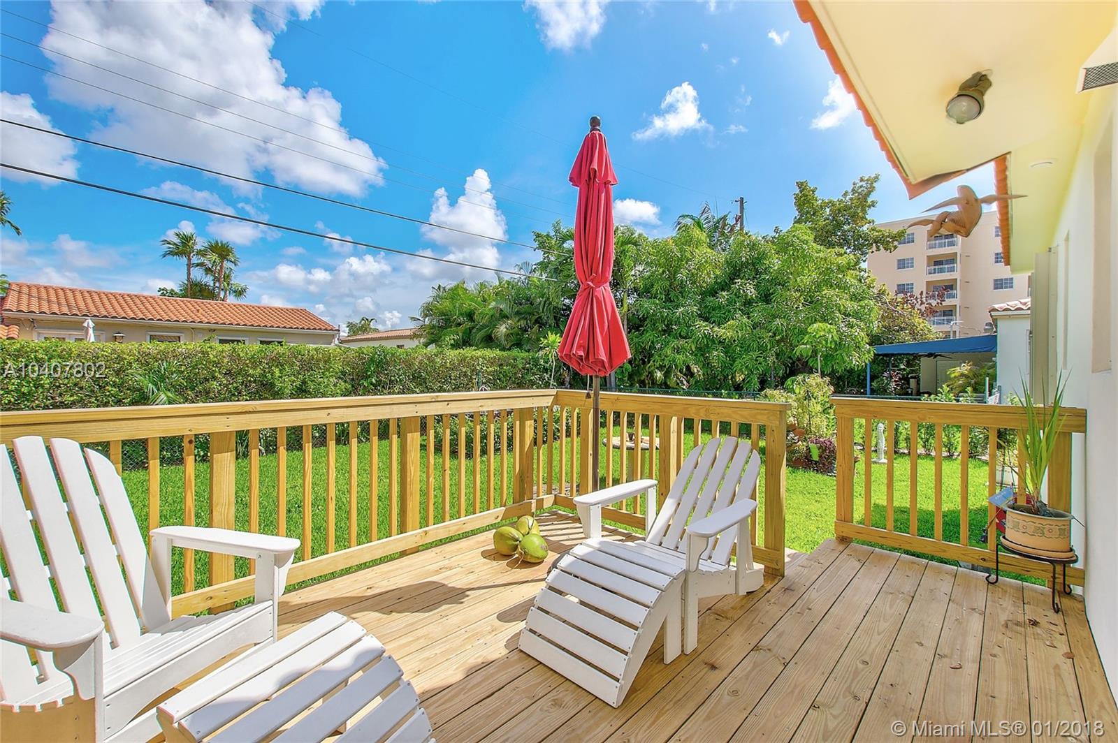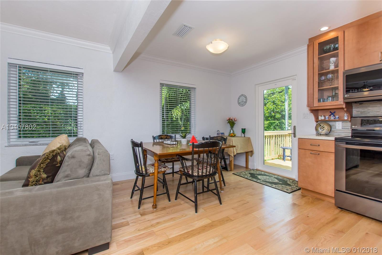 Charm, comfort, updates, and community await the savvy buyer for this three bedroom home set on landscape double lot nestled in a lovely neighborhood. Custom kitchen featuring geostone countertops and chic cabinets and lighting. Sun drenched foyer with maple floor. European style bathroom with porcelain tile shower and marble floor. New electrical 200 amp panel with underground connectivity from FPL. New HVAC unit sized for future home expansion. Oak hardwood floors through out BR, LR/DR. Additional 120 foot deck for entertaining. Impact windows and doors. Short walk to Coral Gables trolley and the Miami trolley stop is at the corner.