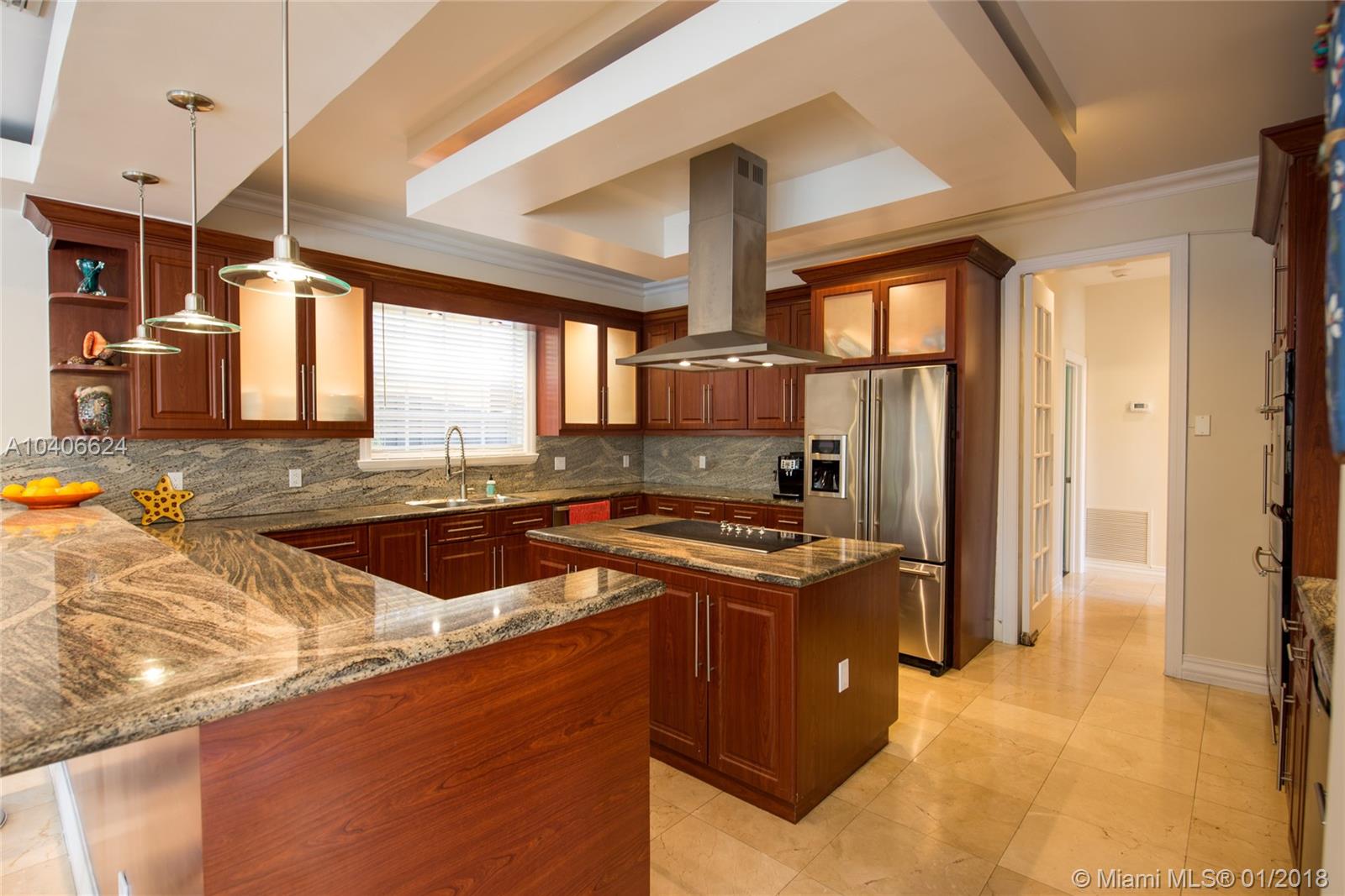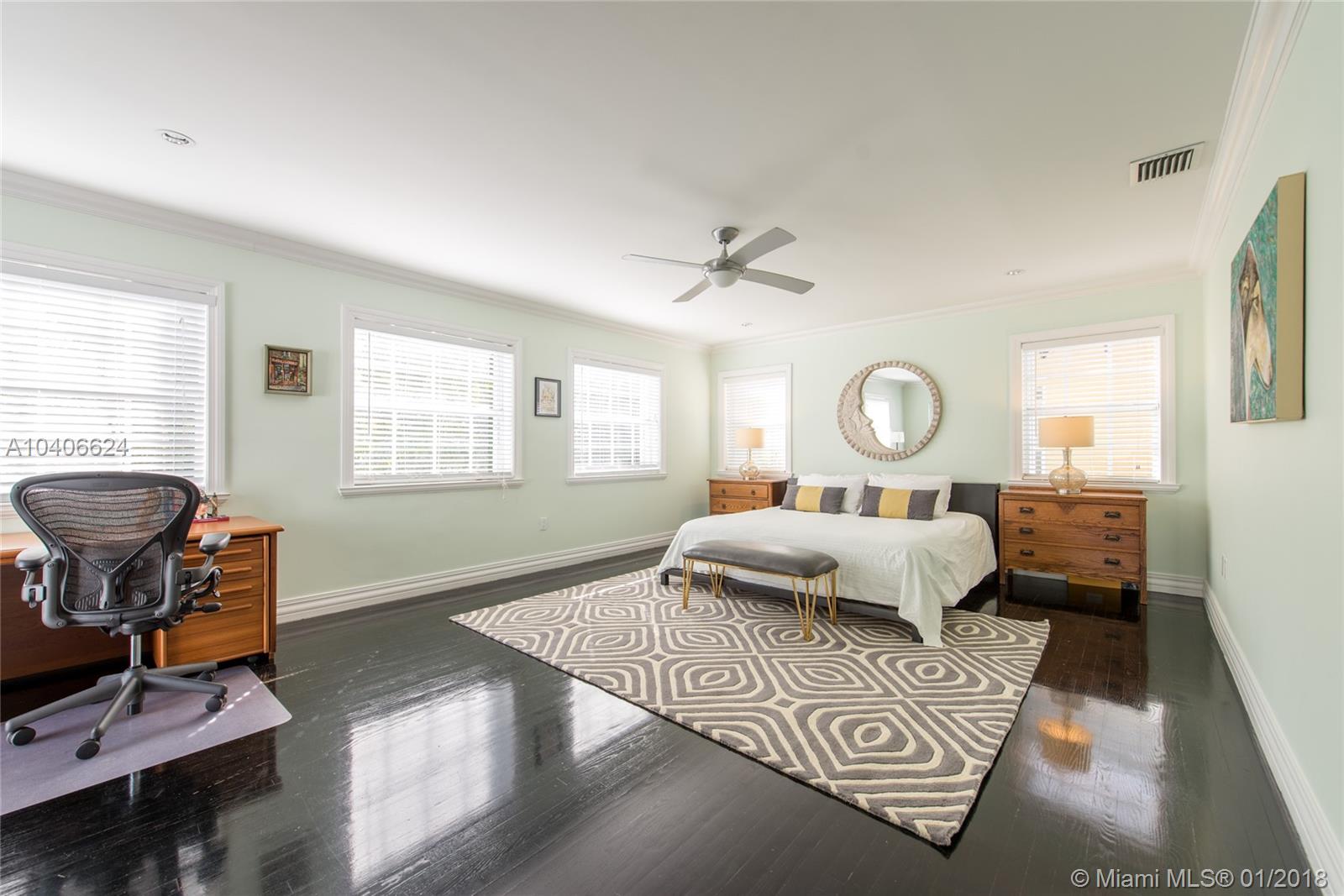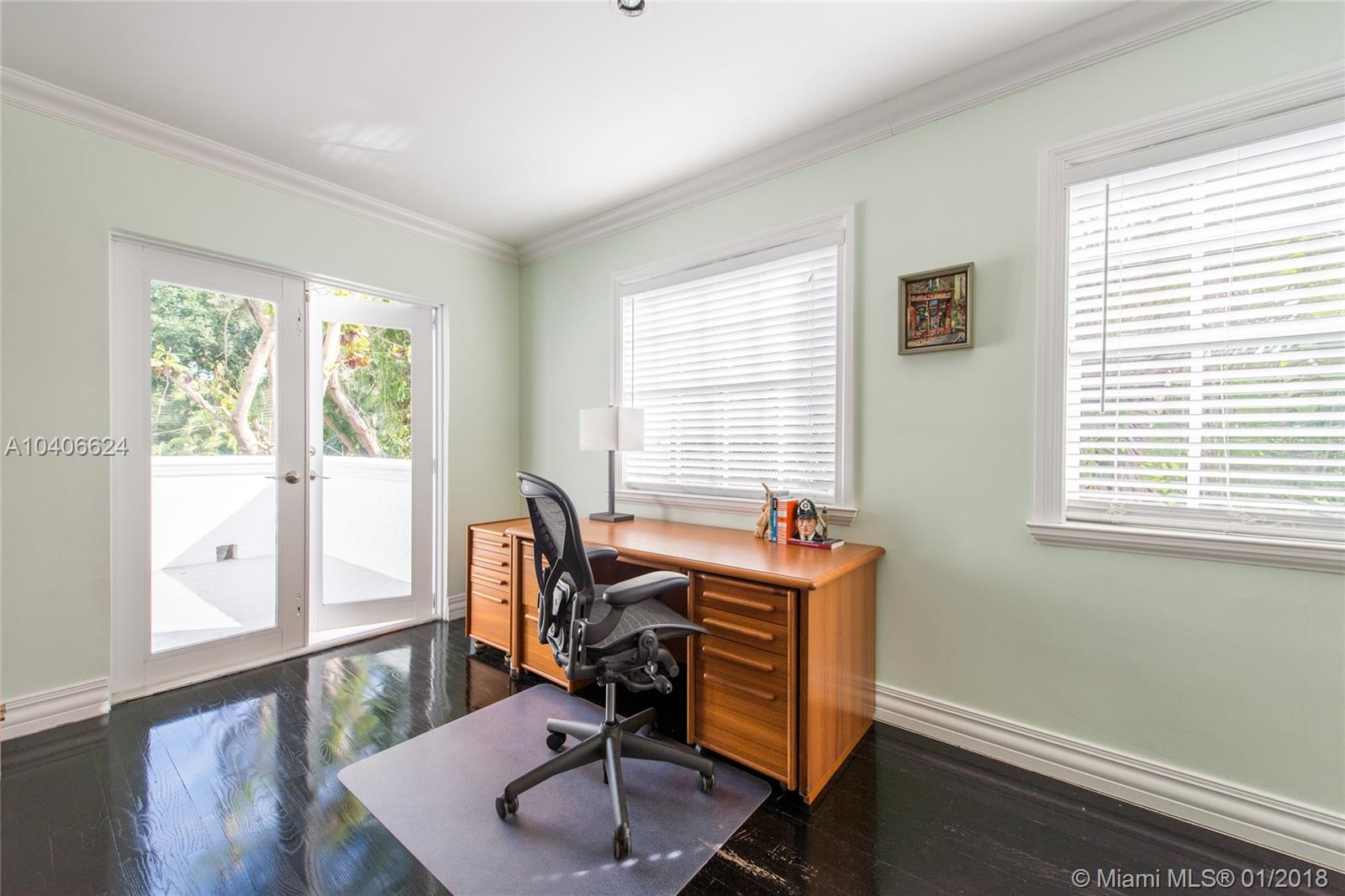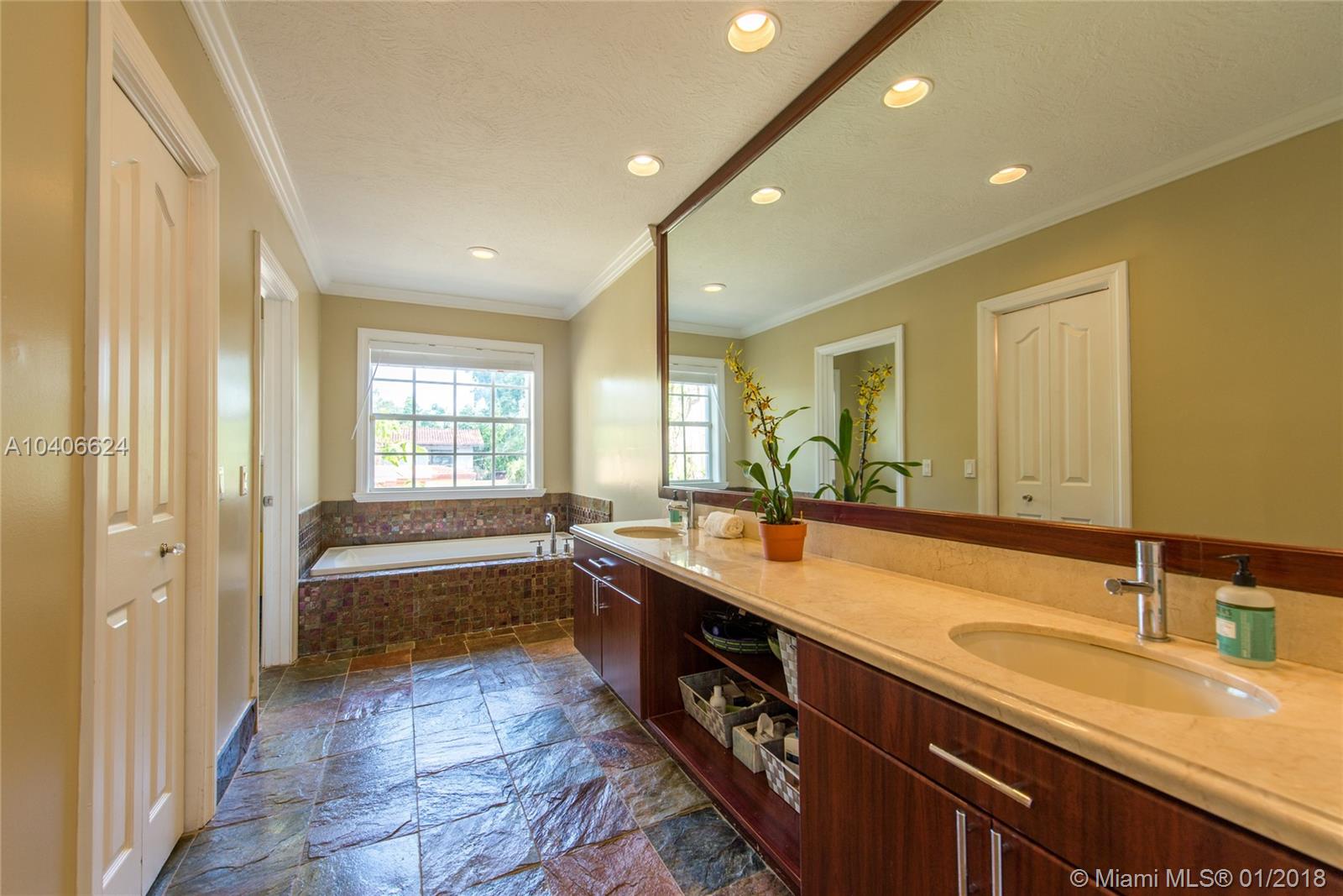 Lovely European-inspired home in lush South Coconut Grove. Dramatic double-height ceilings and clerestory windows create light-filled living spaces w/ a blend of classic and contemporary architectural features. Renovated in 2009. Expansive formal living & dining rooms overlook tranquil pool surrounded by travertine terrace. Elegant custom kitchen w/ wood cabinetry, granite countertops, top-of-the-line stainless appliances, center island & bar seating. Oversized master suite features separate sitting area, 2 walk-in closets, private terrace & luxurious master bath with spa tub. 3 bedrooms 2 baths + den/office upstairs and 1st floor guest suite. Close to the Grove village center’s galleries, boutiques, cafes and bayfront parks & marinas. Minutes to downtown, MIA, Key Biscayne & the Beaches.