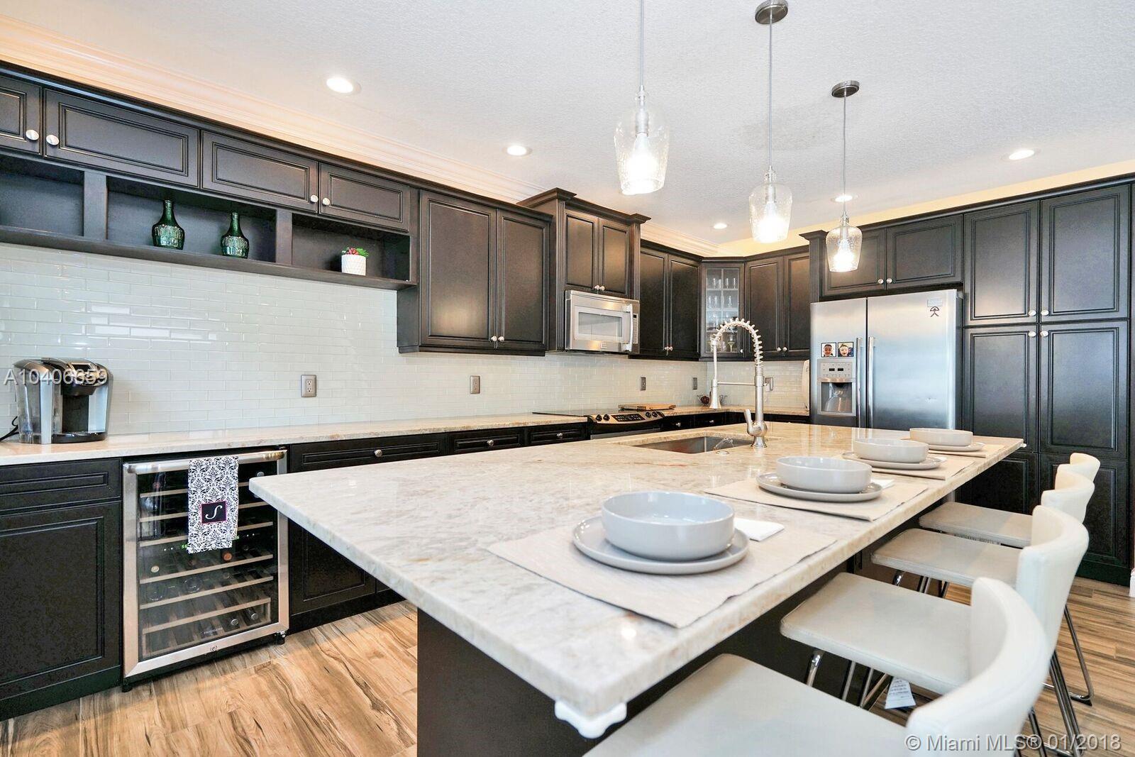 Gorgeous pool home in prestigious Riviera Isles.True pride of ownership with lots of quality upgrades.Large open eat-in kitchen with amazing custom made island Taj Mahal Quartzite countertop, dark chocolate air-brush finish Kitchen-craft cabinets and same countertops as the island in the entire kitchen.Professional Frigidaire Stainless Steel appliances including the wine cooler.Huge master bedroom with sitting area and balcony.All bathrooms are upgraded with Quartzsite countertops.The entire first floor is renovated with wood porcelain tiles the second floor is high-quality dark wood laminate.Quiet relaxing pool area covered by French pattern Travertine.Stylish outdoor kitchen with 5 burner grill, fridge, sink and granite top wet bar.This great house could be your HOME today.