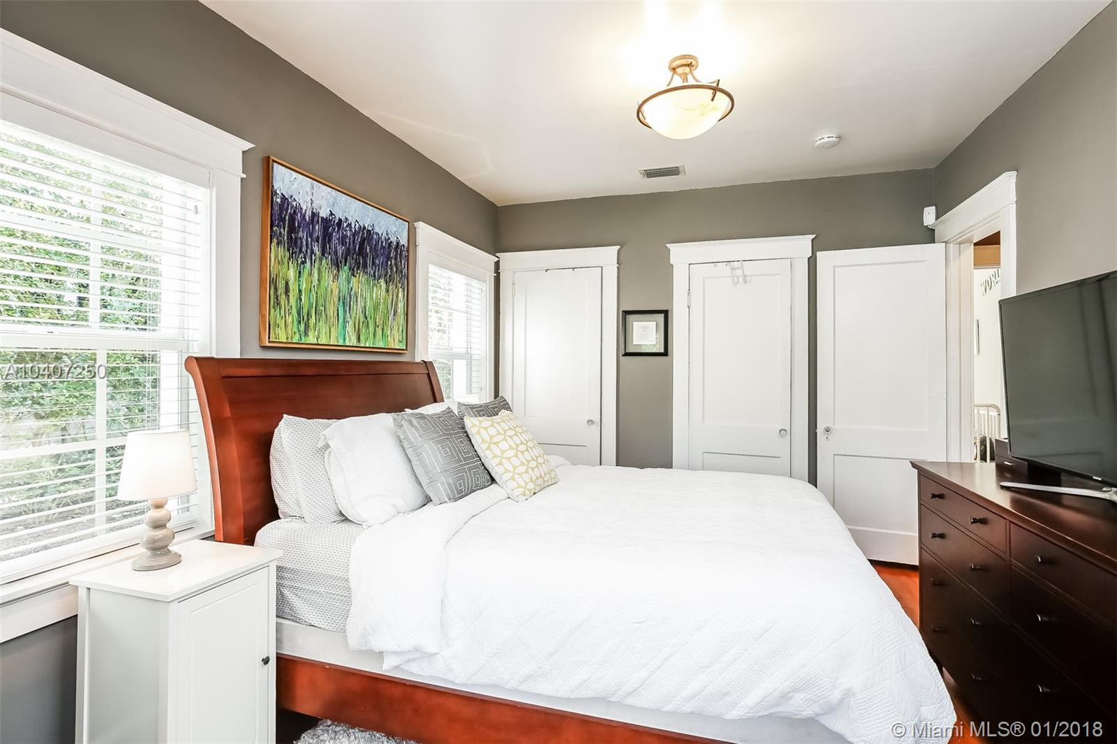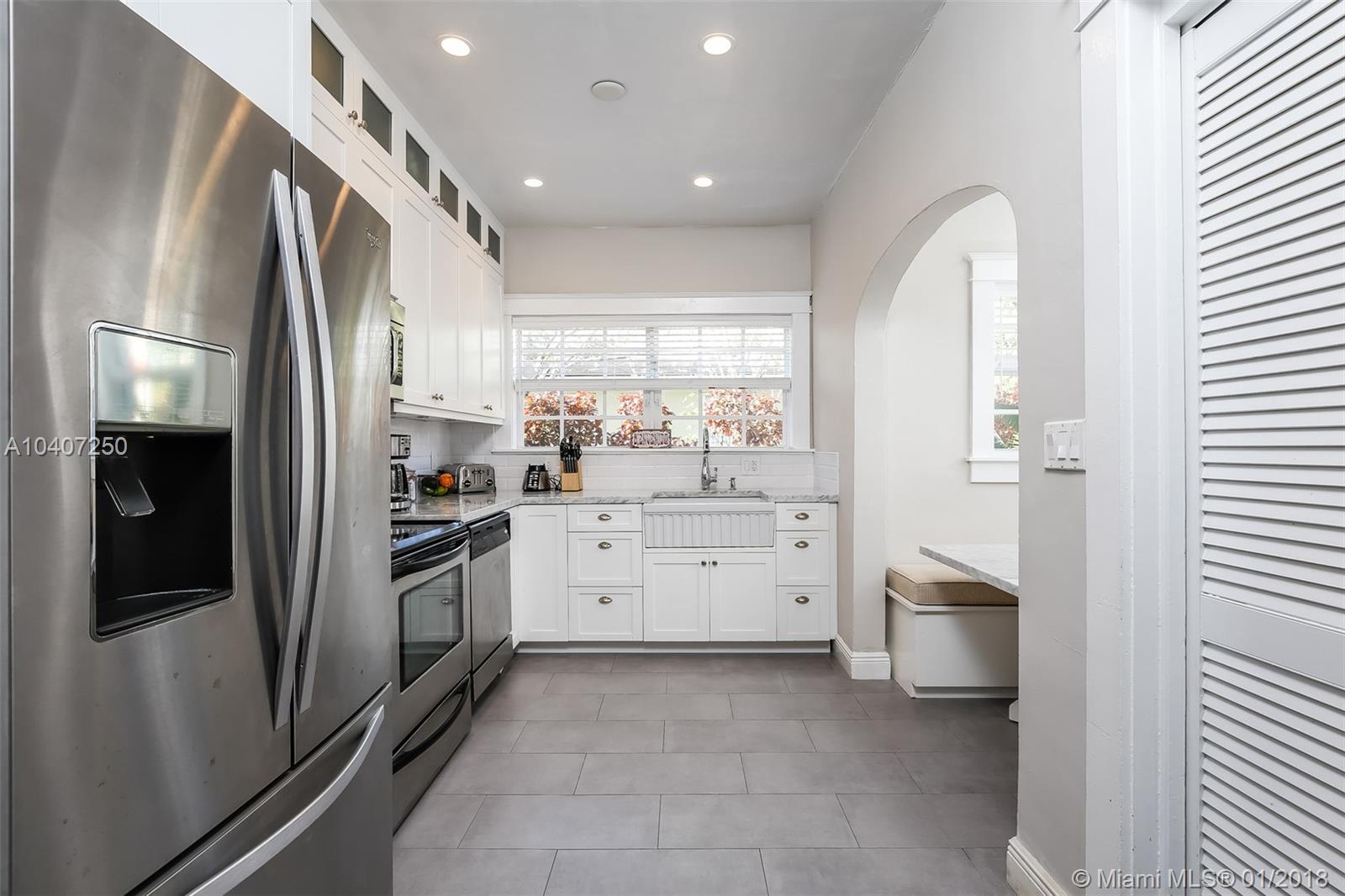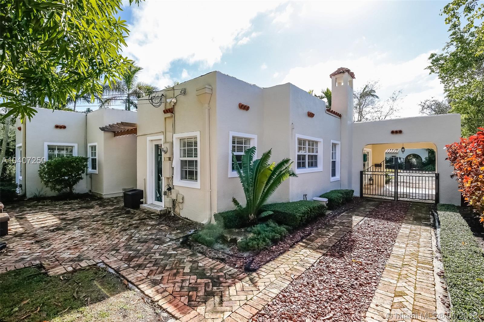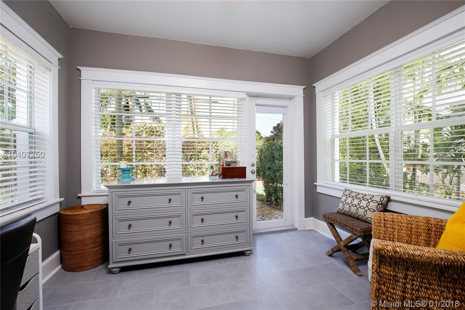 This bright and remodeled old-Spanish home features beautiful 1920s architectural details throughout with all the modern luxuries of today. Updates include reinforced impact windows and doors and a remodeled kitchen with a custom-built eat-in breakfast nook. Main house has 3 bedrooms/one bath, detached cottage/garage has an A/C wall unit with one bathroom. The home has great curb appeal with mature landscaping and lighting on a fenced 7,200 sq. ft. lot. There is plenty of room to expand, build a pool or possibly connect the main house to the back cottage. The neighborhood is very friendly and walkable with close proximity to restaurants & shops, as well as the Coral Gables Trolley making it an ideal starter or empty nester home.