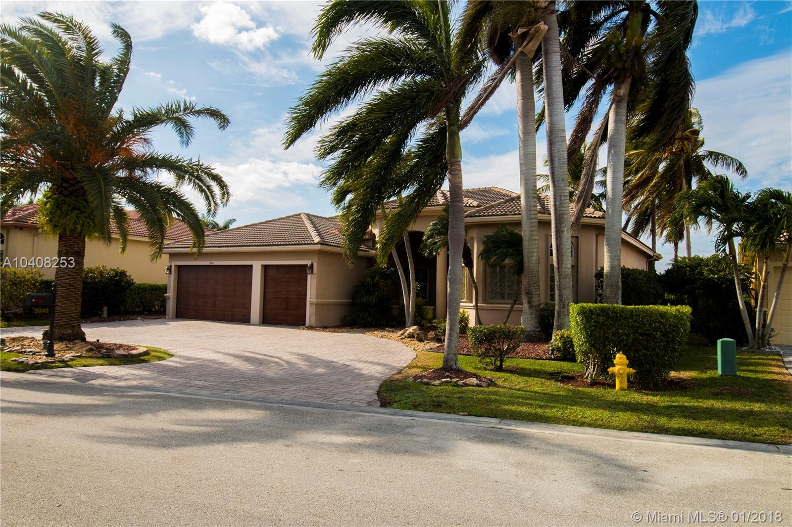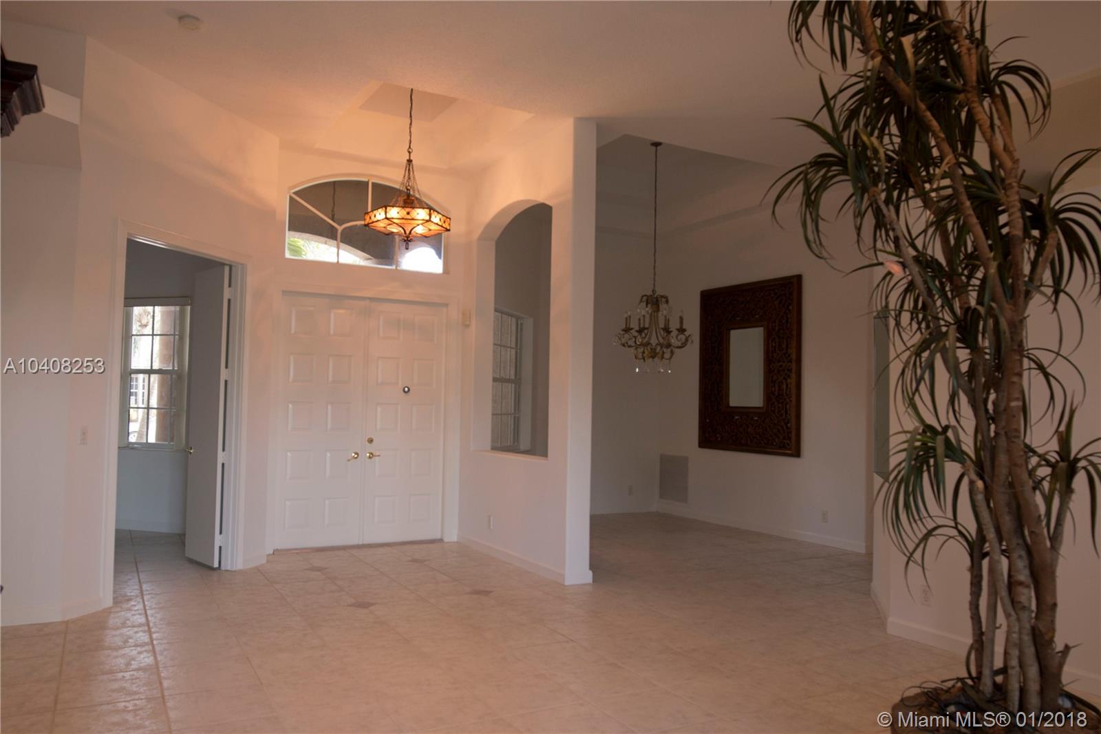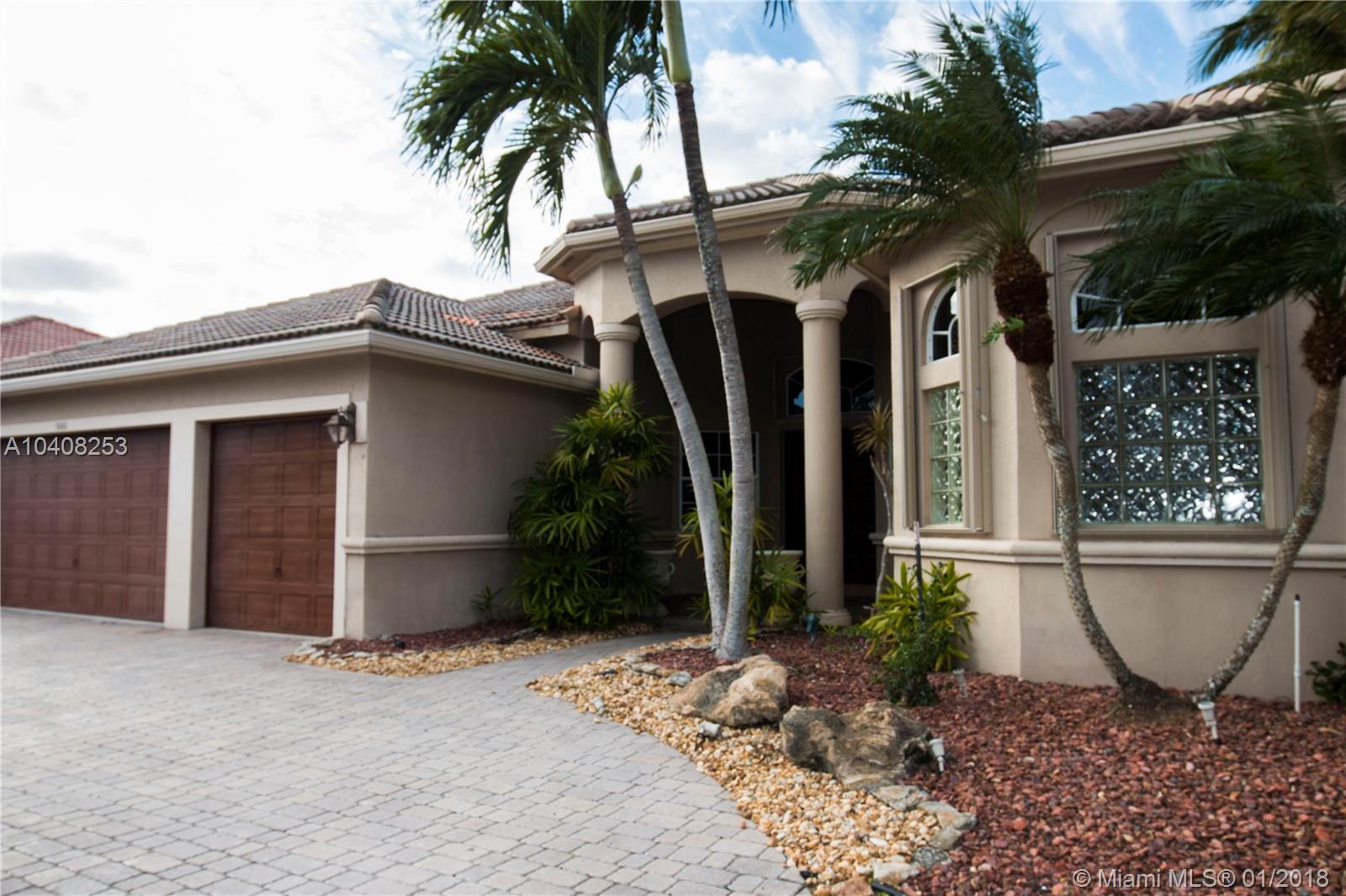 Grand Isles is one of the most prestigious gated community in Coral Springs. As you enter the house thru its double doors you can see the beautiful pool and lake, giving you a peaceful feeling. This magnificent house has 5 bedrooms, 3 full bath and one 1/2 bath, 2 suites, all rooms with walk in closet and hard wood floors. Split floor plan; nothing was spared here to make this house beautiful and ready for a new family. Inside was completely painted, bathrooms were recently renovated, they are modern and clean, granite counter top in kitchen with double oven, top of the line black appliances, eating in kitchen area is perfect situated on a corner with huge windows that allow you to see the pool and lake while enjoying a meal with the family. Master bedroom is very large, her and his WIC