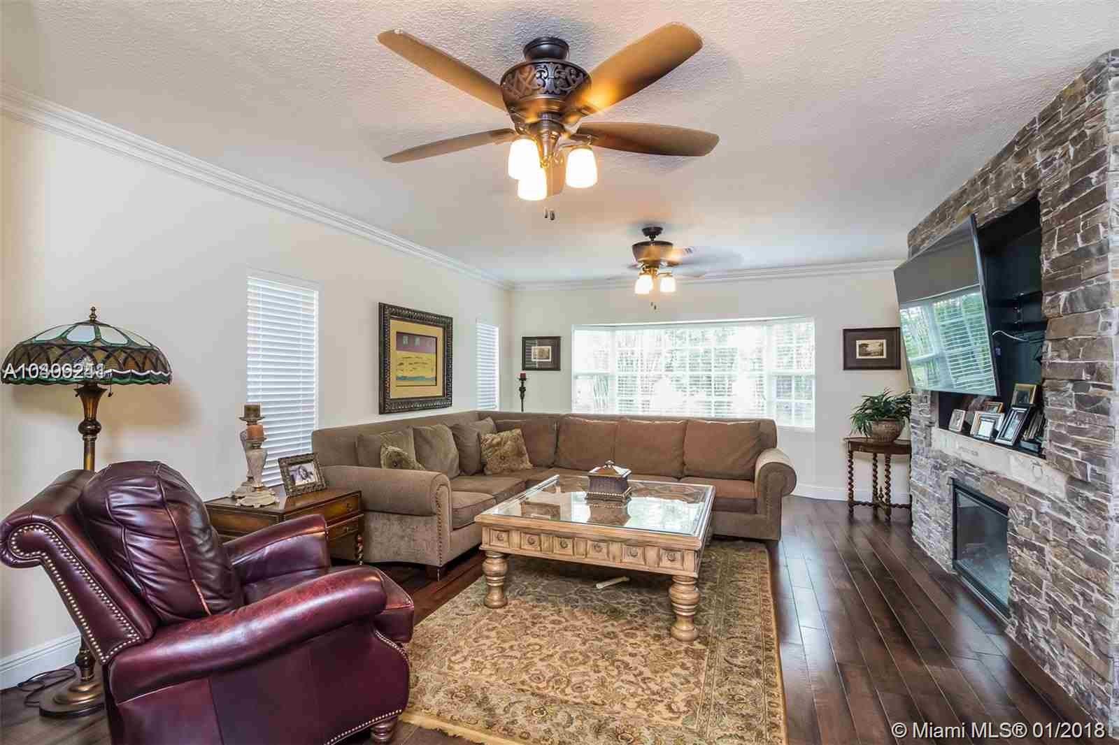 SW Ranches Renovated Ranch style Home situated in one of the most captivating areas of Rolling Oaks 5 Bedroom/4.5 bath completely renovated home, Large covered patio overlooking a brand new pool with beautiful stone deck. Country living at its best, with more than 2 acres of land, offering Extra Large Master bedroom on 1st floor with fireplace custom closets, 3 bedrooms upstairs, private in-law suite opposite end of home of MB. Kitchen boasts granite counter tops, wood cabinets and S.S. appliances; beautiful shining restored wood floors; Large family breakfast area, Formal Dining, Large Game Room, Large Family room with a beautiful foyer perfect for entertainment Hurricane Impact Windows Plenty of room for your horses, boat or RV's and extended parking area for your guests. No HOA.