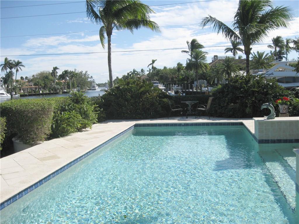 Renovated and updated waterfront home in the heart of Rio Vista. Large open kitchen, 4 bedrooms and 4 baths in split plan surround a huge great room that opens out to a covered porch, deck and pool all offering long water views towards the Intracoastal along the Rio Valencia waterway. Interior features include original Cuban and Mexican tile floors, a large fireplace, family room and eat-in kitchen. 92 feet of waterfront, with no fixed bridges, includes a 50' dock and a separate 25' floating dock.