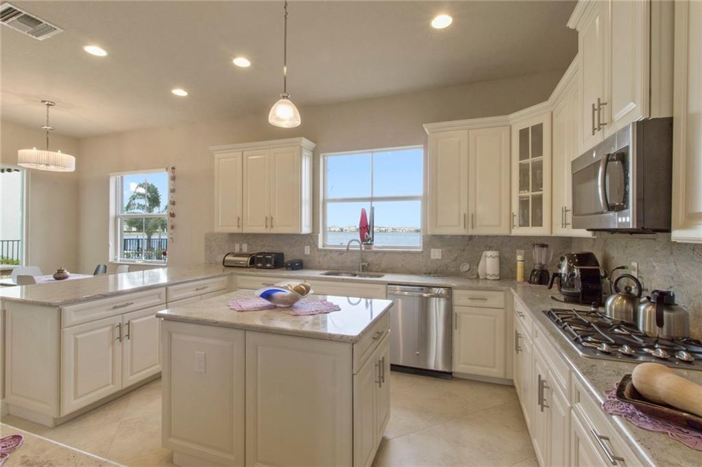 Newer Home in 24 Hour Guard gated Miralago. Move in Ready & Completely upgraded. This beautiful home features wide waterfront ($120000 Premium Lot), Gourmet Kitchen. Stainless Appliances & upgraded Cabinets & Floors. Hurricane Impact throughout, Tankless Water Heater & Gas Cooktop, Extended Patio pavers & Retractable Patio awning. Reasonable HOA fees include Lawn Care front & backyard, Gym, Heated Pool etc. The BEST Resort Style Club House in Town with top rated A+Schools. A Must see!