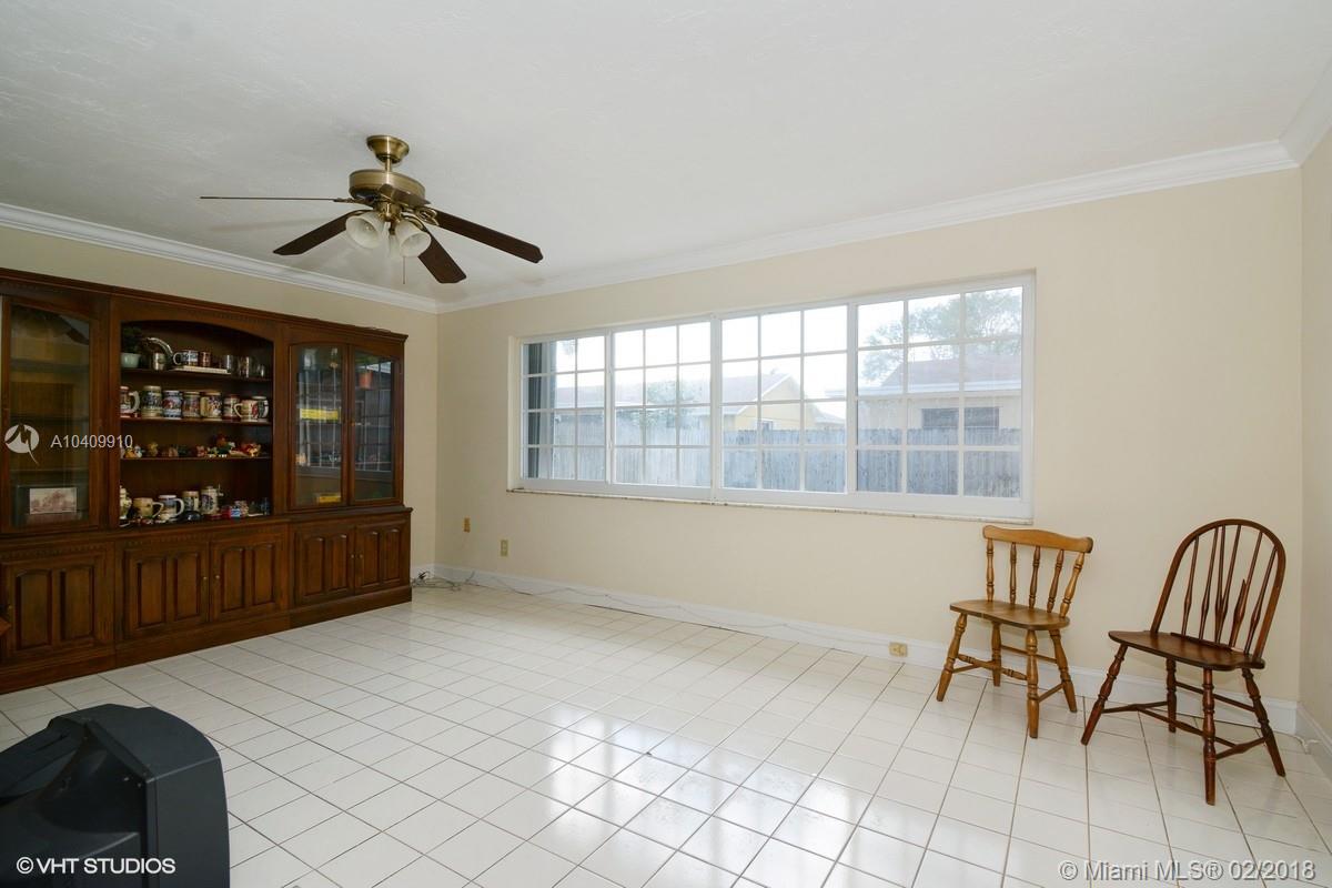 Sought after Cooper City neighborhood, Flamingo Gardens. Lovely one story home with 3 beds, 2 baths, 2 car garage, circular driveway. Tile roof. Accordion shutters for all windows. No carpet - tile and wood laminate floors. Crown molding. Extended patio in back, roofed and screened. Wood cabinets in kitchen. Bathrooms are original, waiting for your decorative touch. Sliding doors with access to patio from living room, family room and master bedroom. Pass thru window from kitchen. Walk in closet in master and front bedroom. Coat closet at entrance, linen closet in hall. Back yard is fenced. Sprinkler system for the yard. Rain gutters. Pull down stairs to attic. Central vacuum system (not sure if it works). See attachments.
