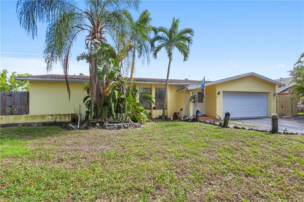 Location, Location! 4 bedroom, 2 bath, 2 car garage pool home located in quiet cul-de-sac. Beautiful hurricane proof double door stained glass entry, vaulted ceilings, spacious living room with separate family room, split bedroom plan, newer roof & kitchen appliances, tile and laminate flooring throughout (no carpet), impact windows in back of the home and hurricane shutters. Plenty of room for outdoor entertaining in this large screened in pool area. Pool is salt water with newer heater and separate outdoor jacuzzi. Fully fenced large yard with plenty of room for the kids to play. A+ Schools! No HOA.