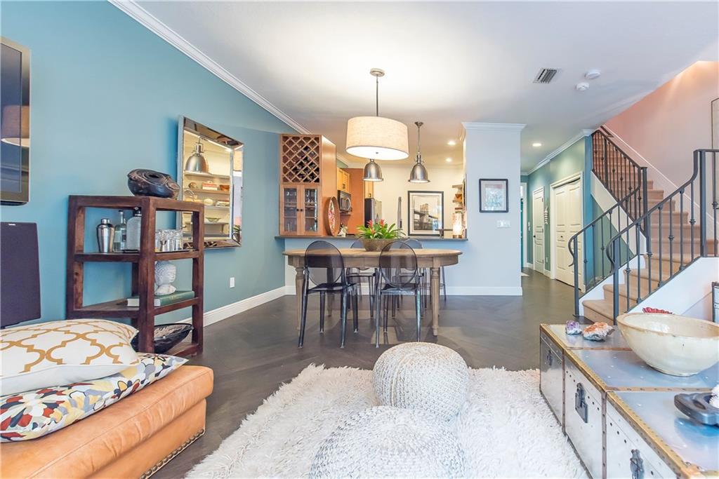 Intimate gated community steps from Las Olas Blvd 1 Garage & 1 Carport space plus community pool. Exquisite designer renovations featuring ceramic plank flooring laid in herringbone pattern; Carrera marble design in half-bath. Kitchen has hardwood; Caesar-stone surfaces and stainless appliances. Living area opens to spacious private patio perfect for entertaining. Custom stair rail leads to spacious master suite w/ balcony plus 2 guest BR's & bath ondo Assoc. Maintenance pays insurance and most utilities.