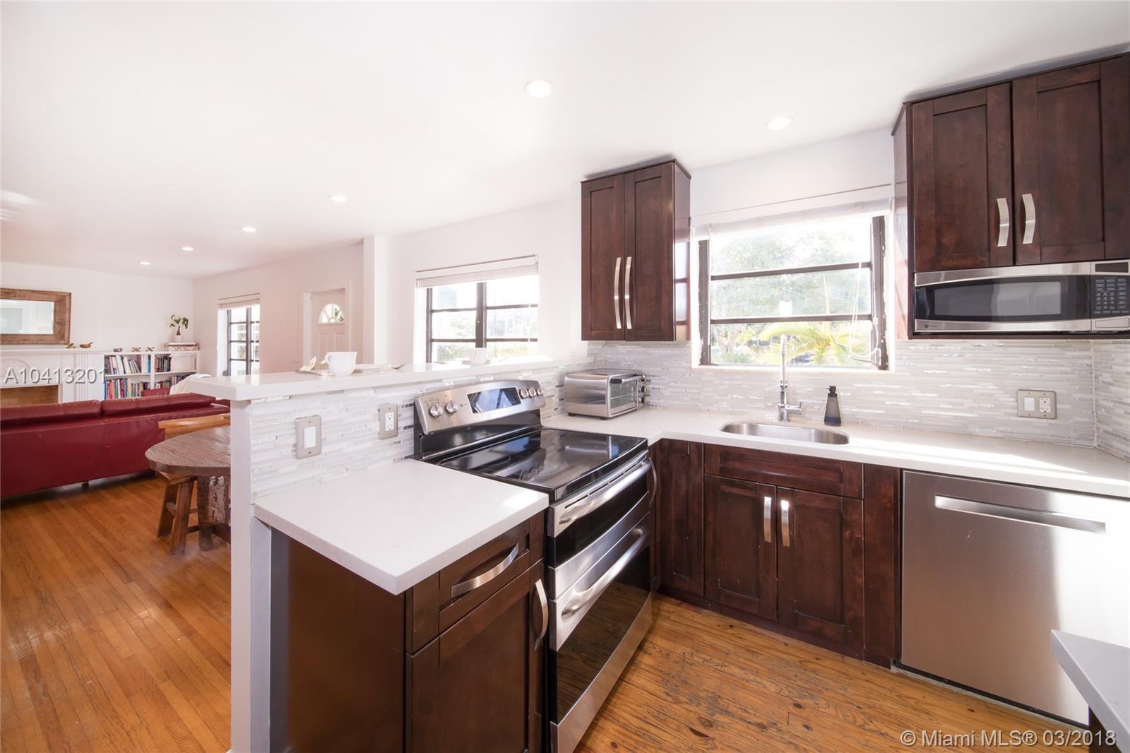 CENTRAL SHORES EARLY MID-CENTURY JEWEL - Enjoy vintage early mid-century charm with fresh modern updates. Tucked away on the quiet side of N Miami Ave just minutes to downtown Miami Shores, the location is both convenient and close to everything. Smartly-updated interior living with an open and airy feel, yet still brimming with period character. Escape to the outdoors with massive backyard and multiple outdoor patios. Inside, you'll find a modern kitchen, designer bathrooms, and fully renovated master suite with vaulted beam ceilings. Other bonuses include recessed lighting throughout, original hardwood floors, charming fireplace, custom closets, marvelous built-ins, and a sunny quarry tile Florida room. This home offers a great deal at an attractive price in the heart of Miami Shores.