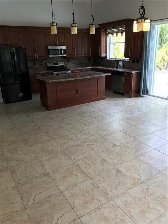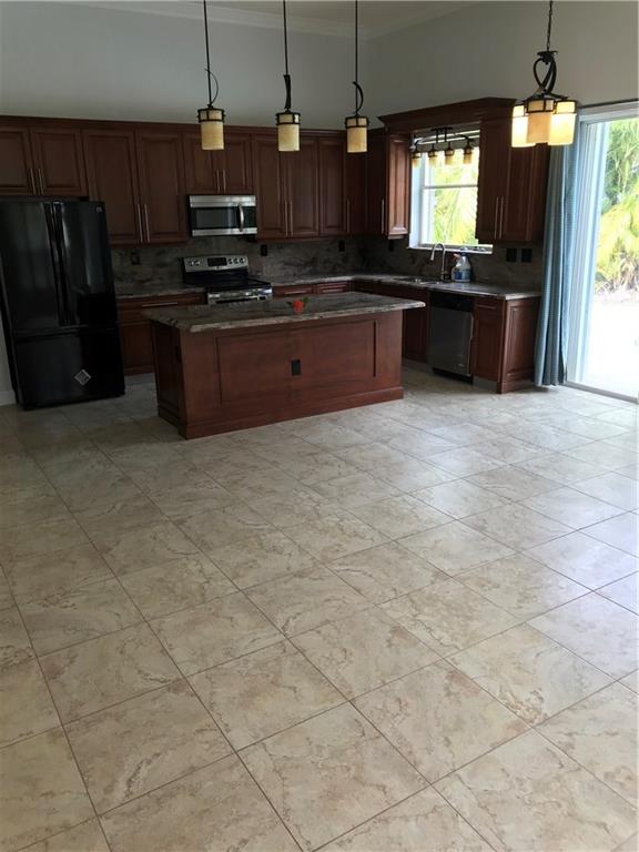 4 Br + Office-formal dining- form liv- back yard is a tropical paradise with mature trees .fully tiled-.80 gal Hwh-house just painted inside-roof has been replaced-brand new Kitchen with Granite- Hurricane accordion shutters-shed-New a/c-crown moldings-gutters- cul de sac- dining room chandelier does not convey. A+Schools/ owner will install a brand new garage door by Broten prior to closing.