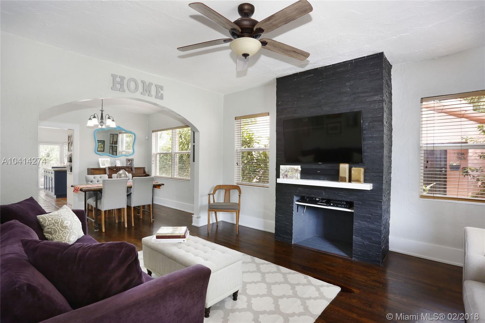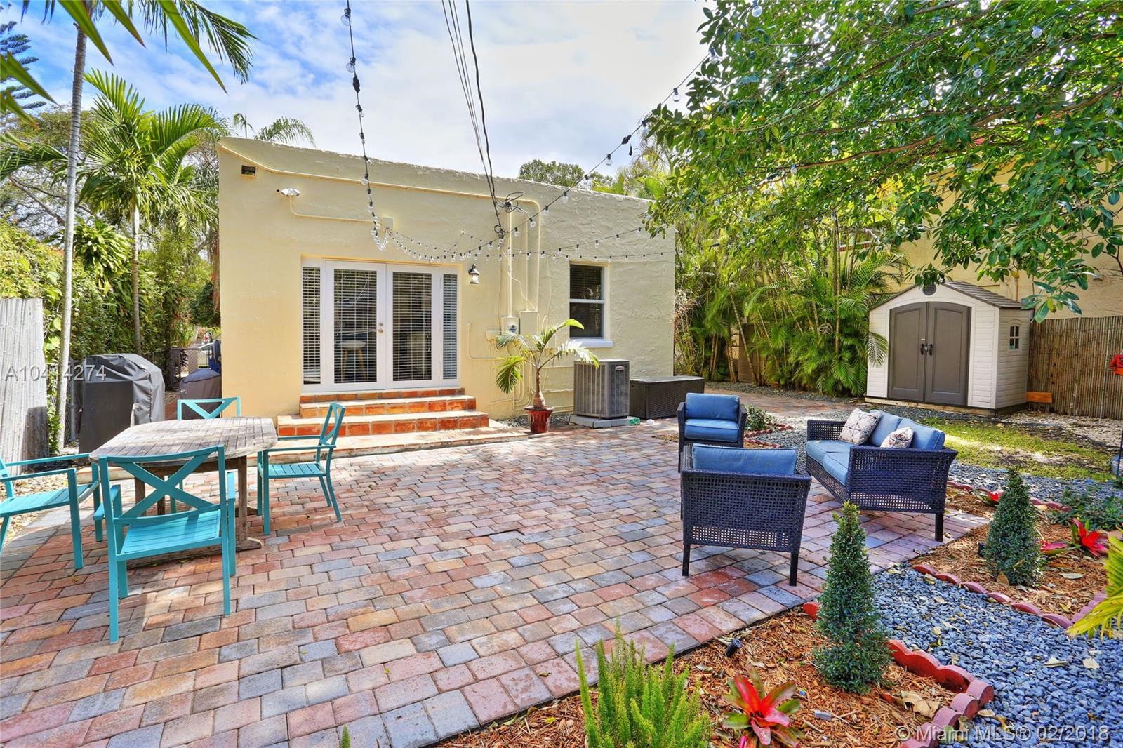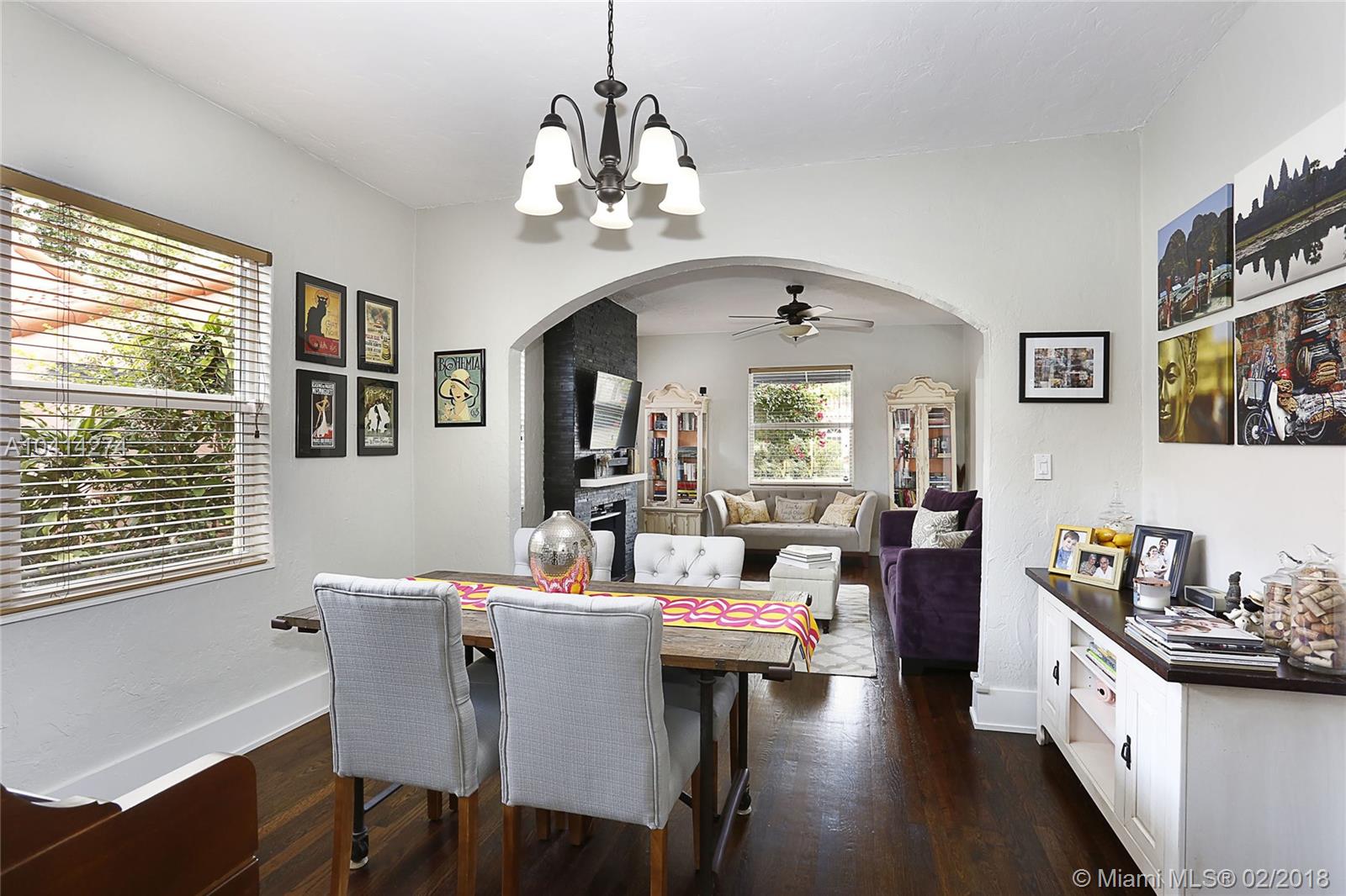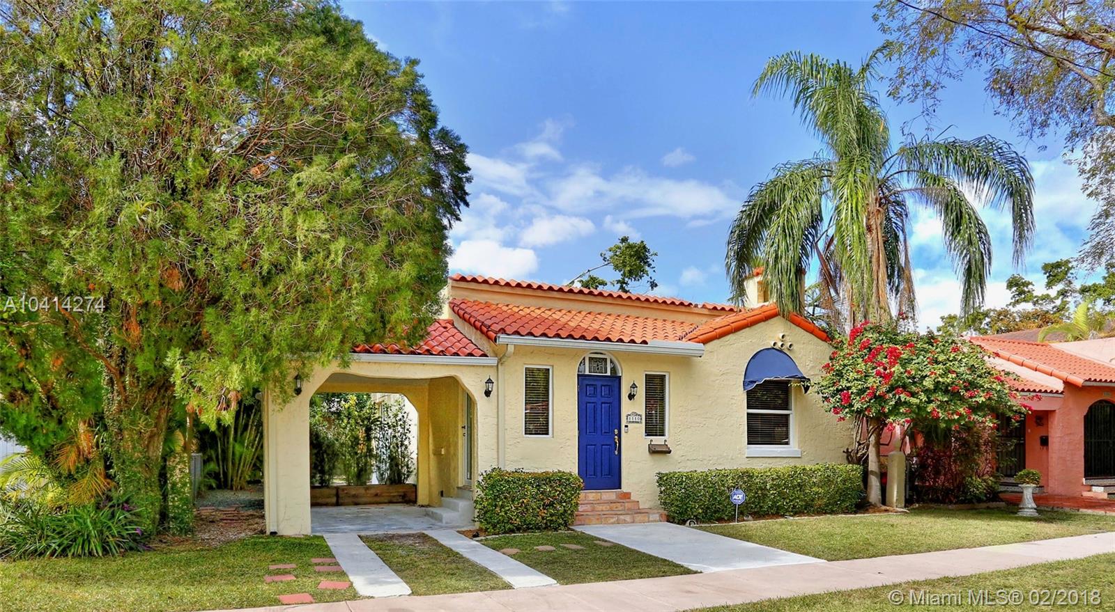 Dreamy Coral Gables Old Spanish renovation. Impact windows and doors, Fabulous updated kitchen and baths, private fenced back yard with spacious patio and mature landscaping. Beautiful wood floors, dining room, stunning kitchen w/large island, bar seating, lovely cabinets, granite counters, french doors over looking patio. Half bath in master bedroom, large foyer entrance, attached carport. Thoughtful renovations throughout this bright home enhance the charms and beauty of the Old Spanish architecture while bringing the convenience of our digital age: smart Ecobee thermostat, EcoSmart tankless hot water heater, Ring doorbell (camera). Both electrical and plumbing updated. Washer/dryer inside. Tax records indicate more SF under air than actual. Living area believed to be approx 1186 SF.