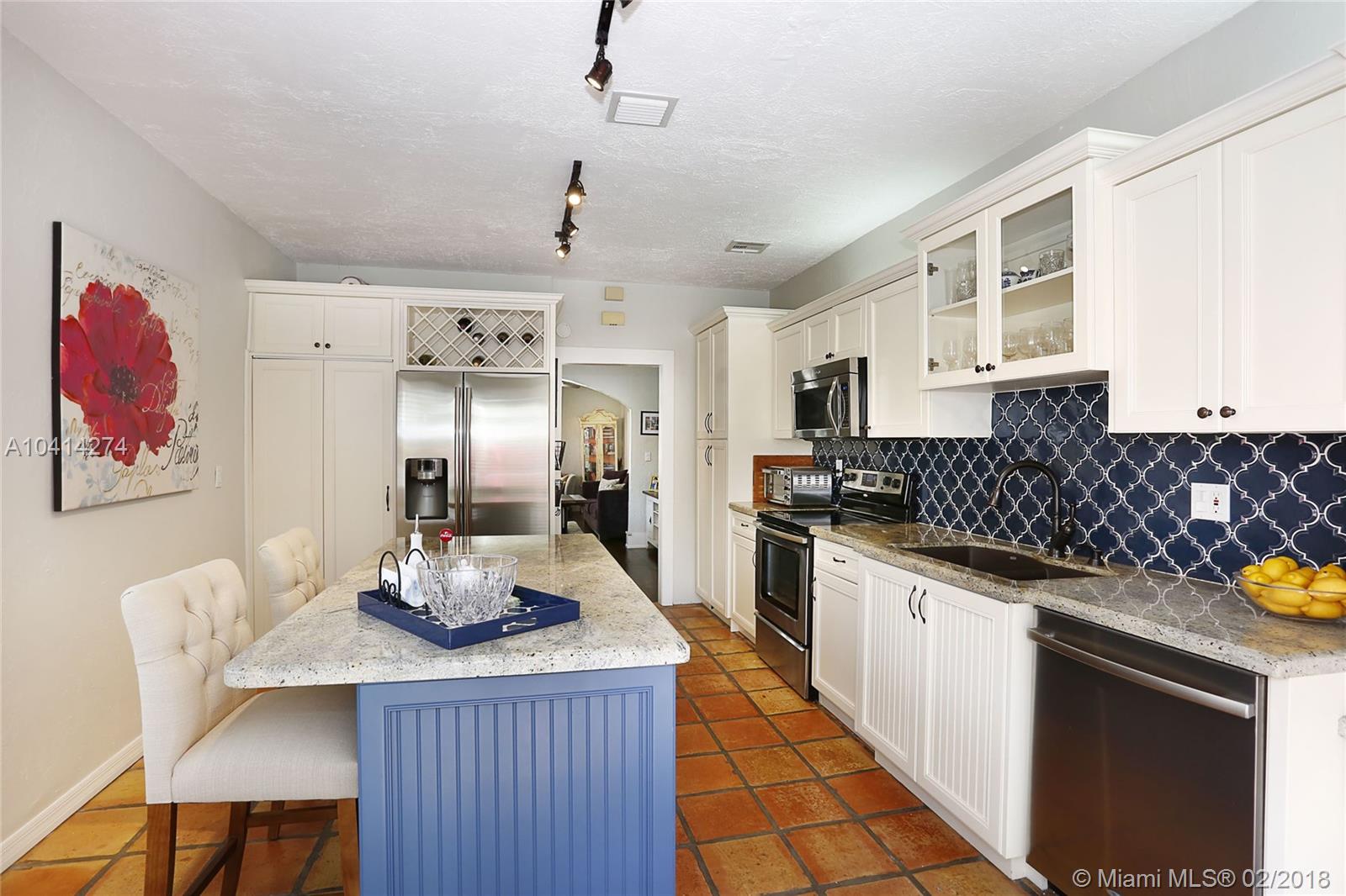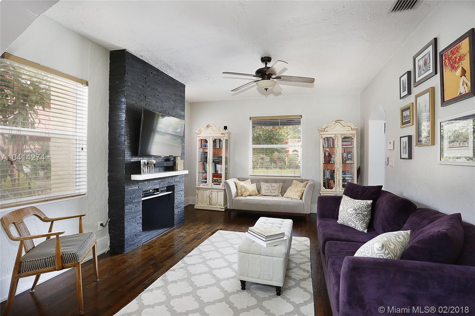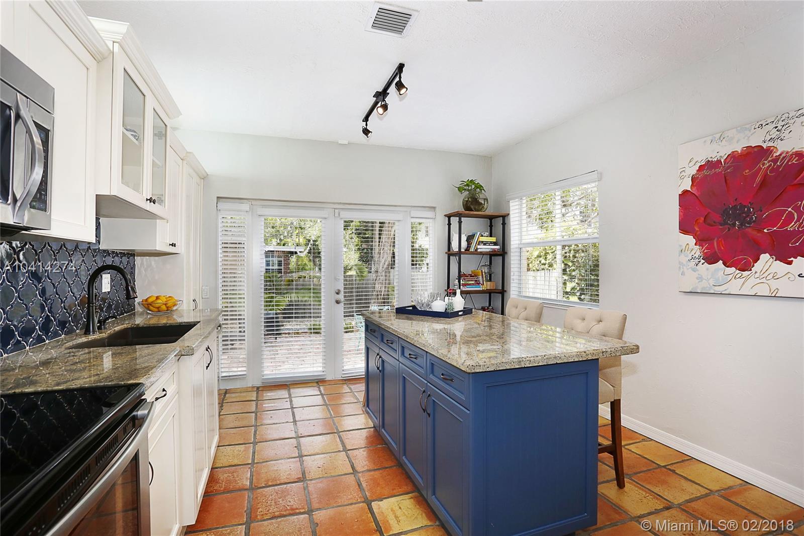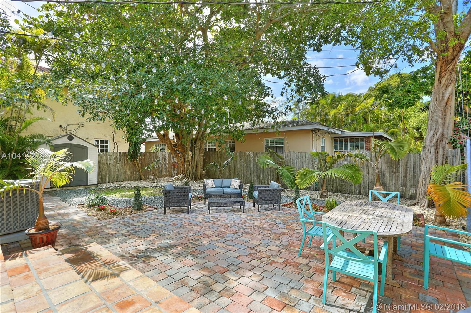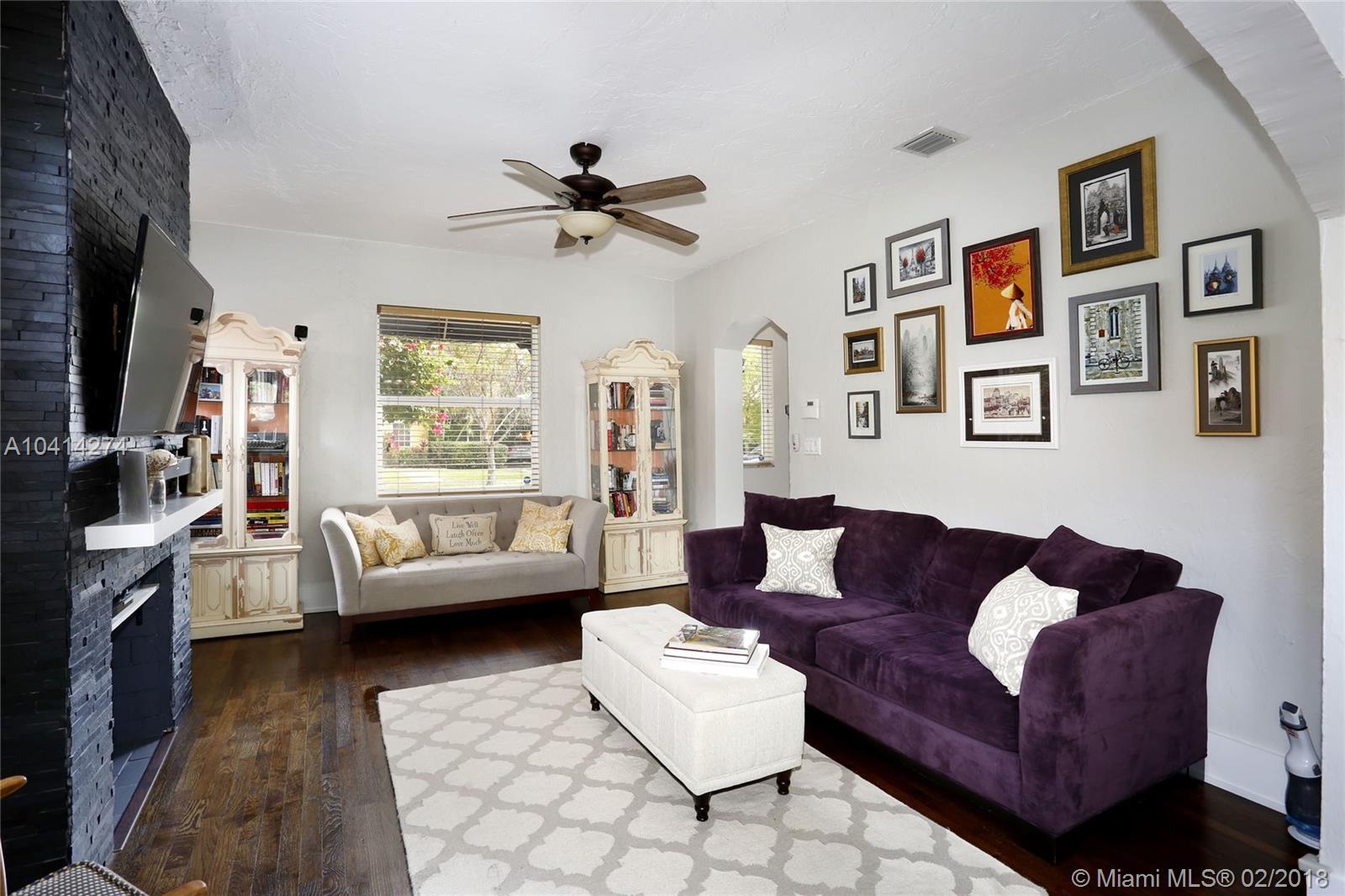 Dreamy Coral Gables Old Spanish renovation. Impact windows and doors, Fabulous updated kitchen and baths, private fenced back yard with spacious patio and mature landscaping. Beautiful wood floors, dining room, stunning kitchen w/large island, bar seating, lovely cabinets, granite counters, french doors over looking patio. Half bath in master bedroom, large foyer entrance, attached carport. Thoughtful renovations throughout this bright home enhance the charms and beauty of the Old Spanish architecture while bringing the convenience of our digital age: smart Ecobee thermostat, EcoSmart tankless hot water heater, Ring doorbell (camera). Both electrical and plumbing updated. Washer/dryer inside. Tax records indicate more SF under air than actual. Living area believed to be approx 1186 SF.